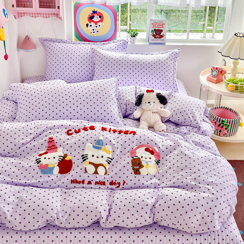 (总)梦可莱家居 2026新款云朵泡芙棉床盖四件套,爱情花,蝴蝶结,佳音,槐花落,花絮猫咪,蝴蝶梦,彩绘玫瑰,爱心卡,猫世界,米波点,木马,幸福兔园,樱桃红,紫玫瑰,紫色天空,紫薇花季
