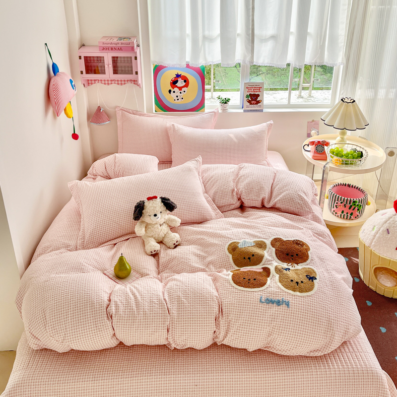 梦可莱家居 2026春夏新品小清新可爱风毛巾绣床盖四件套系列 熊彼特