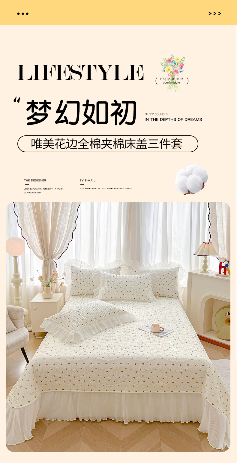 当前位置: 91家纺网 > 商品网购 > 床品套件 > 三件套 > 宜凡家纺 2026新款全棉印花雪纺夹棉床盖三件套 绘梦