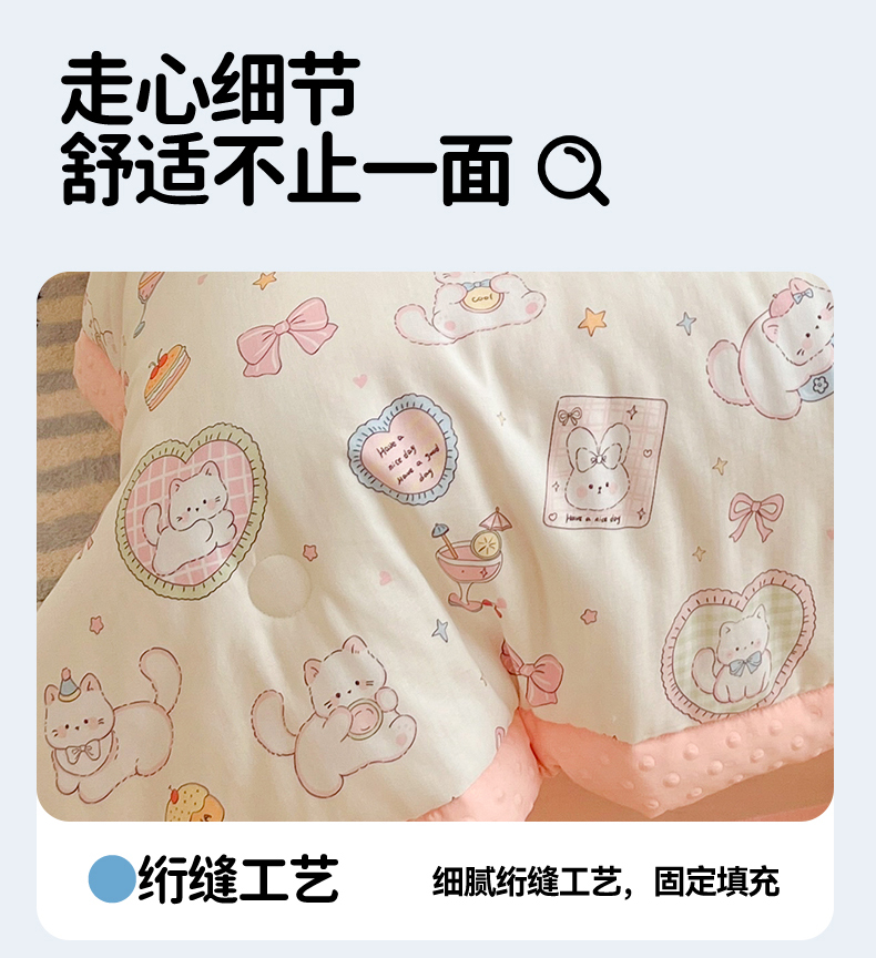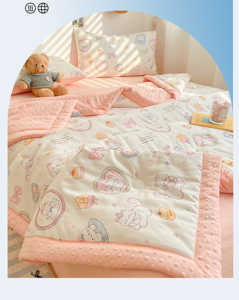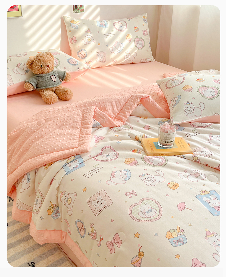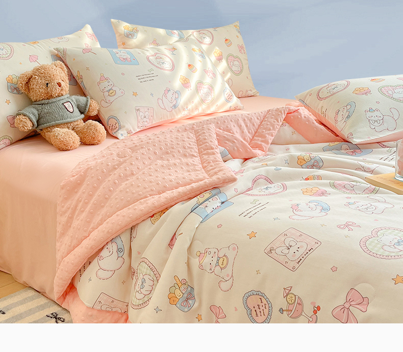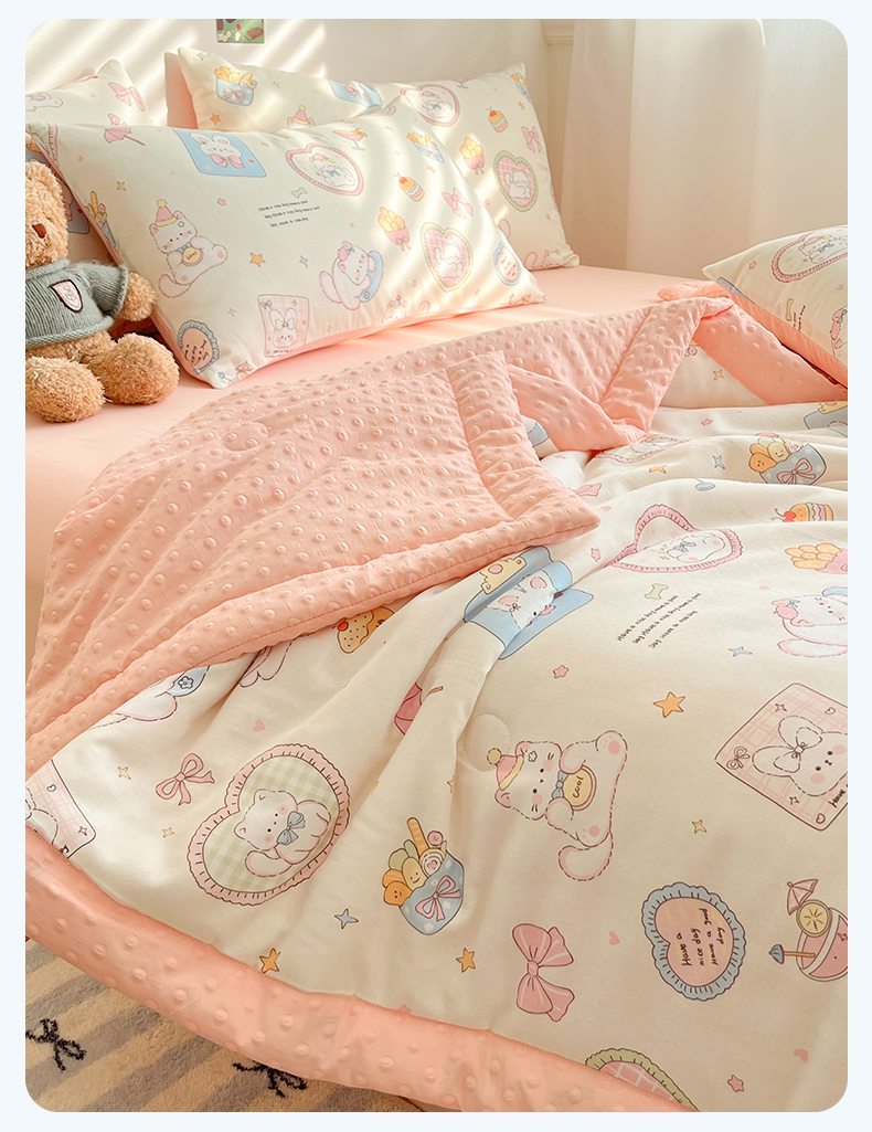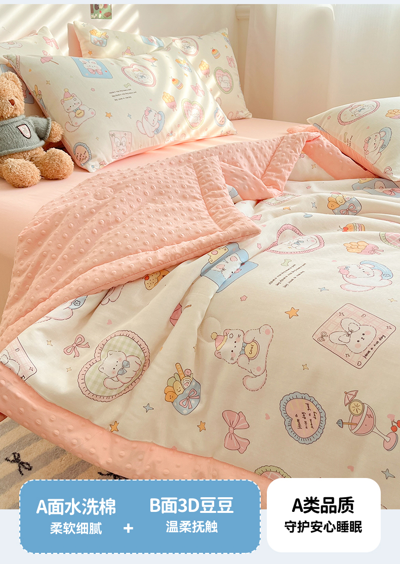 盛秋家纺 2026新款A类水洗棉豆豆夏被系列 甜茶日记+奶油粉,甜茶日记+奶油粉