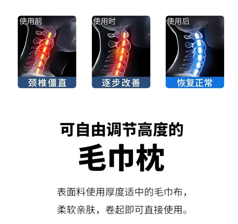 商品名称:梵希良品家纺 2026新款毛巾枕头枕芯护颈椎助睡眠反弓便携折叠高低度可调节牵引圆柱睡觉专用 浅咖-PE软管款