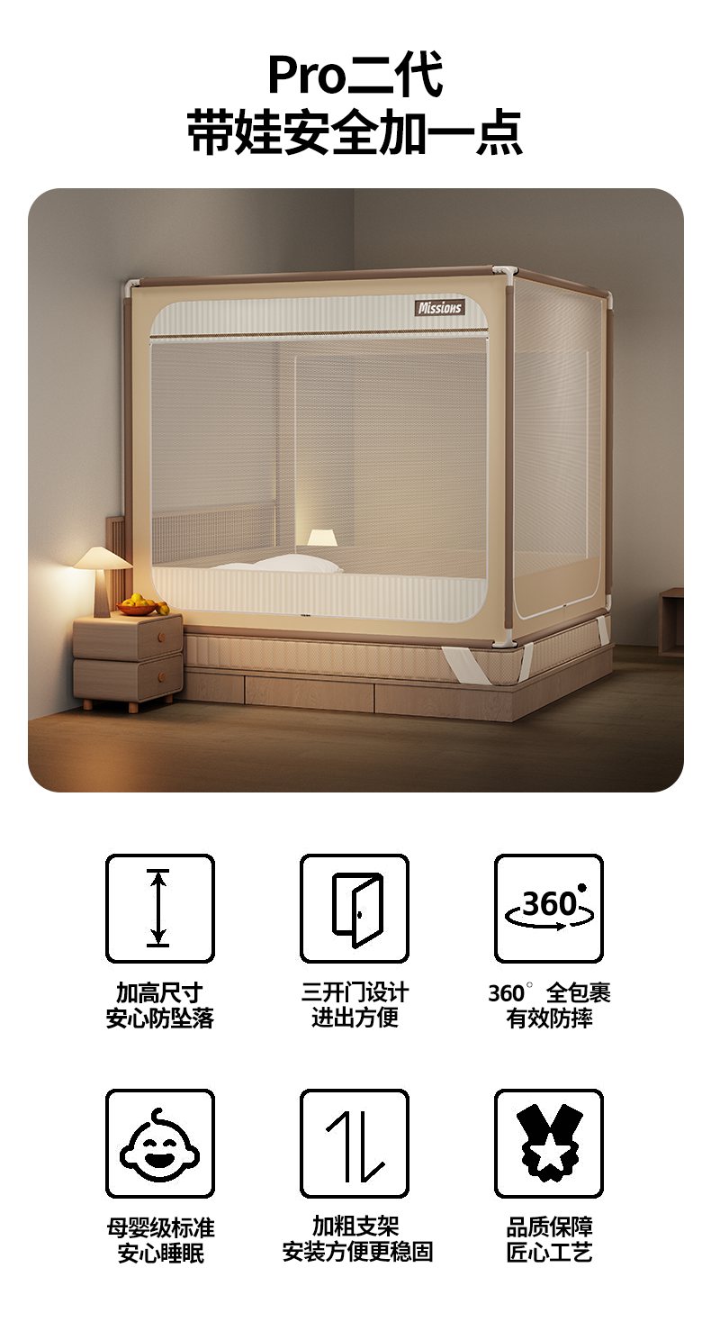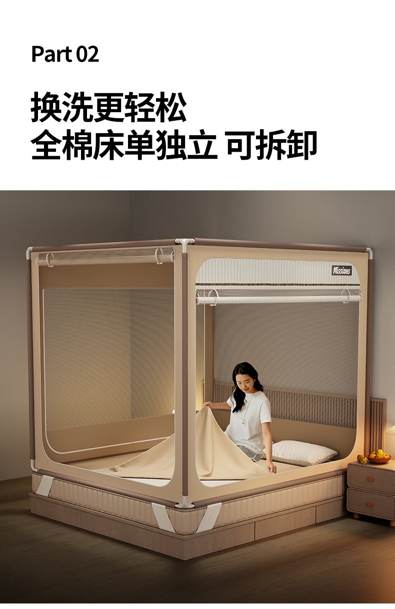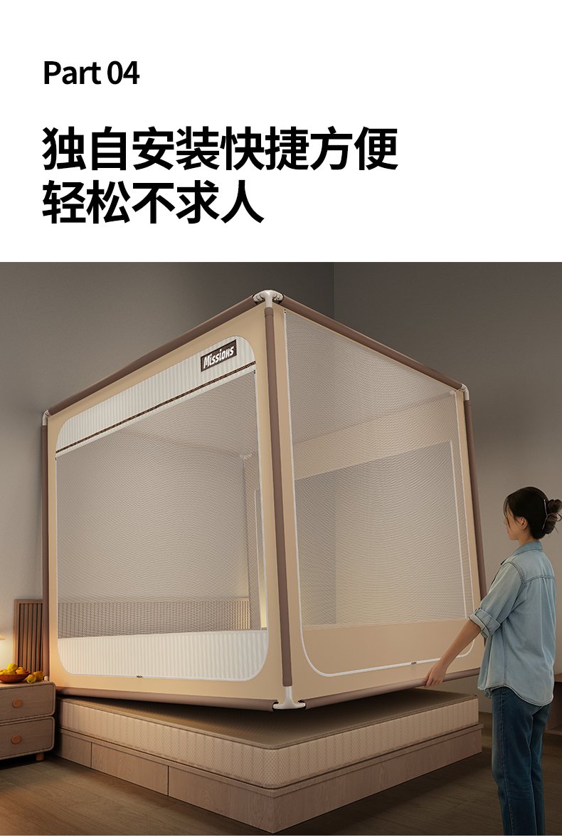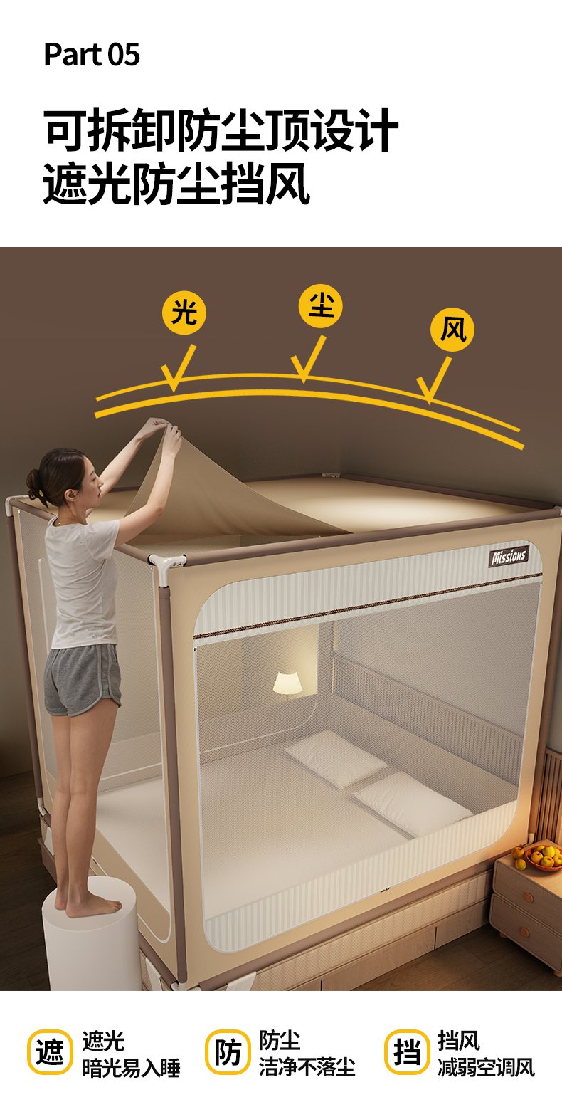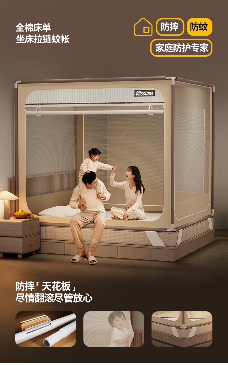 当前位置: 91家纺网 > 商品网购 > 床上用品 > 蚊帐 > 坐床式蚊帐 > 星际优品 2026新款坐床蚊帐可拆卸全棉底加厚双股双丝防猫抓帐纱-格调款 格调-暖黄