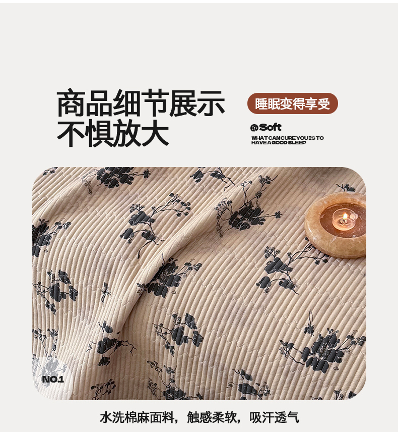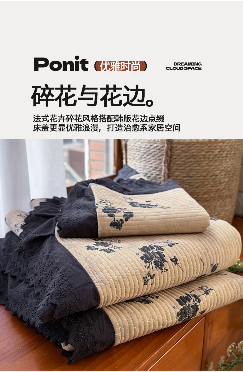 商品名称:桃子家居 2026新款韩版纯棉花边法式花卉碎花水洗原生态纯棉棉麻多功能床盖三件套 棉麻床盖-拾穗咖