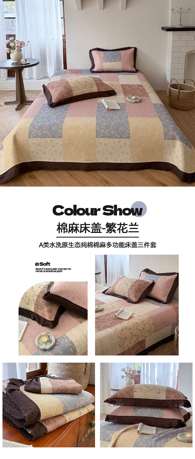 (总)桃子家居 2026新款韩版纯棉花边法式花卉碎花水洗原生态纯棉棉麻多功能床盖三件套,棉麻床盖-繁花兰,棉麻床盖-花颜兰,棉麻床盖-兰亭序蓝,棉麻床盖-摩卡时光,棉麻床盖-浅语,棉麻床盖-拾穗咖,组合