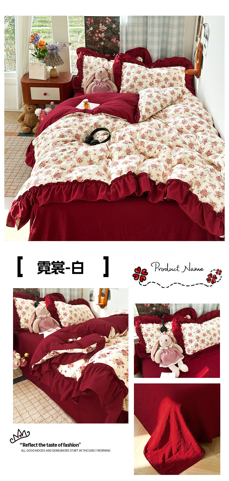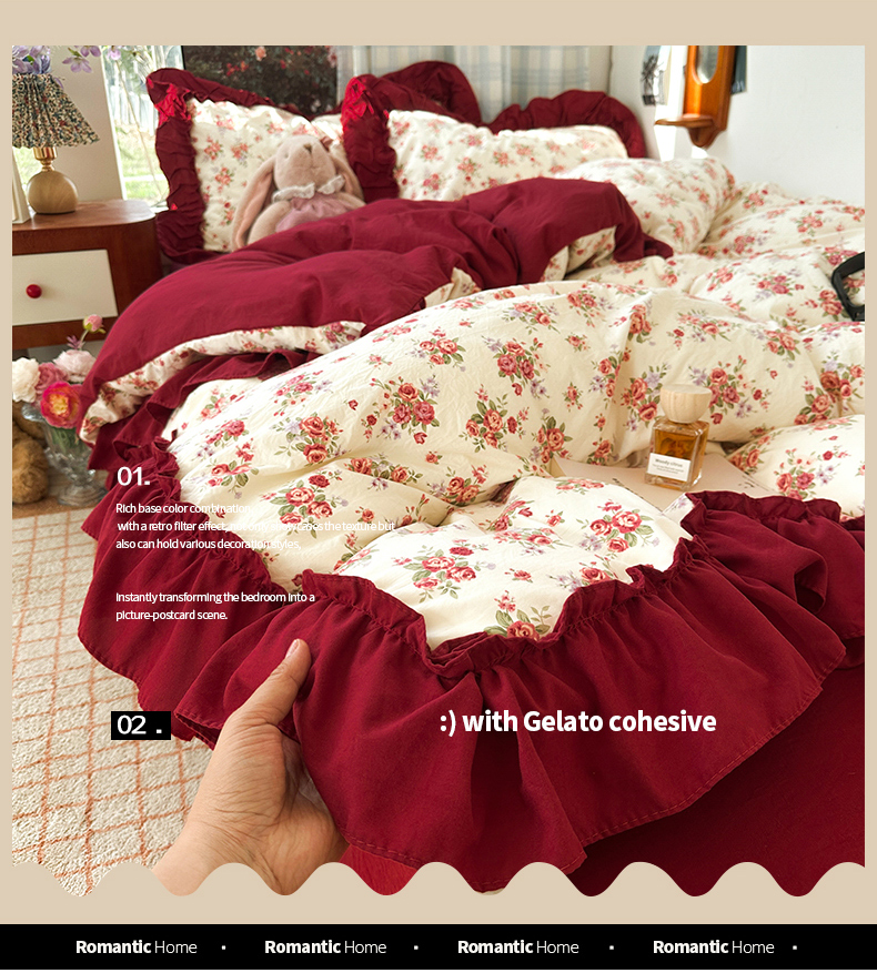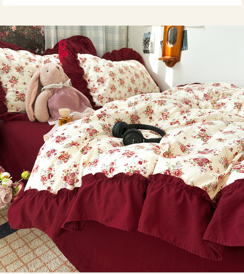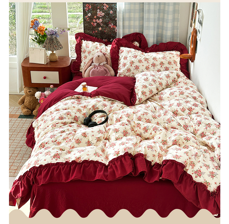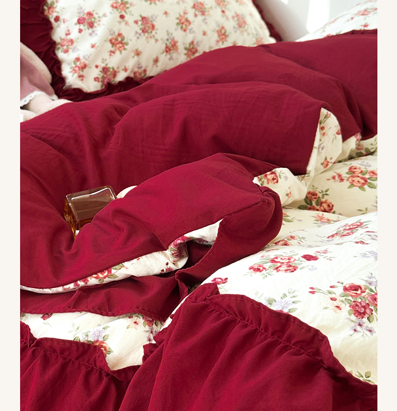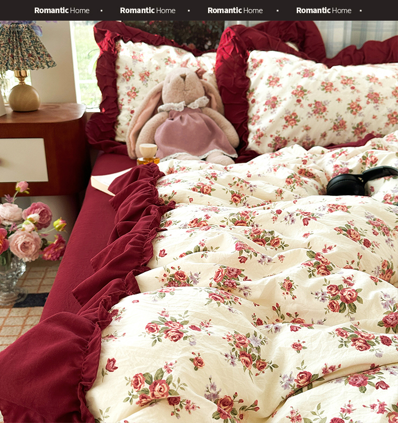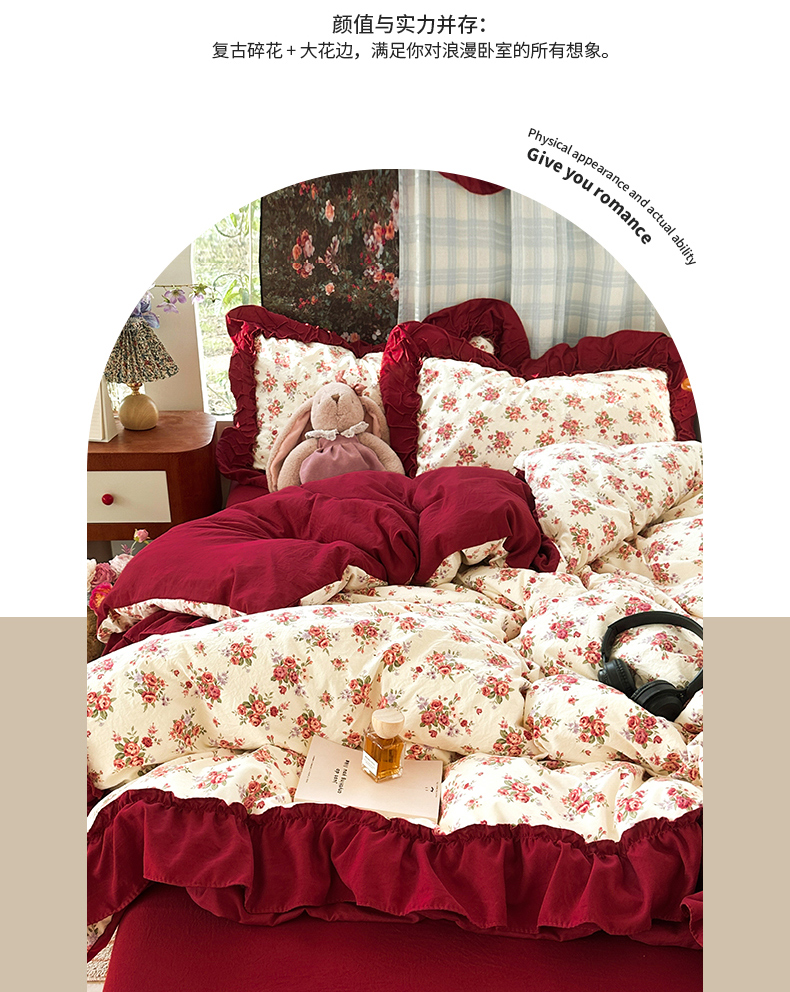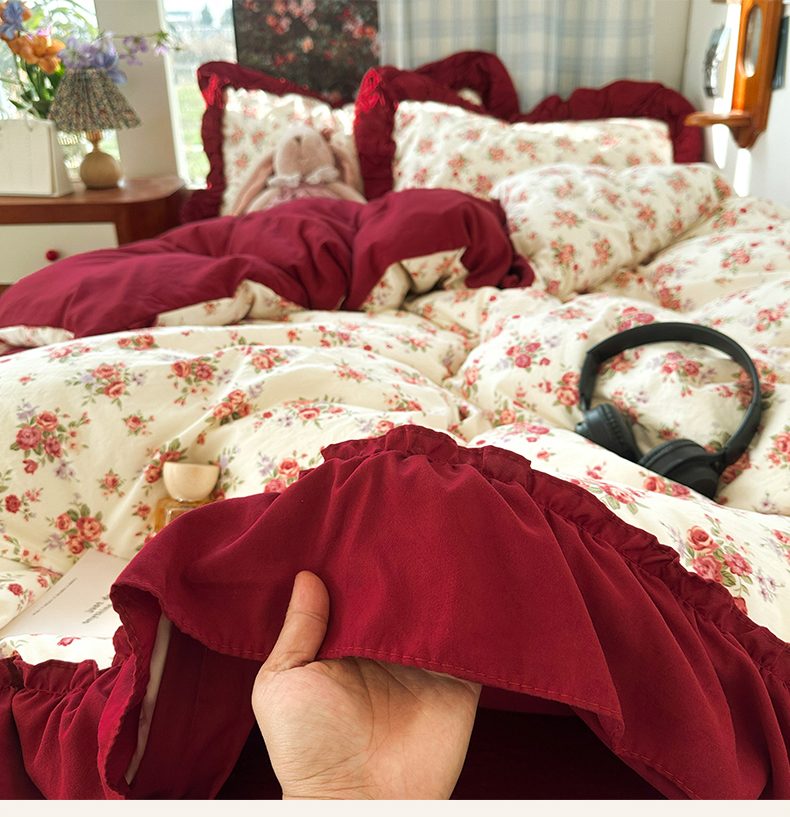 当前位置: 91家纺网 > 商品网购 > 床品套件 > 四件套 > 水洗棉四件套 > 花伞家居 2026新款韩系复古碎花古法水洗棉大花边四件套含买家秀 霓裳-白