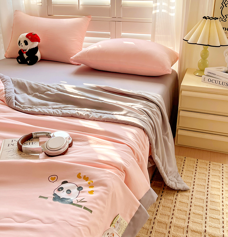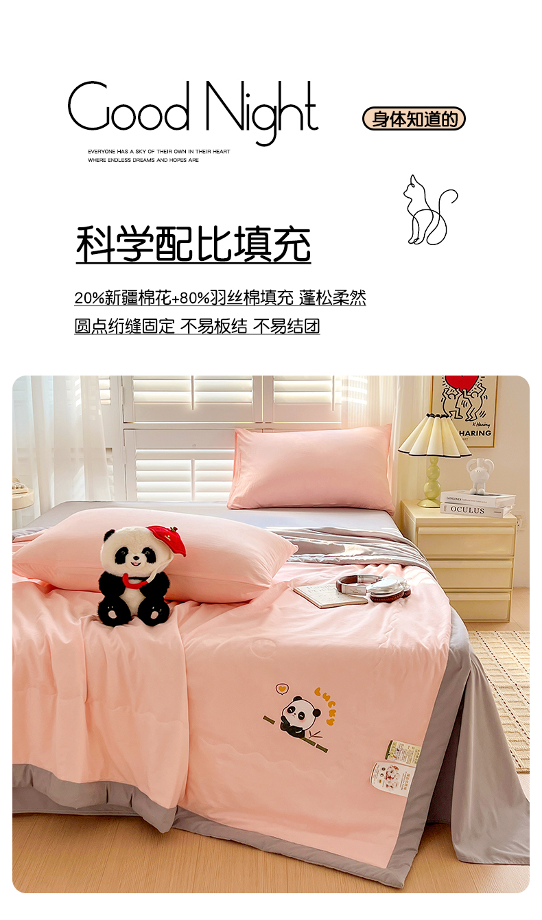 商品名称:易展家居 2026新款水洗棉新疆棉花夏被-棉花棉花+熊猫款 能猫·粉拼灰