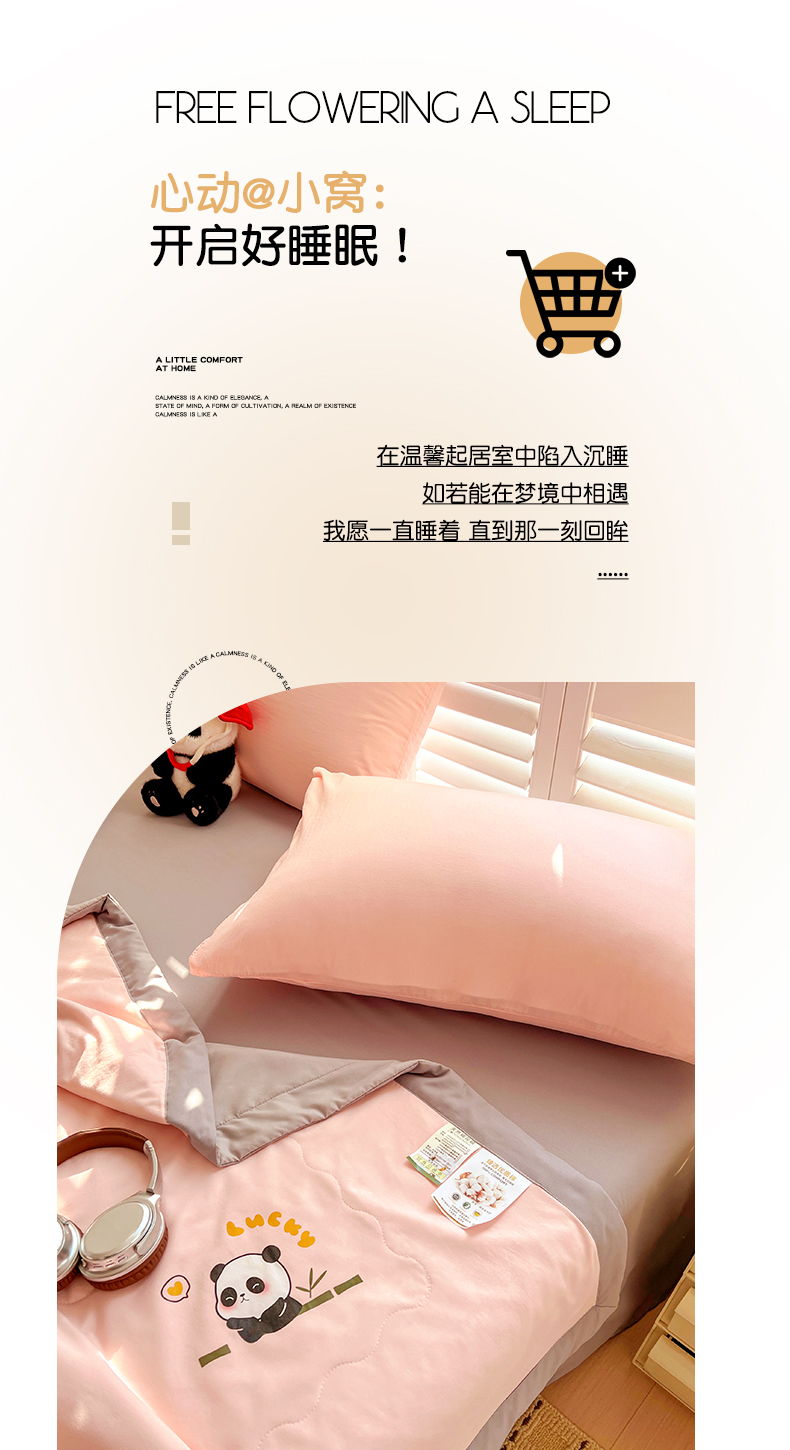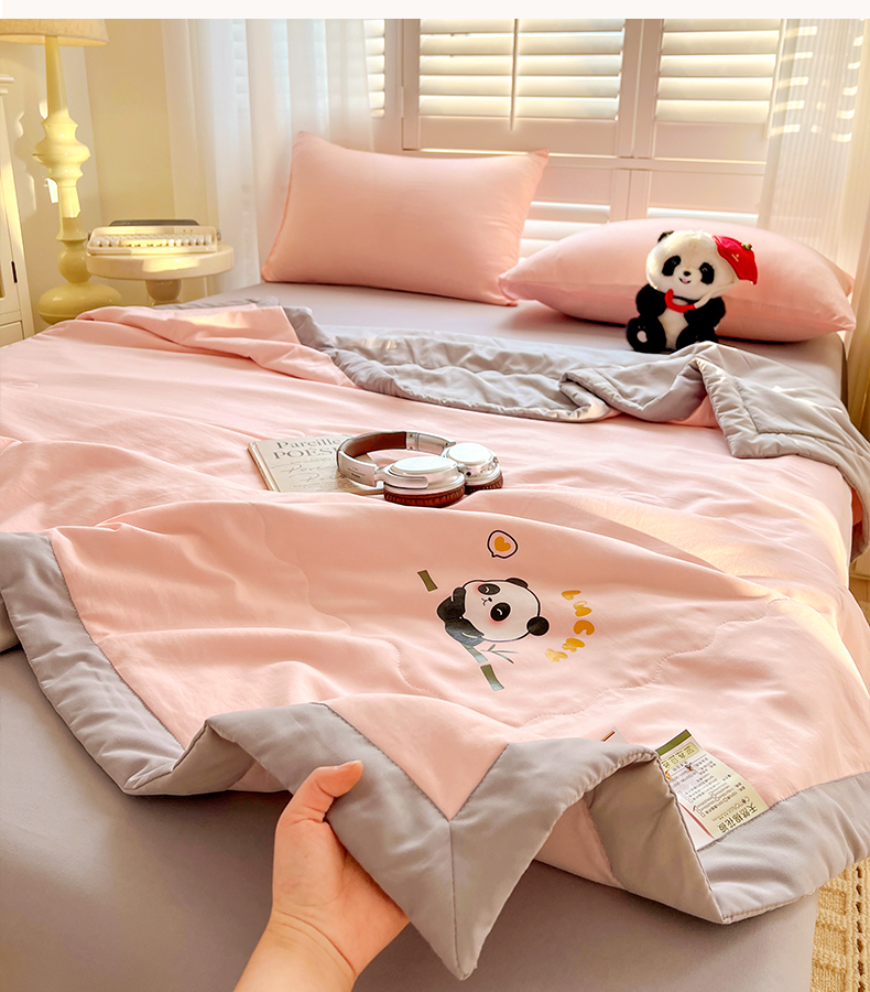 (总)易展家居 2025年新款水洗棉熊猫夏被,熊猫-奶昔白,熊猫-轻绿,熊猫-轻银粉,熊猫-轻银灰