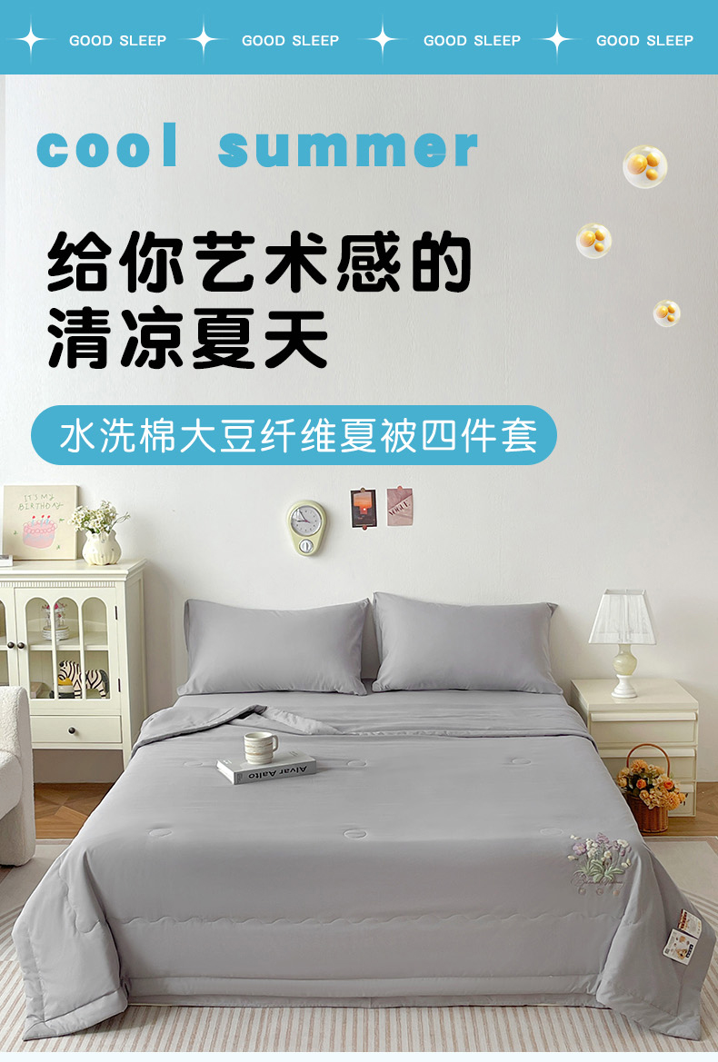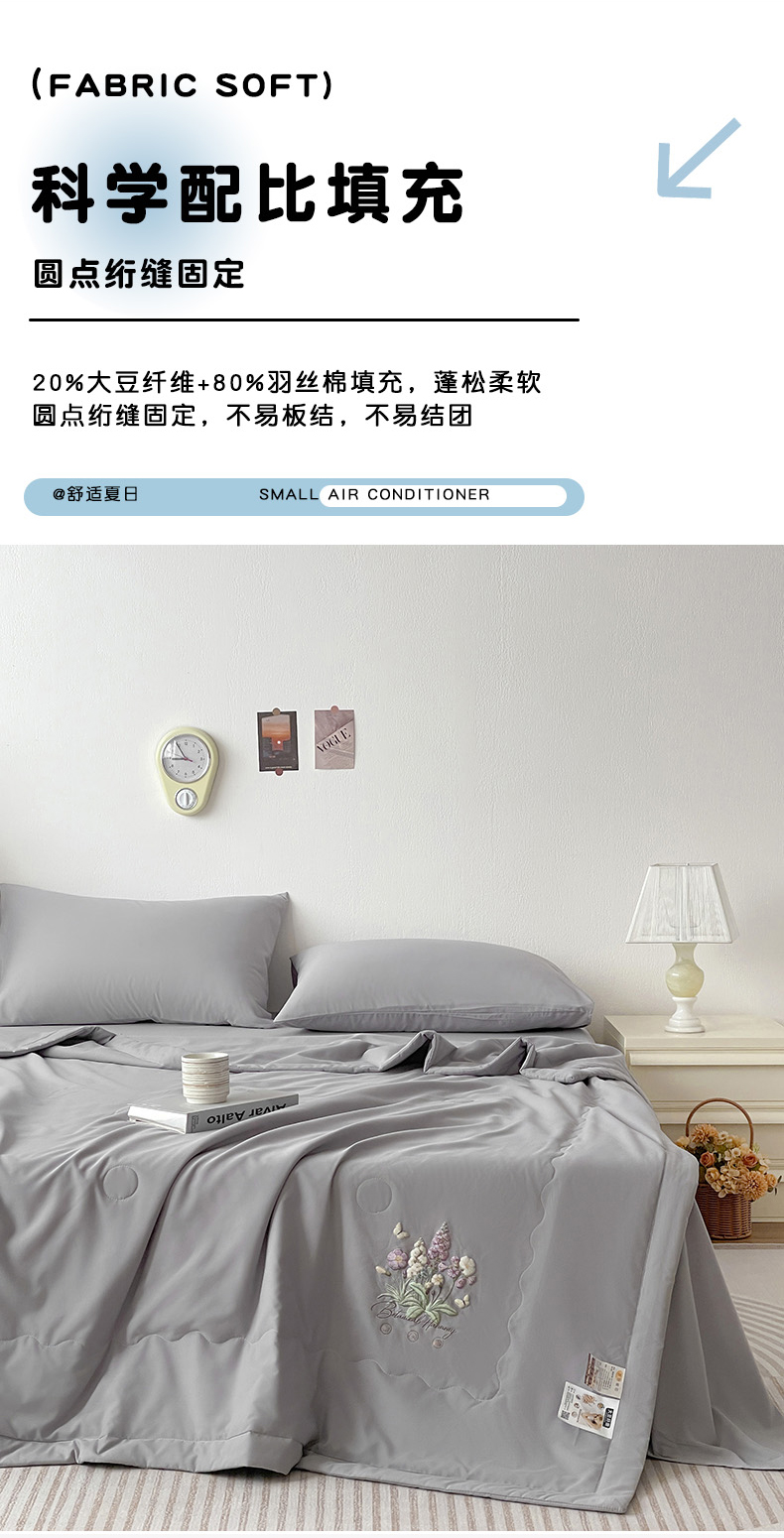 (总)易展家居 2026新款水洗棉大豆纤维夏被-田园生活,田园生活-粉色,田园生活-灰色,田园生活-浅黄,田园生活-青色