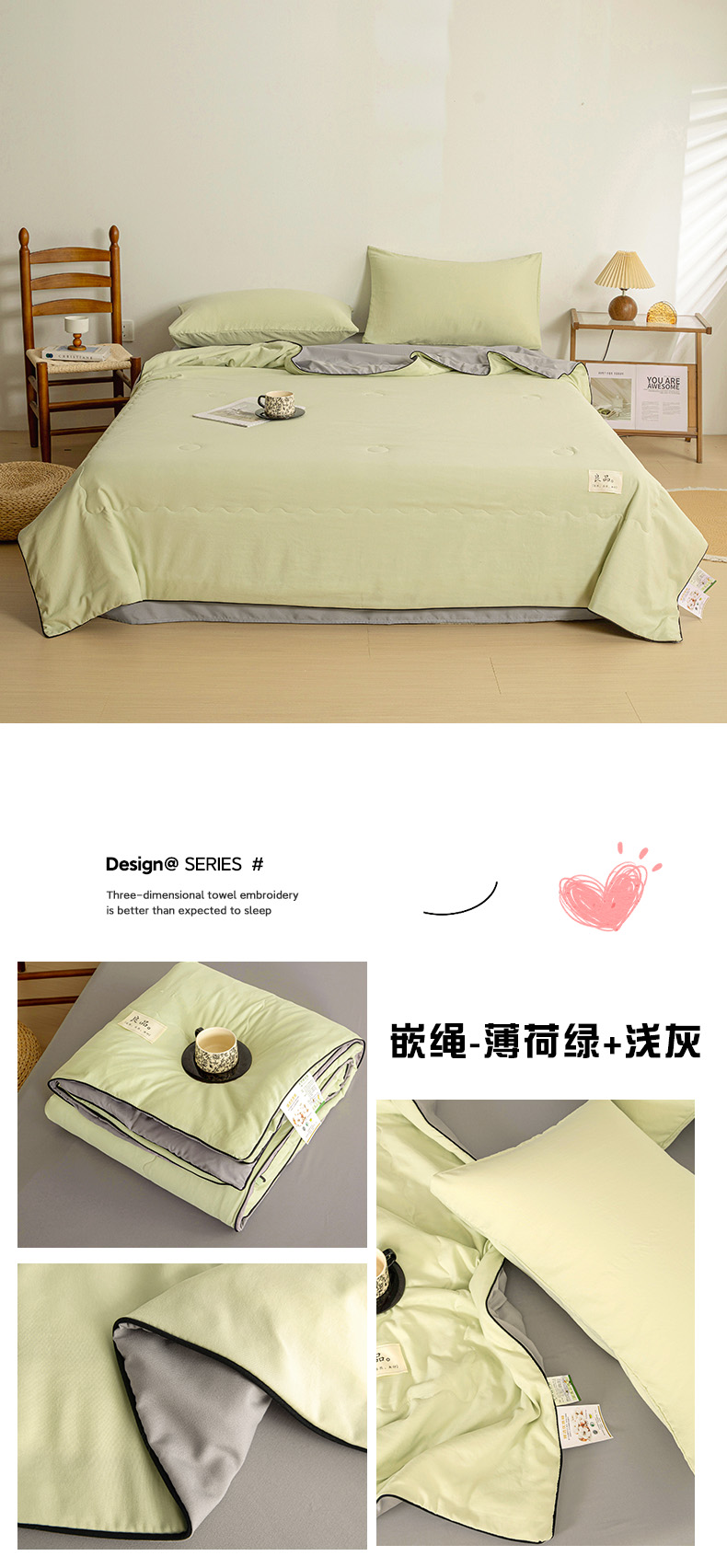 (总)易展家居 2025年新款水洗棉纯色夏被,薄荷绿,典雅白,高级灰,樱花粉