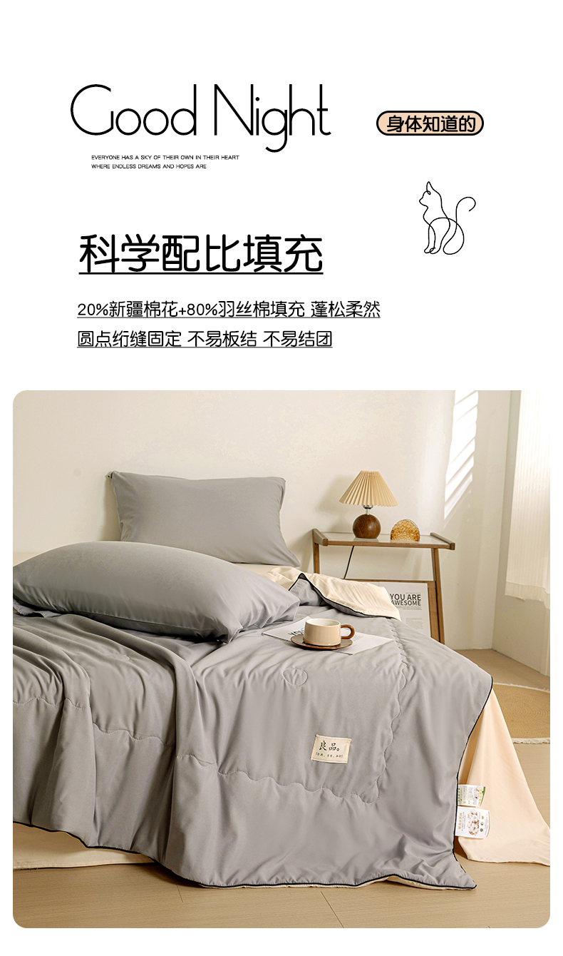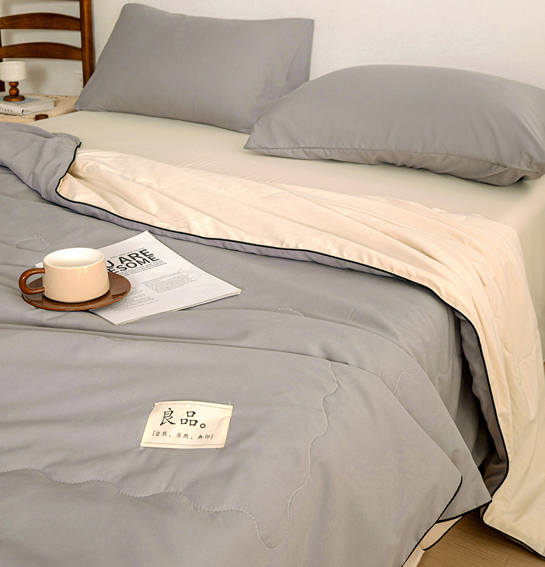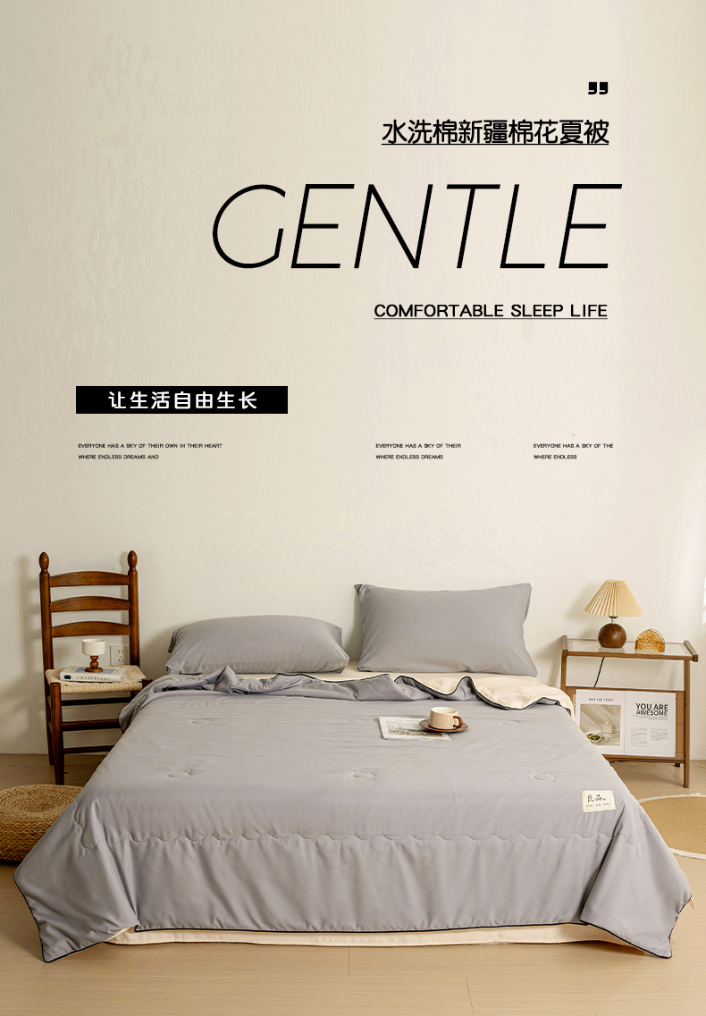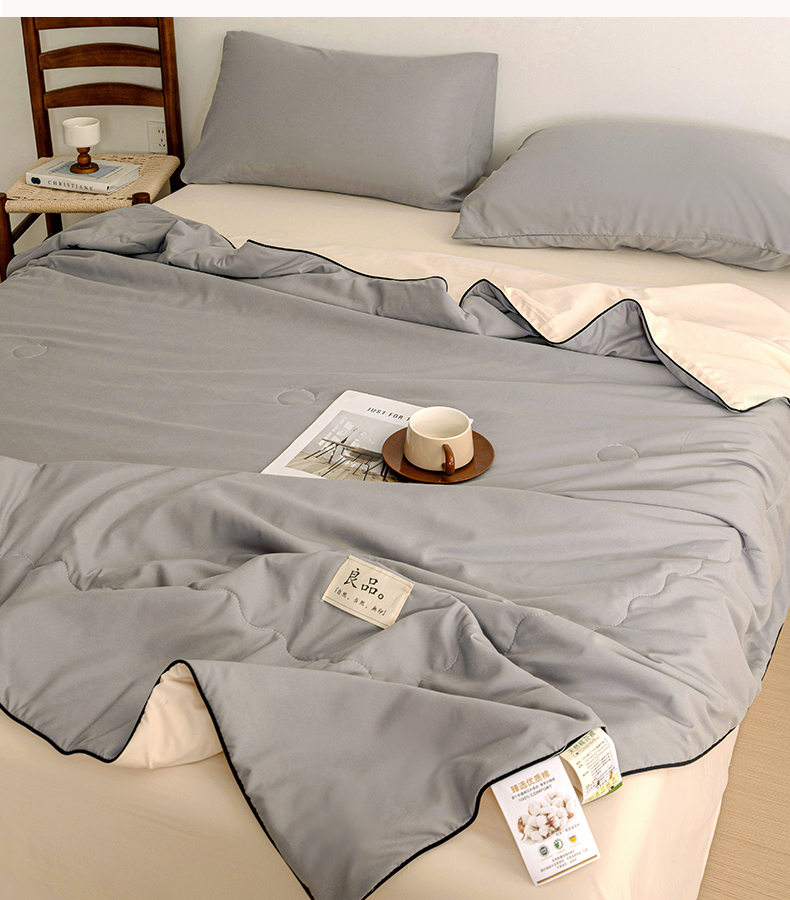 商品名称:易展家居 2026新款水洗棉新疆棉花夏被-嵌绳款 嵌绳-浅灰