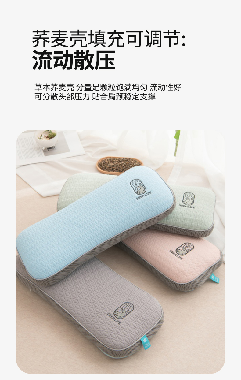 商品名称:(总)仁宇枕业 2026新款新品清凉夏季凉豆豆一鹿有你系列骨头护颈头枕腰枕荞麦枕头枕芯