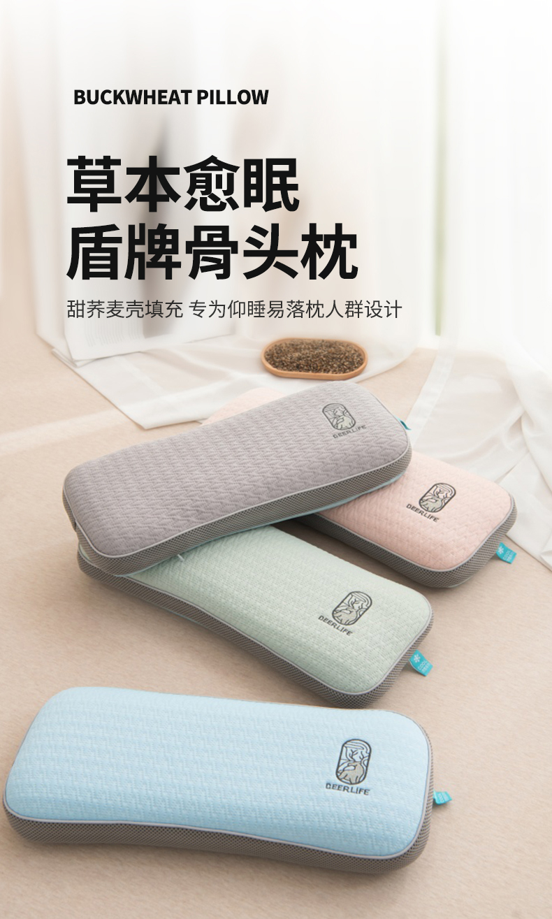 (总)仁宇枕业 2026新款新品清凉夏季凉豆豆一鹿有你系列骨头护颈头枕腰枕荞麦枕头枕芯