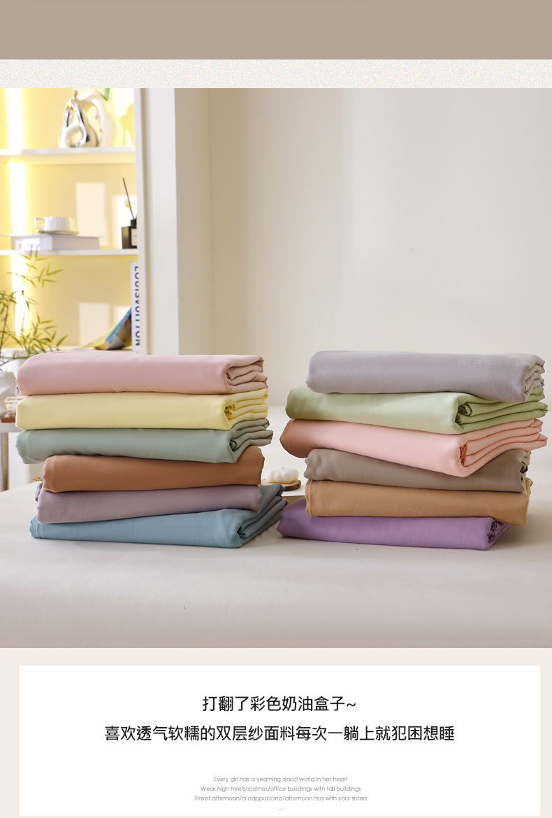 (总)晶缦家纺 2026新款纯棉全棉双层纱四件套/三件套纯色母婴级多规格床单款床笠款四季通用,觅琳-海天霞,觅琳-木槿紫,觅琳-朱颜酡,觅琳-赭石棕,觅琳-桃青蓝,觅琳-浅藤紫,觅琳-浅蜜黄,觅琳-浅春绿,觅琳-暖藕灰,觅琳-嫩荷绿,觅琳-暮云粉,觅琳-浅卡其