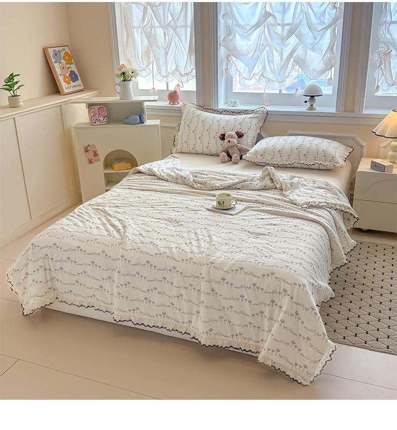 鑫贝阳 2026新款韩版花边邹邹绵夏被 蘑菇小森林
