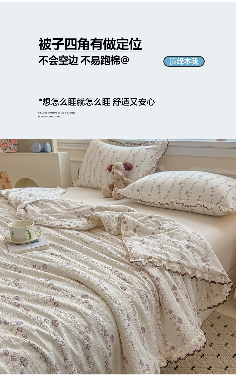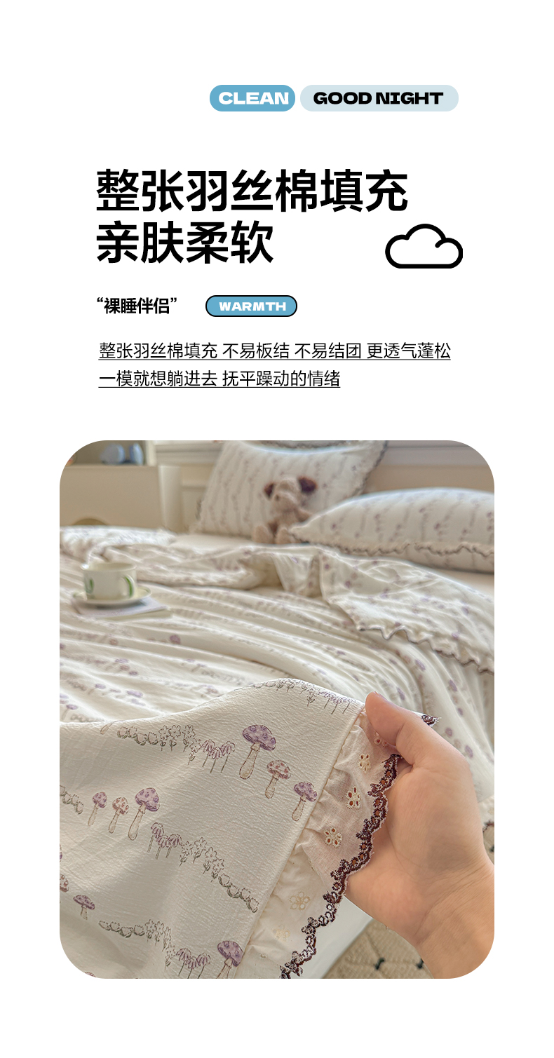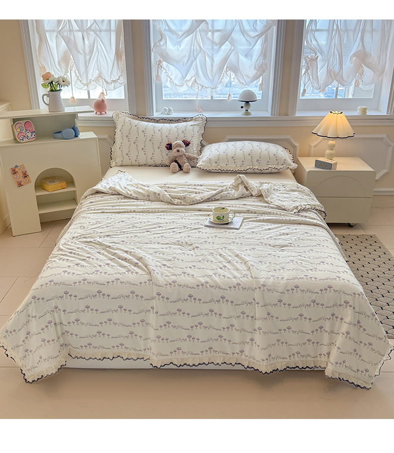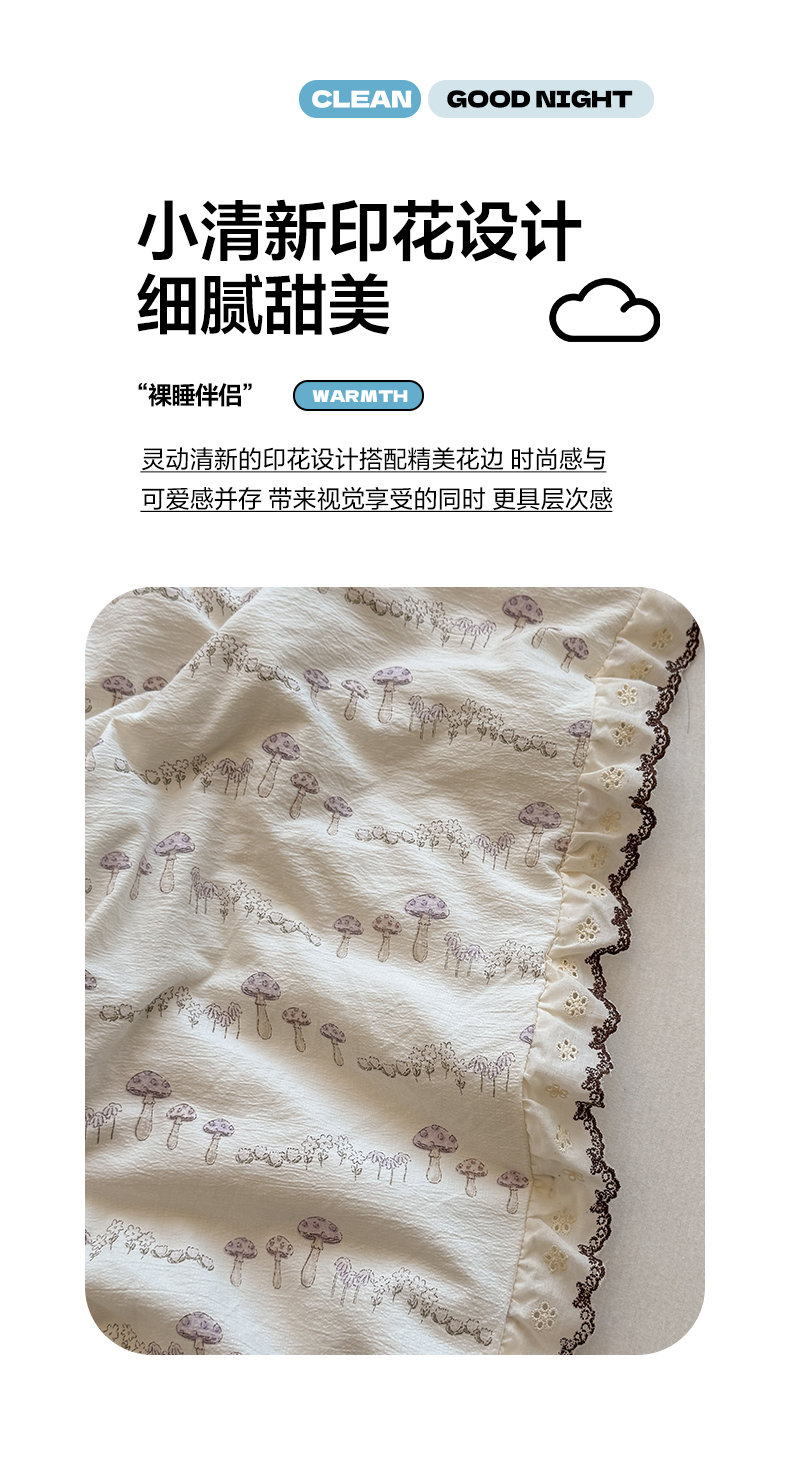 商品名称:鑫贝阳 2026新款韩版花边邹邹绵夏被 蘑菇小森林
