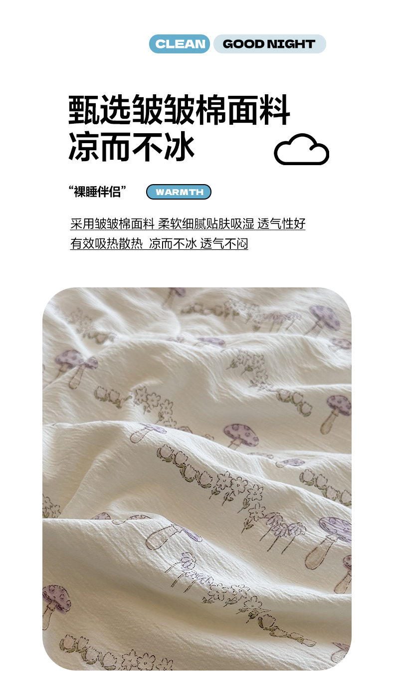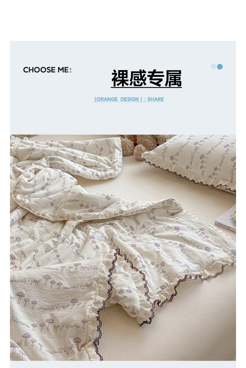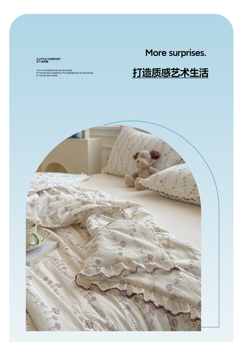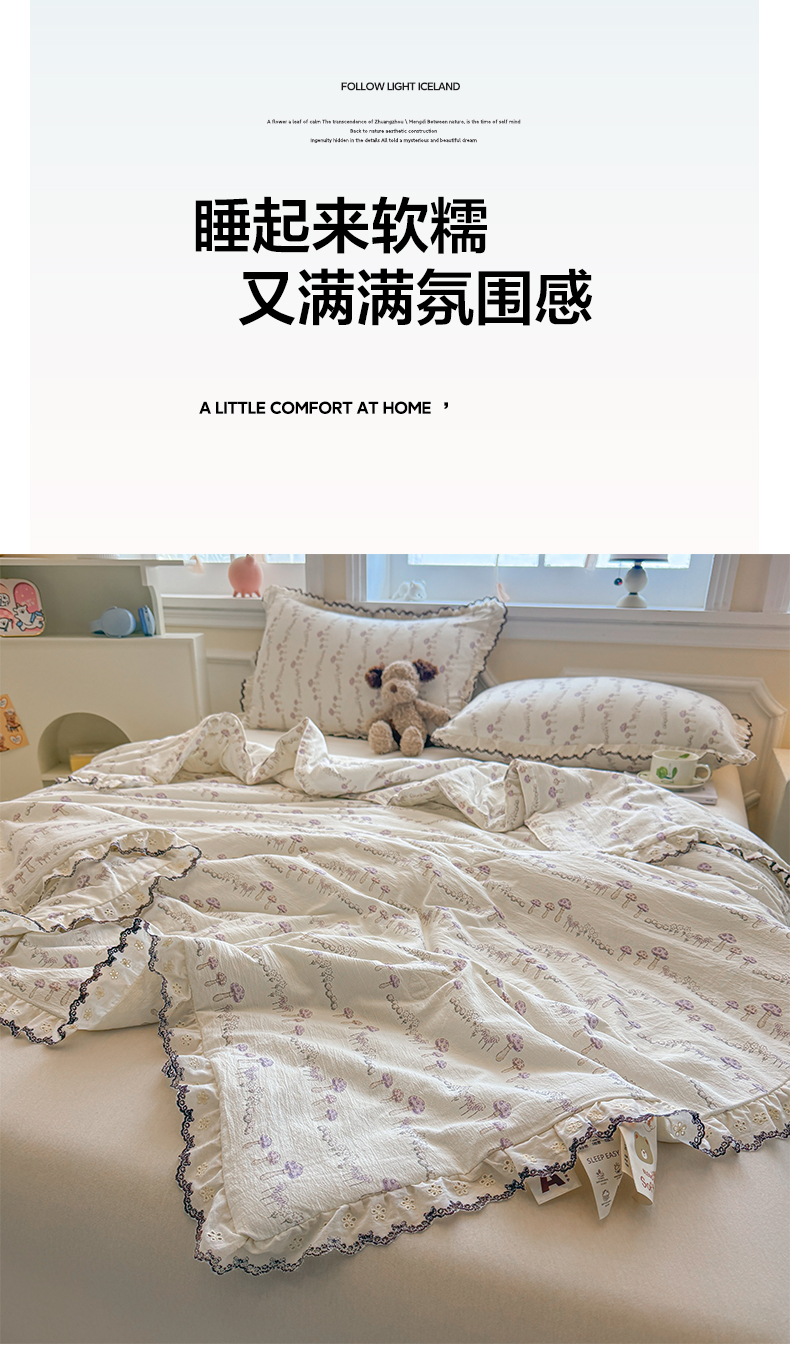 商品名称:鑫贝阳 2026新款韩版花边邹邹绵夏被 蘑菇小森林