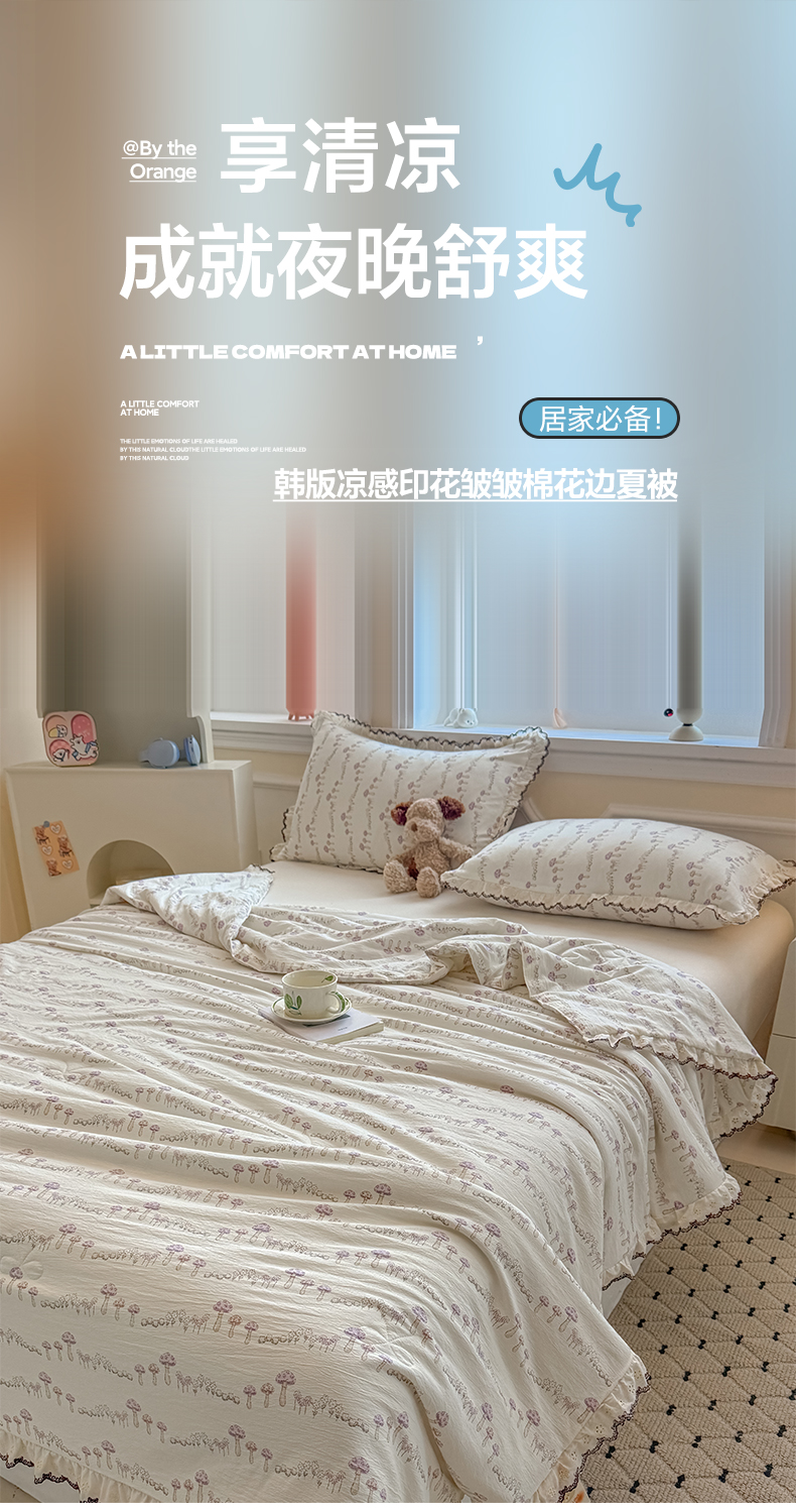 (总)鑫贝阳 2026新款韩版花边邹邹绵夏被,爱心格,薄荷小森林,马卡龙爱心,蘑菇小森林,奶雾花野,碎碎小碎花