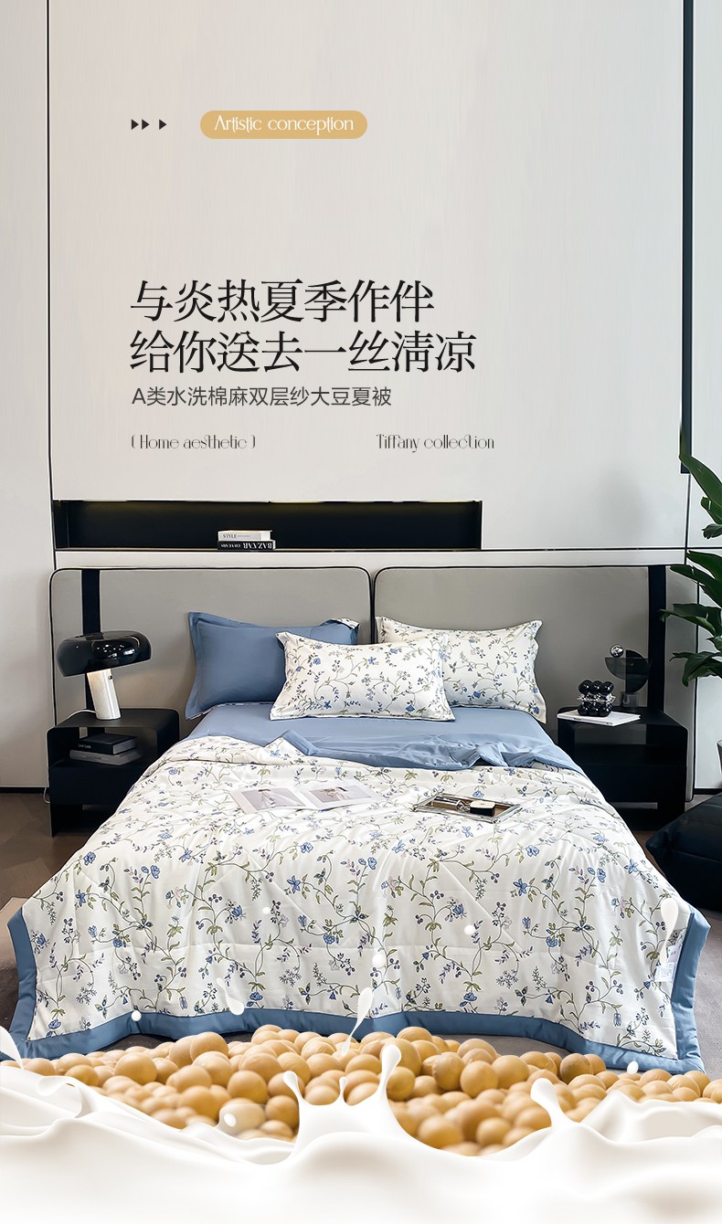 当前位置: 91家纺网 > 商品网购 > 床品套件 > 四件套 > 夏被四件套 > 帕拉美拉 2026新款A类棉麻夏被四件套 夕颜-蓝