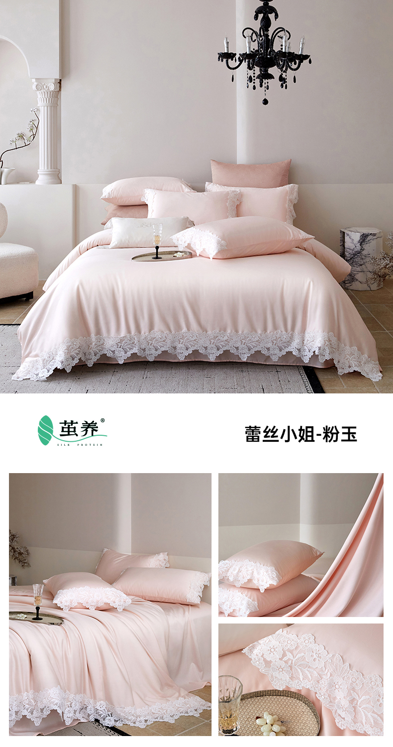 (总)金奇达家纺 2026新款茧养丝光缎四件套-蕾丝小姐(标准号全网控价(折后券后)不低于299元),蕾丝小姐-粉玉,蕾丝小姐-莲紫,蕾丝小姐-蔷薇,蕾丝小姐-山茶,蕾丝小姐-烟霞,蕾丝小姐-云纱