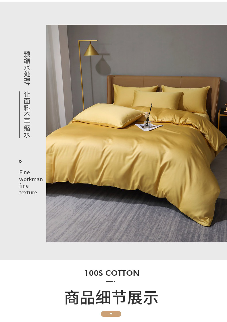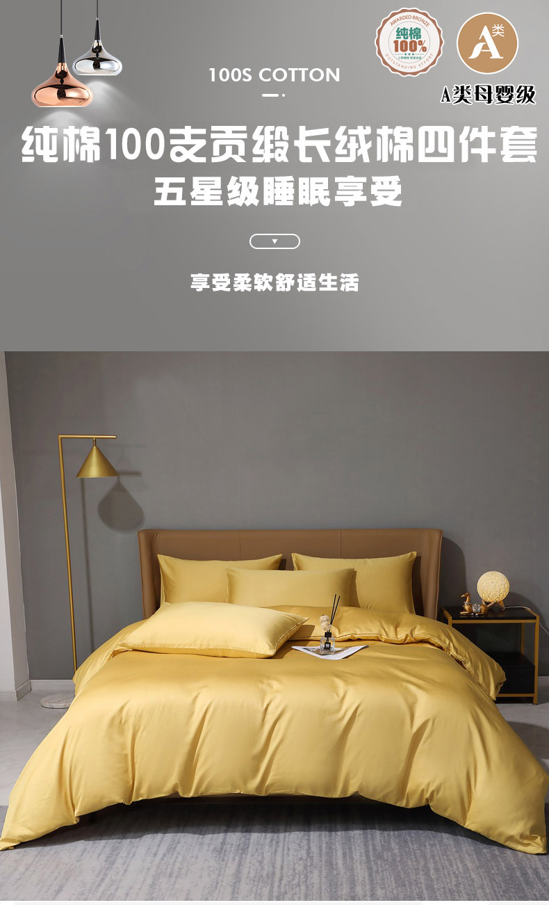 当前位置: 91家纺网 > 商品网购 > 床品套件 > 四件套 > 全棉普通四件套 > 晶缦家纺 2026新全棉A类纯棉100支贡缎长绒棉纯色多规格四件套-绮云系列 绮云-玉米黄