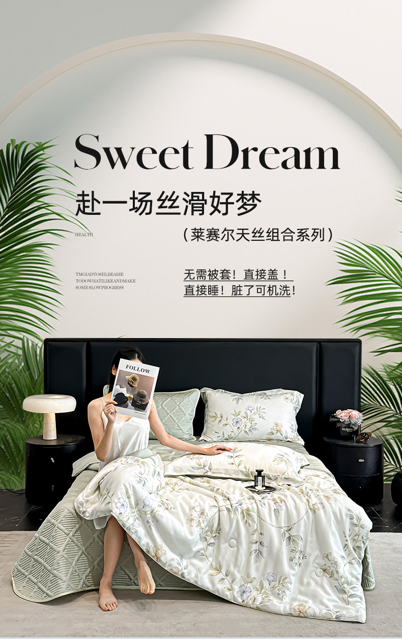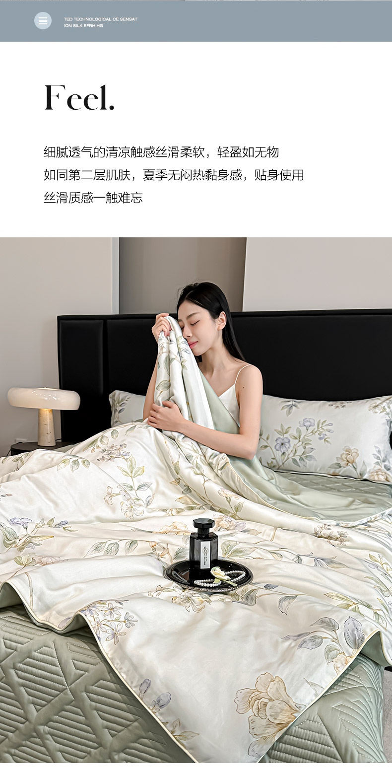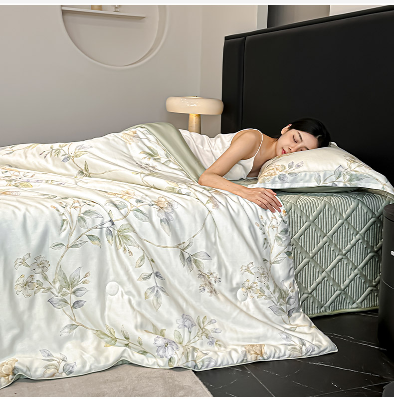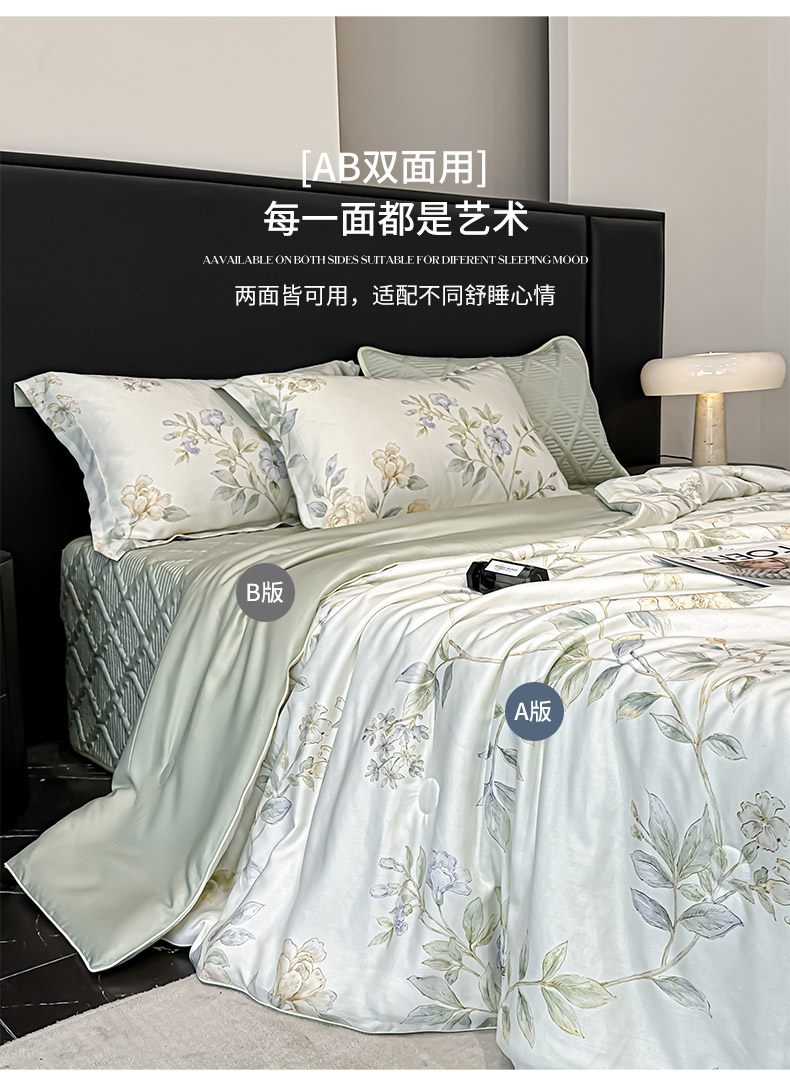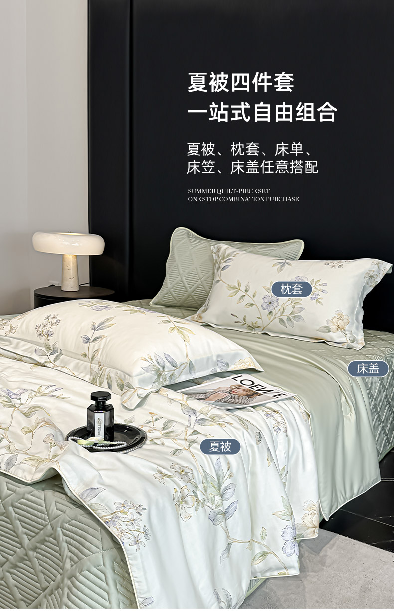 • 91家纺网 家纺一手货源 找家纺 吾诺家居 2026春夏新款数码印花莱赛尔天丝夏被夏凉被空调被-天印系列 青枝花语