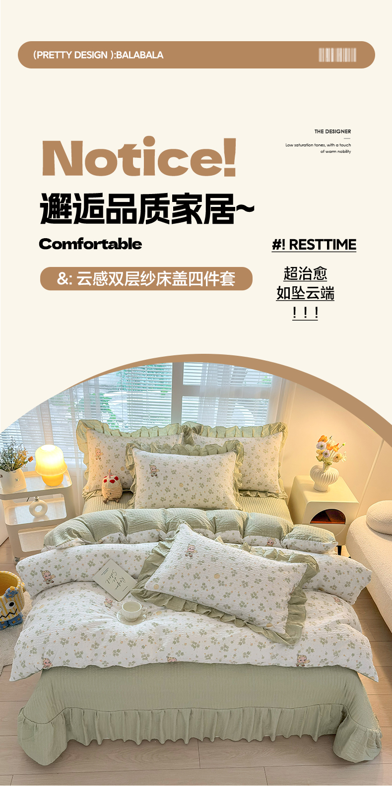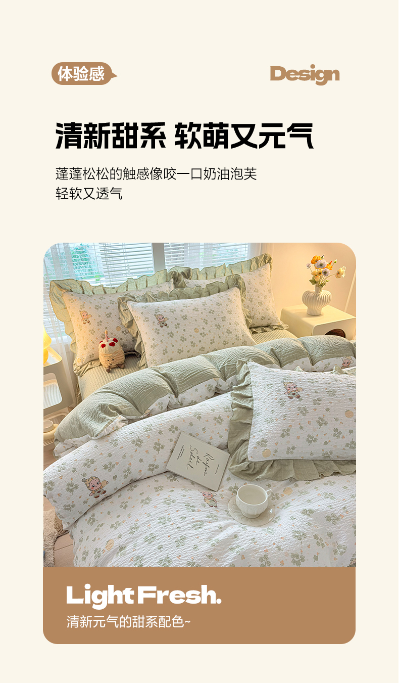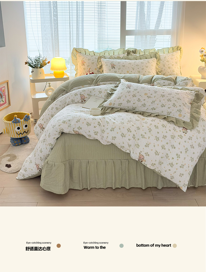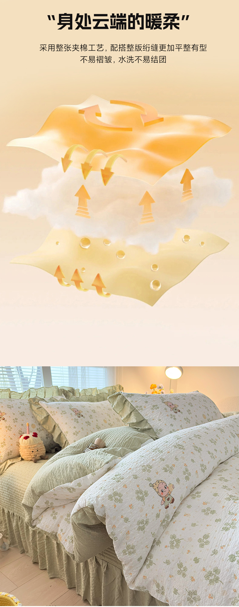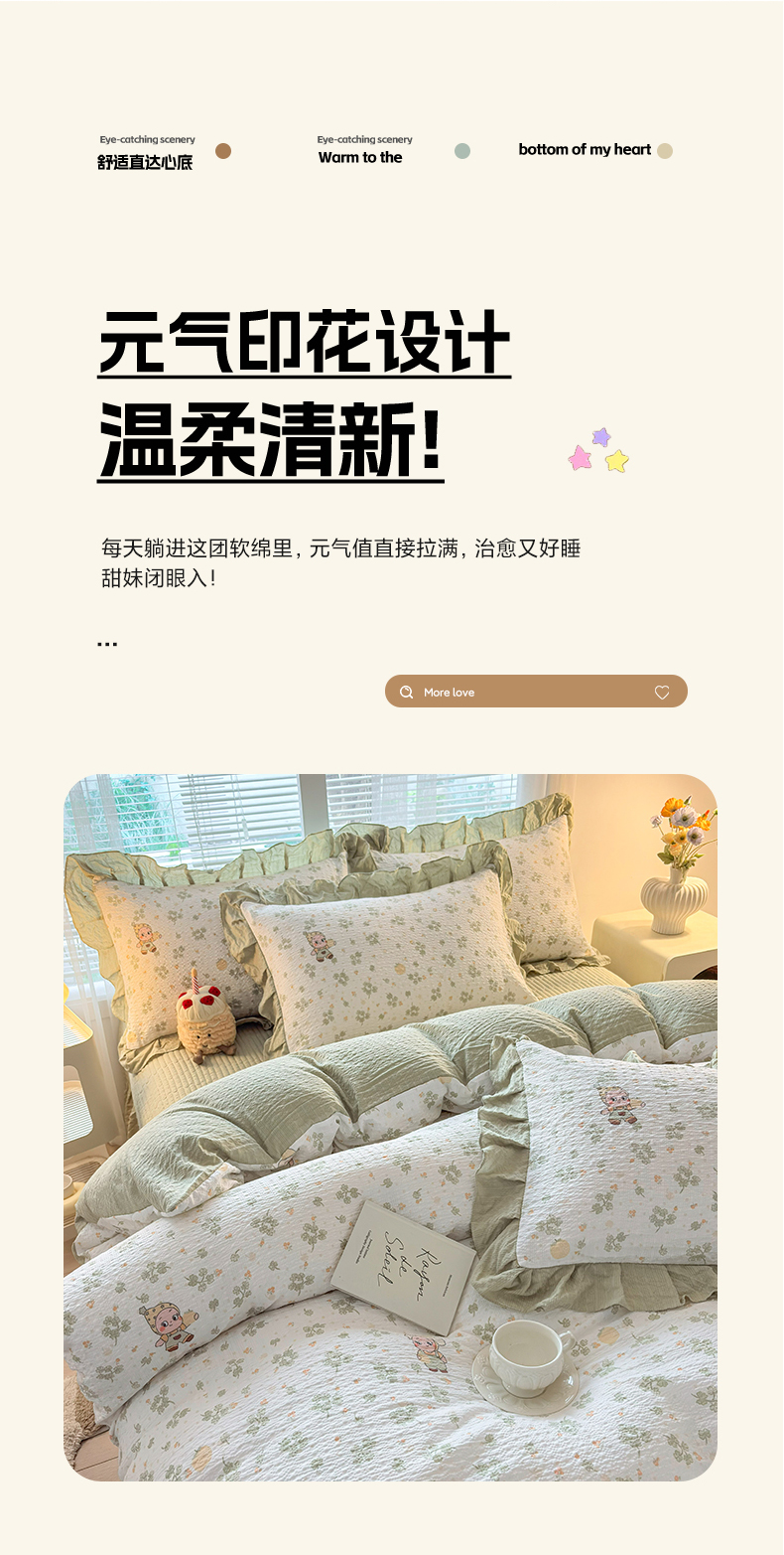 商品名称:畅畅家纺 2026新款春夏小清新泡芙双层纱床盖款四件套 幸运星