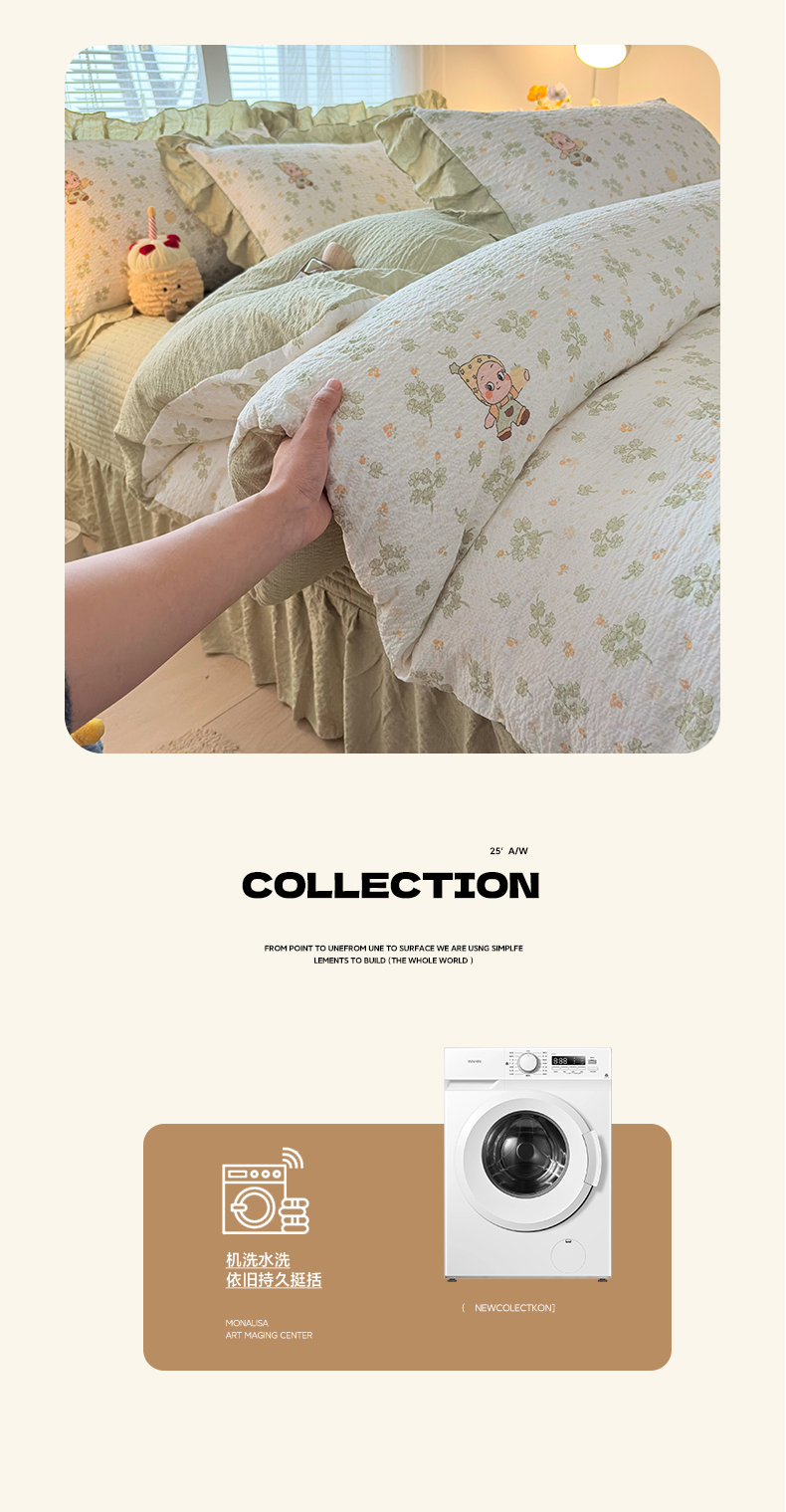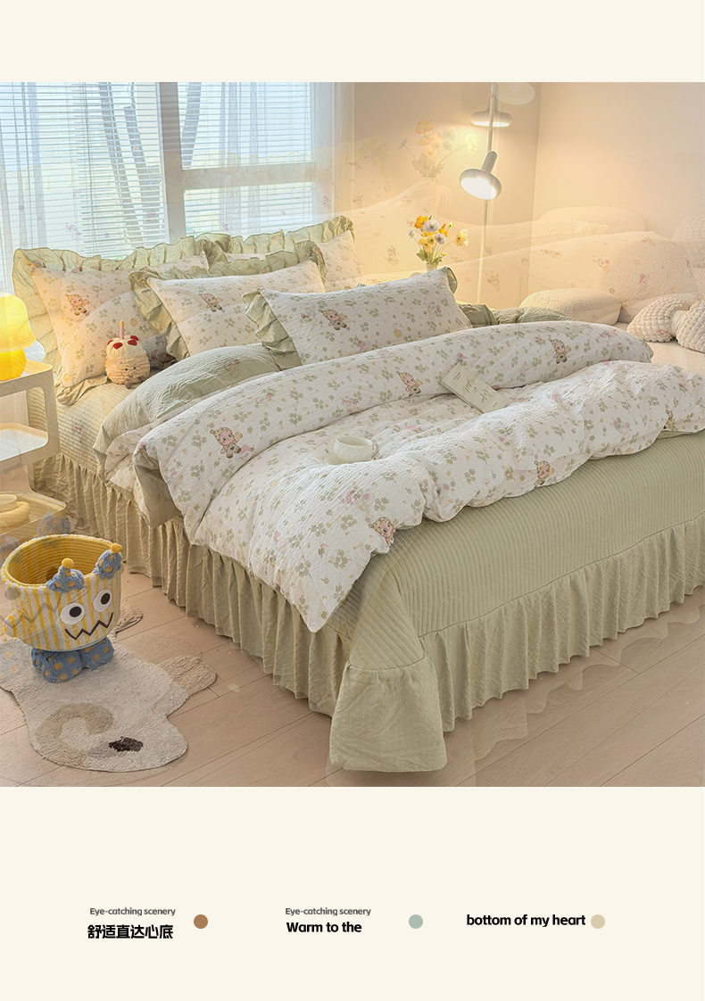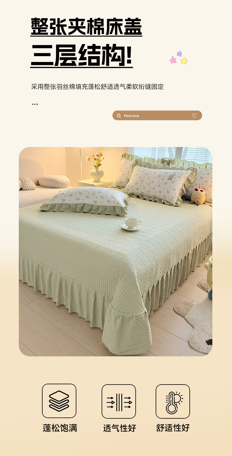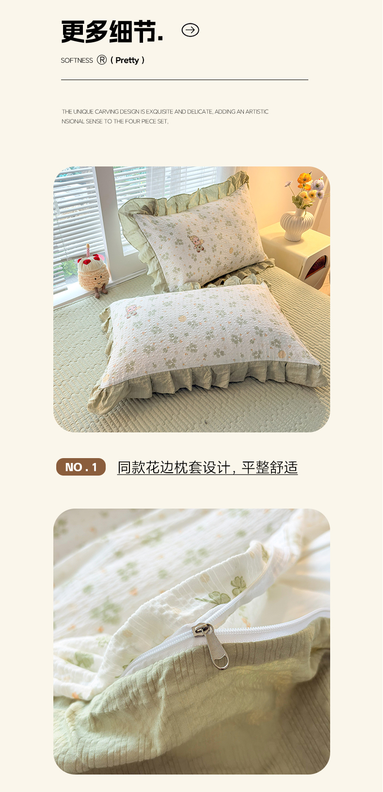 商品名称:畅畅家纺 2026新款春夏小清新泡芙双层纱床盖款四件套 幸运星