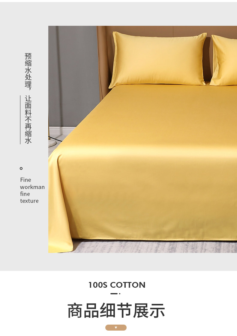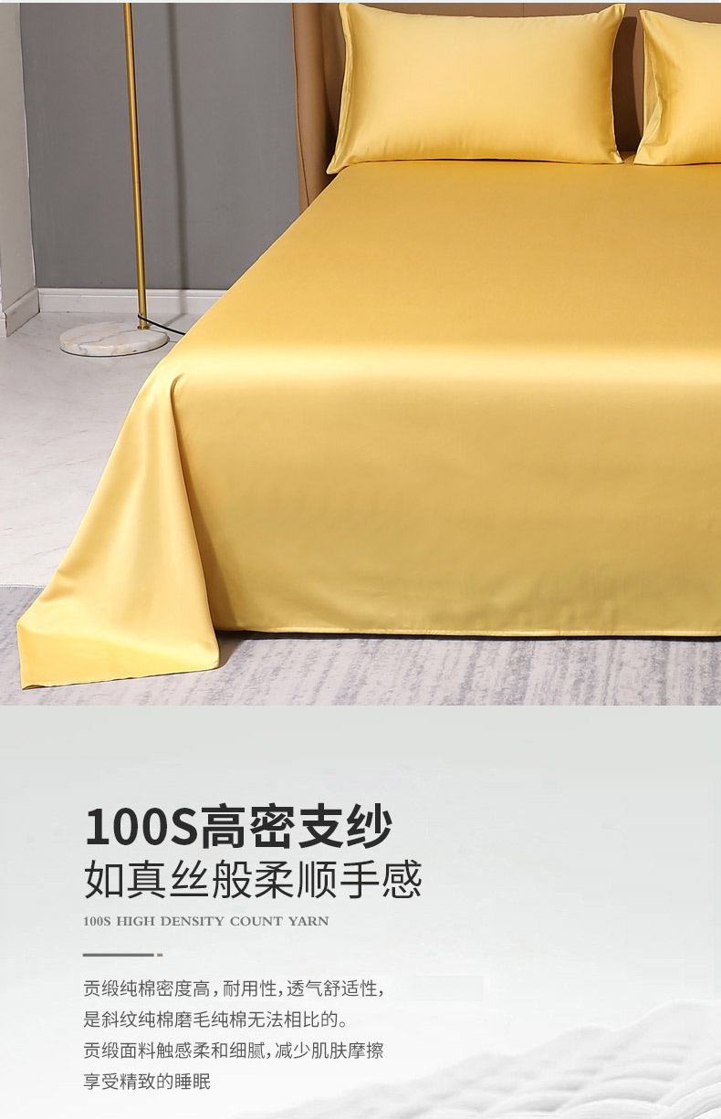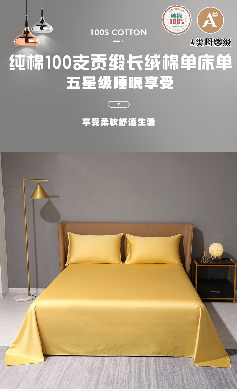 • 91家纺网 家纺一手货源 找家纺 晶缦家纺 2026新全棉A类纯棉100支贡缎长绒棉纯色多规格单床单 床单单件-绮云系列 绮云-玉米黄