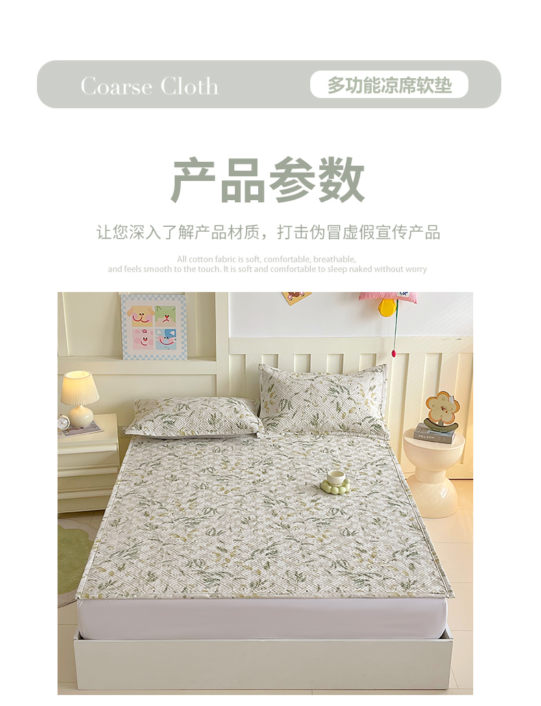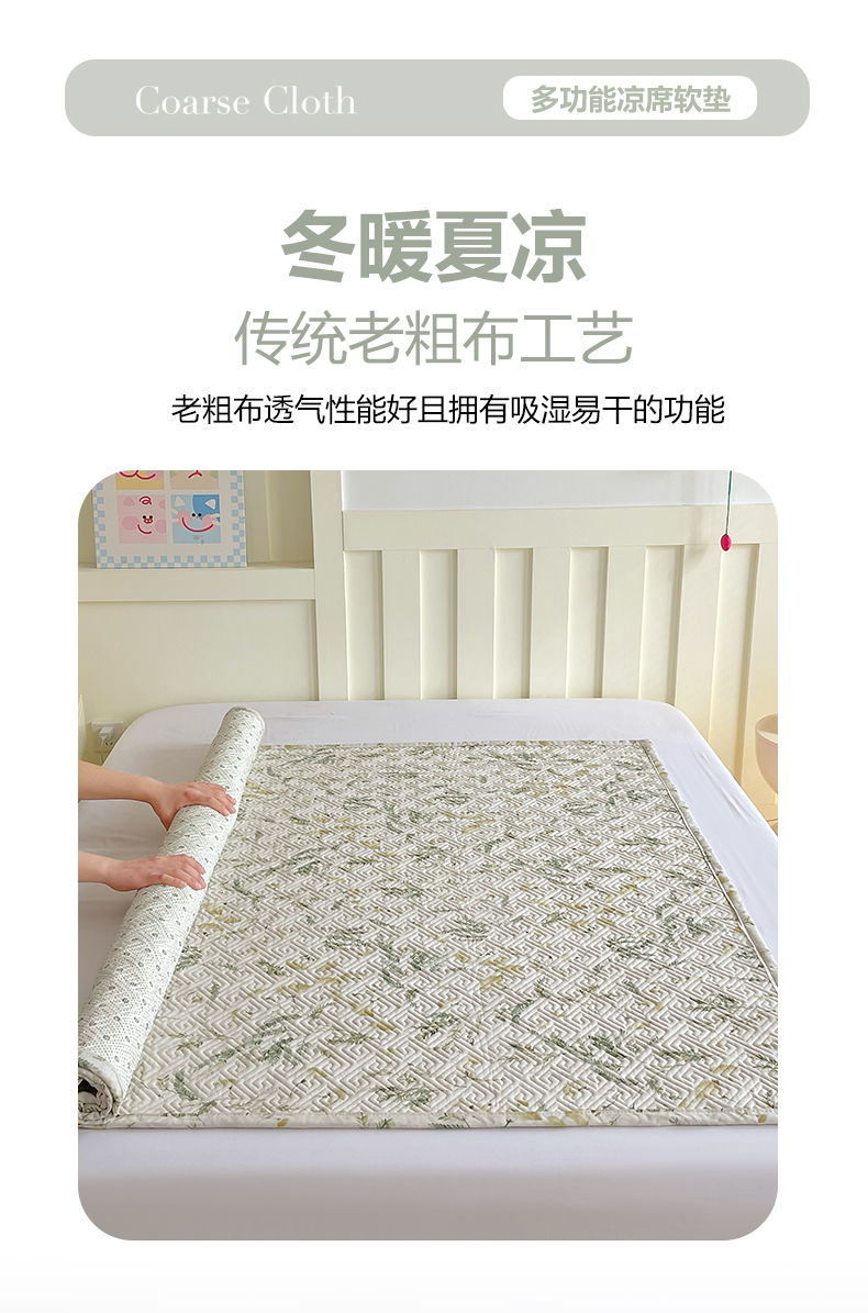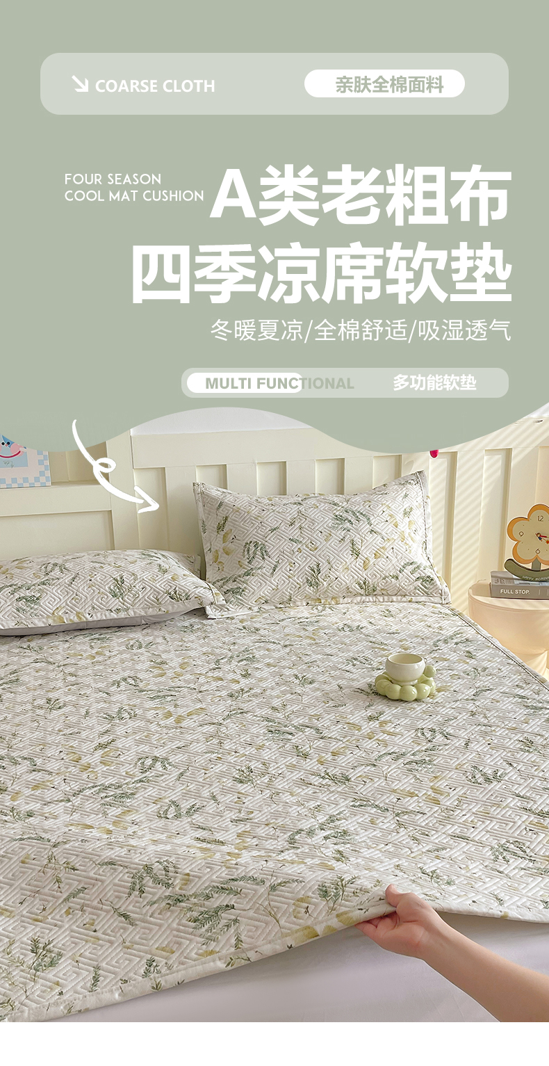 当前位置: 91家纺网 > 商品网购 > 床上用品 > 凉席 > 其他凉席 > 金鑫汇家纺 2026春夏新款成人床新花型老粗布夹棉床盖软凉席席子可以机洗 月下花影-绿