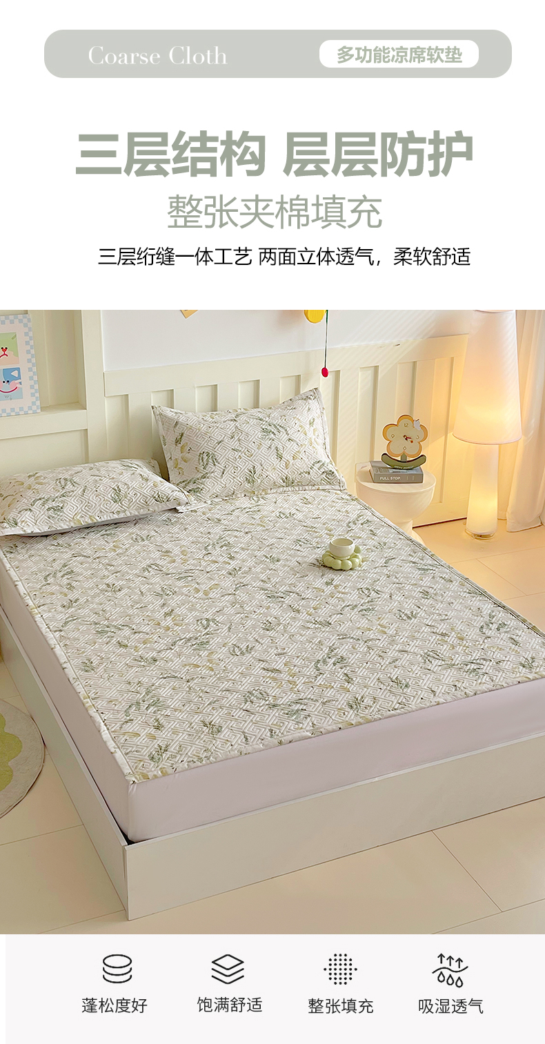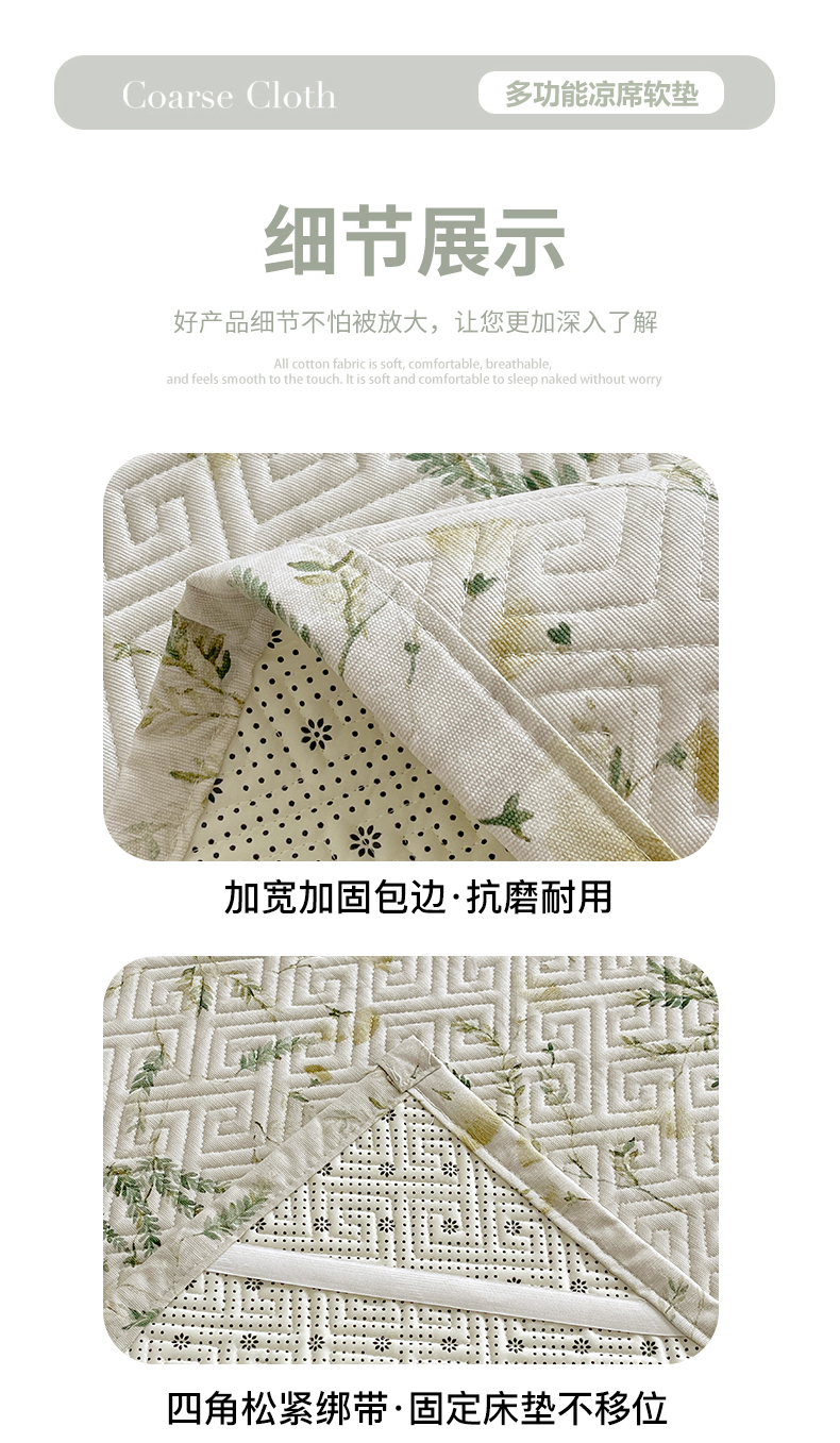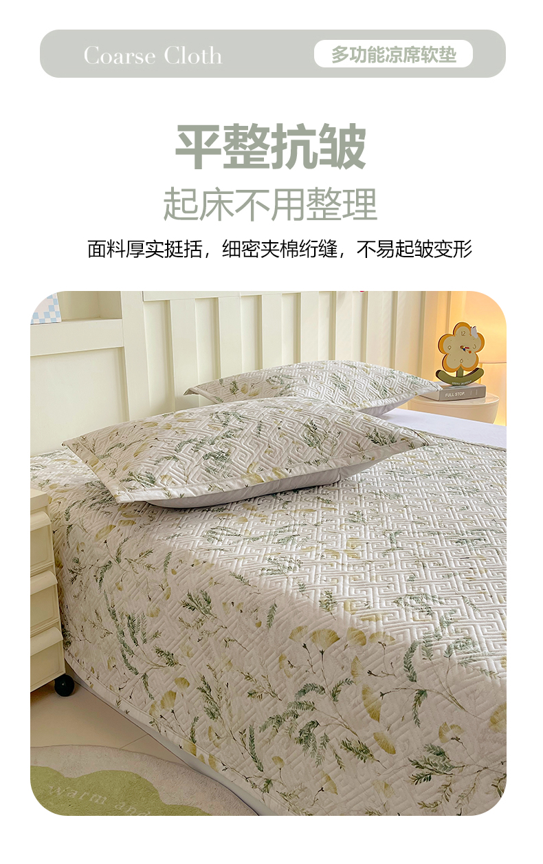 当前位置: 91家纺网 > 商品网购 > 床上用品 > 凉席 > 其他凉席 > 金鑫汇家纺 2026春夏新款成人床新花型老粗布夹棉床盖软凉席席子可以机洗 月下花影-绿