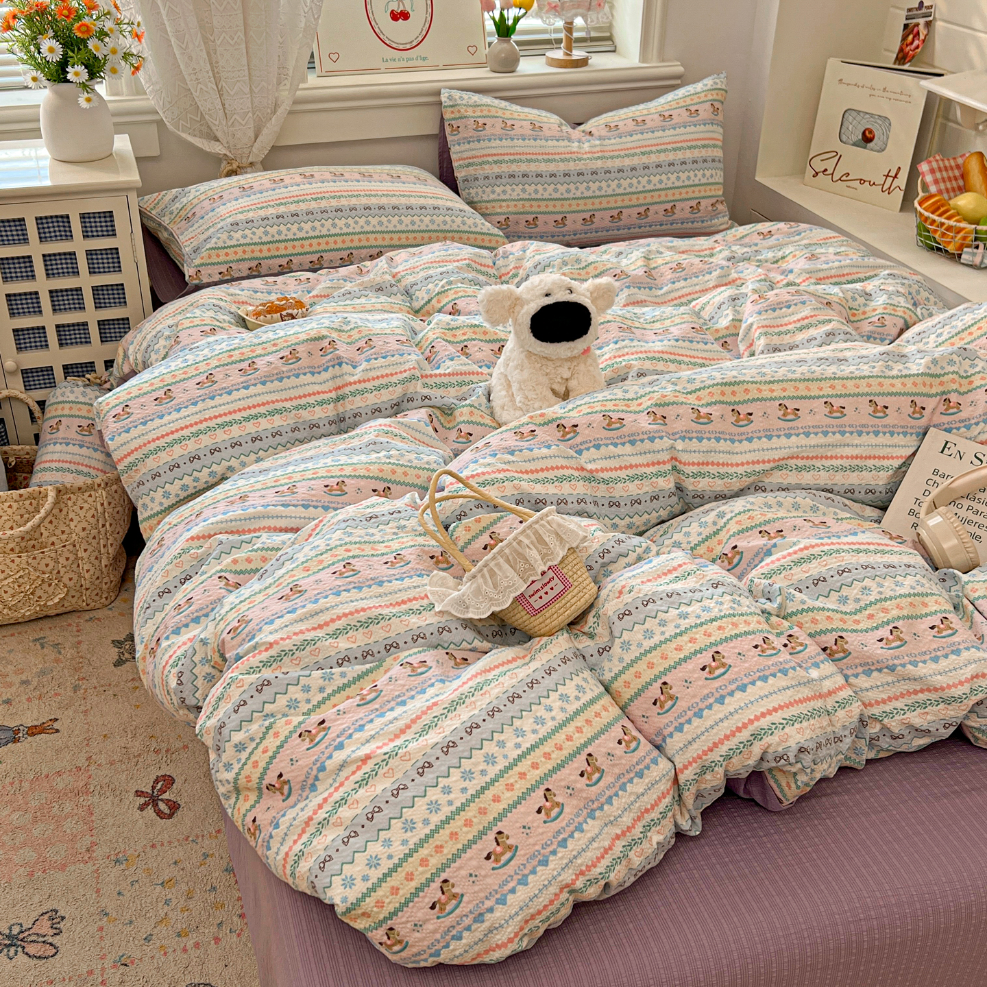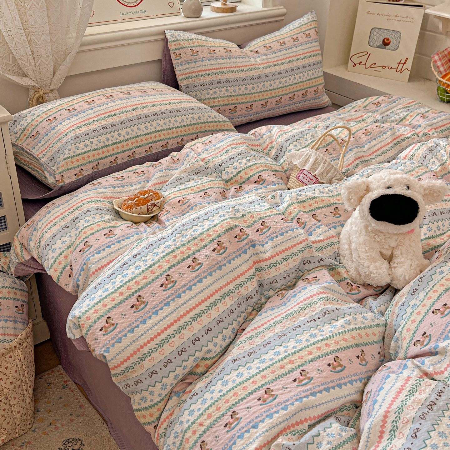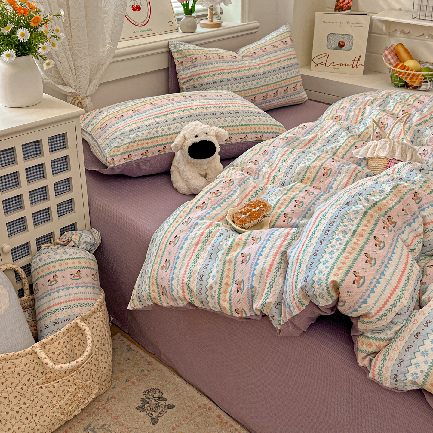 暖伊家居 2026新款糖果小布袋泡芙纱四件套 费尔岛