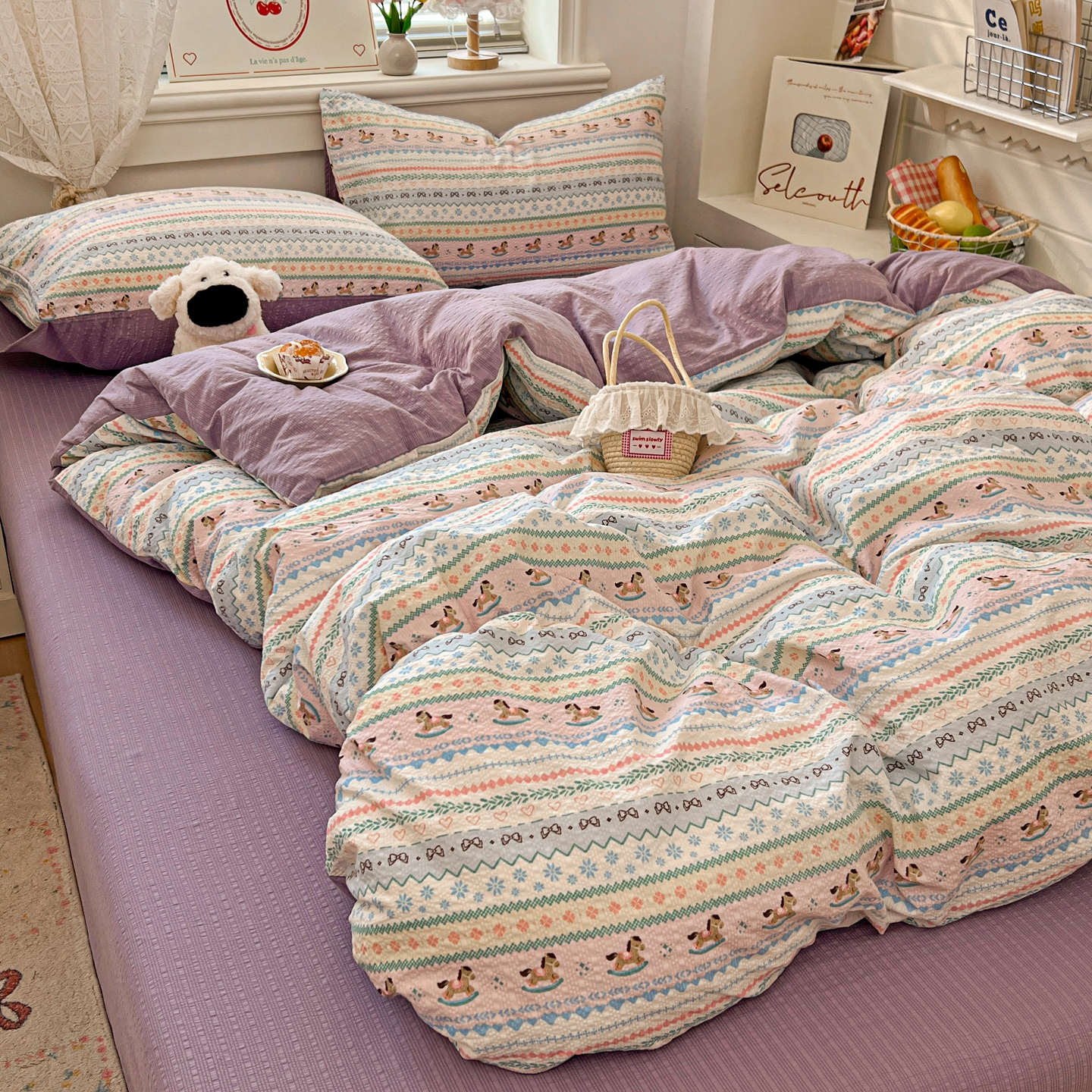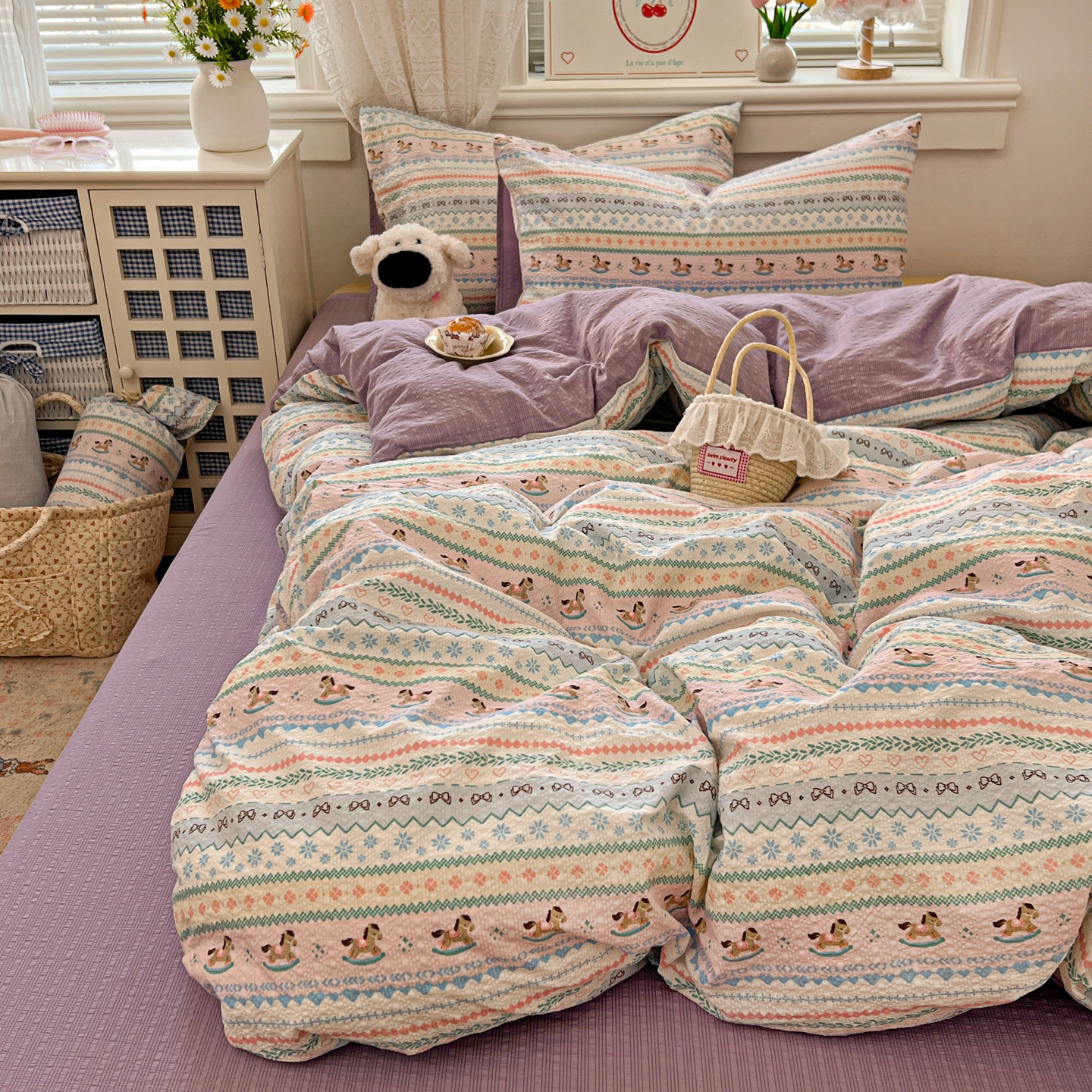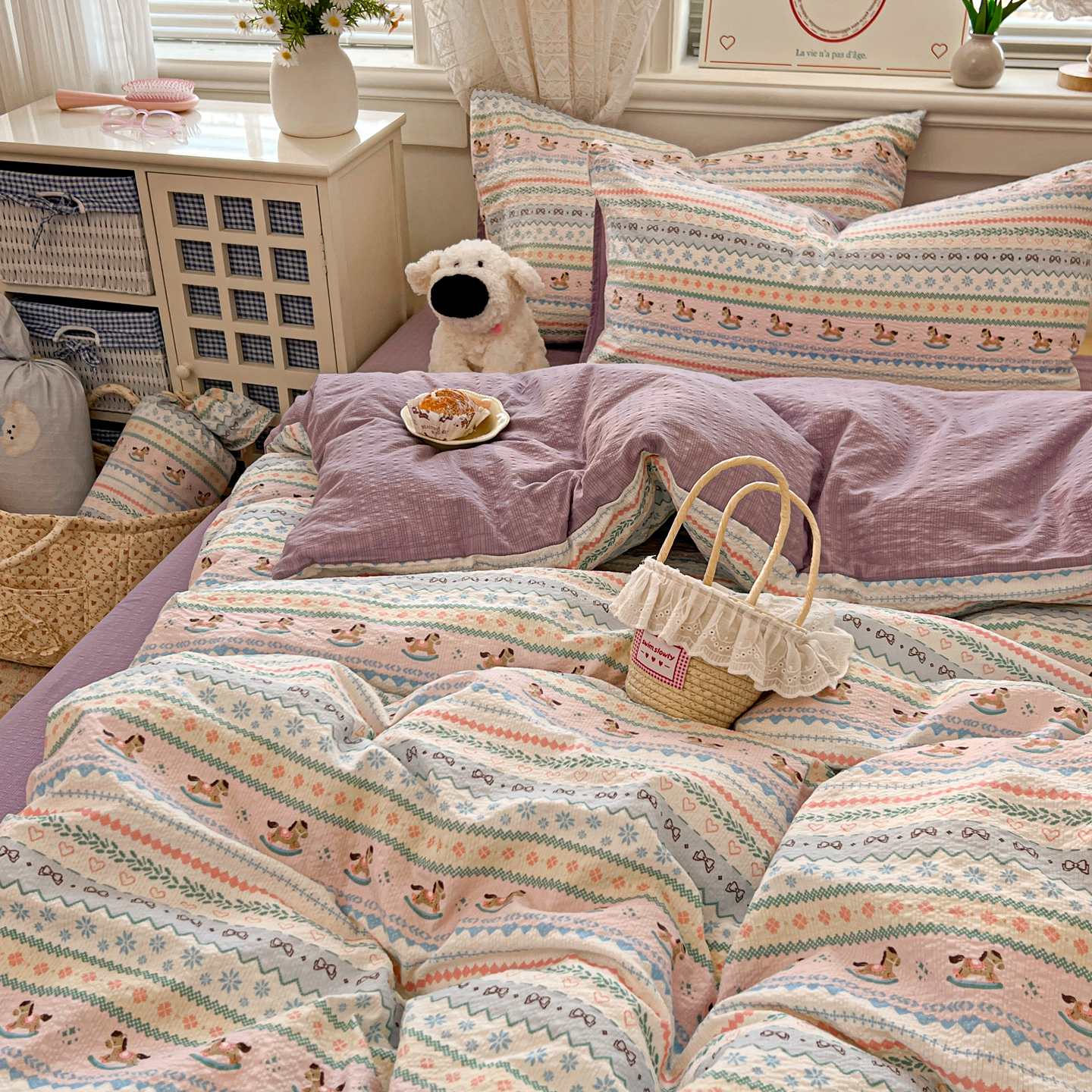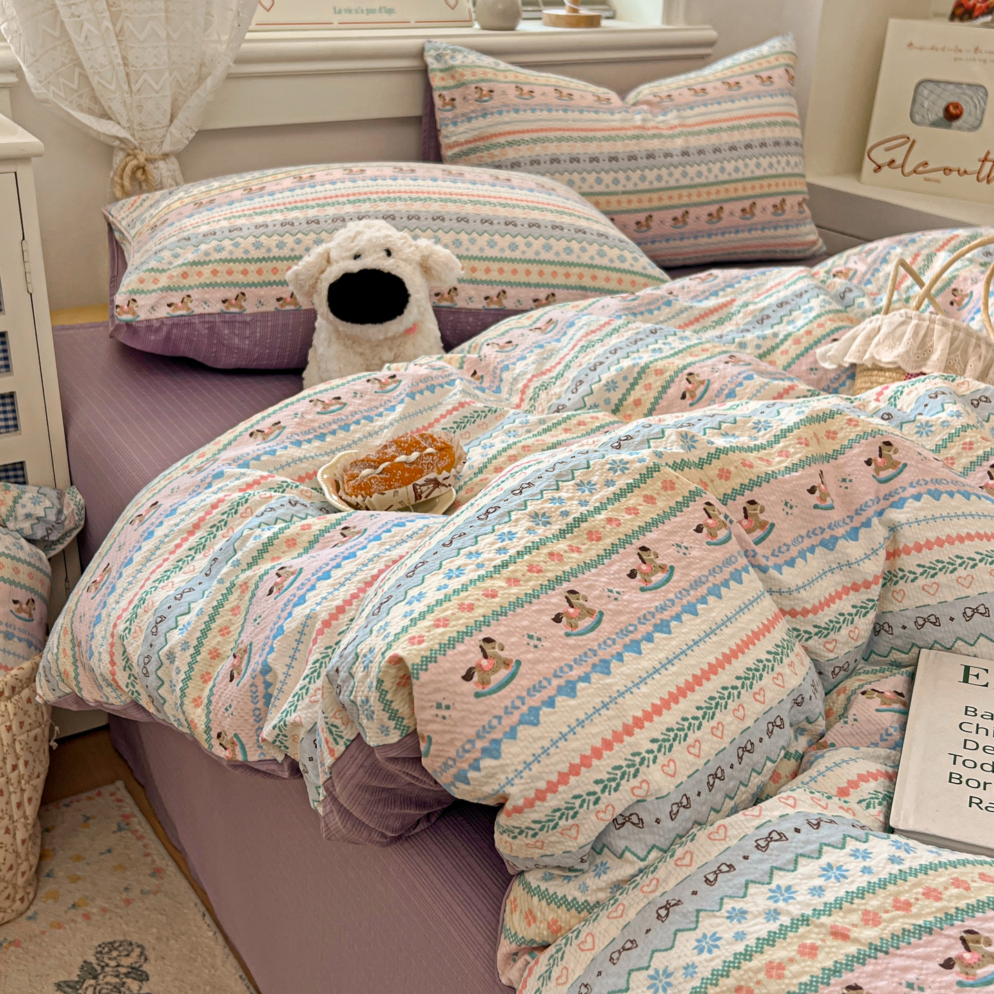 暖伊家居 2026新款糖果小布袋泡芙纱四件套 费尔岛