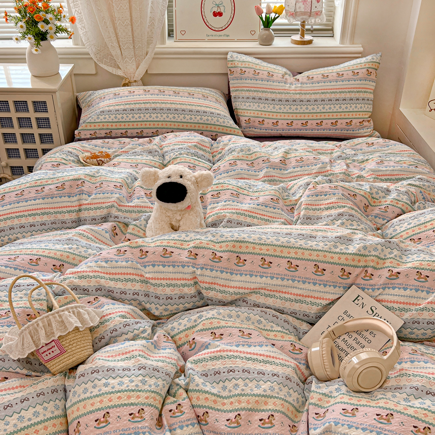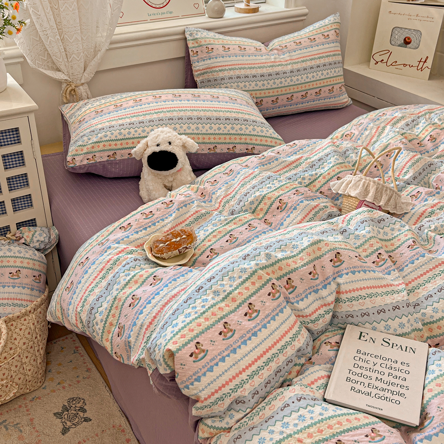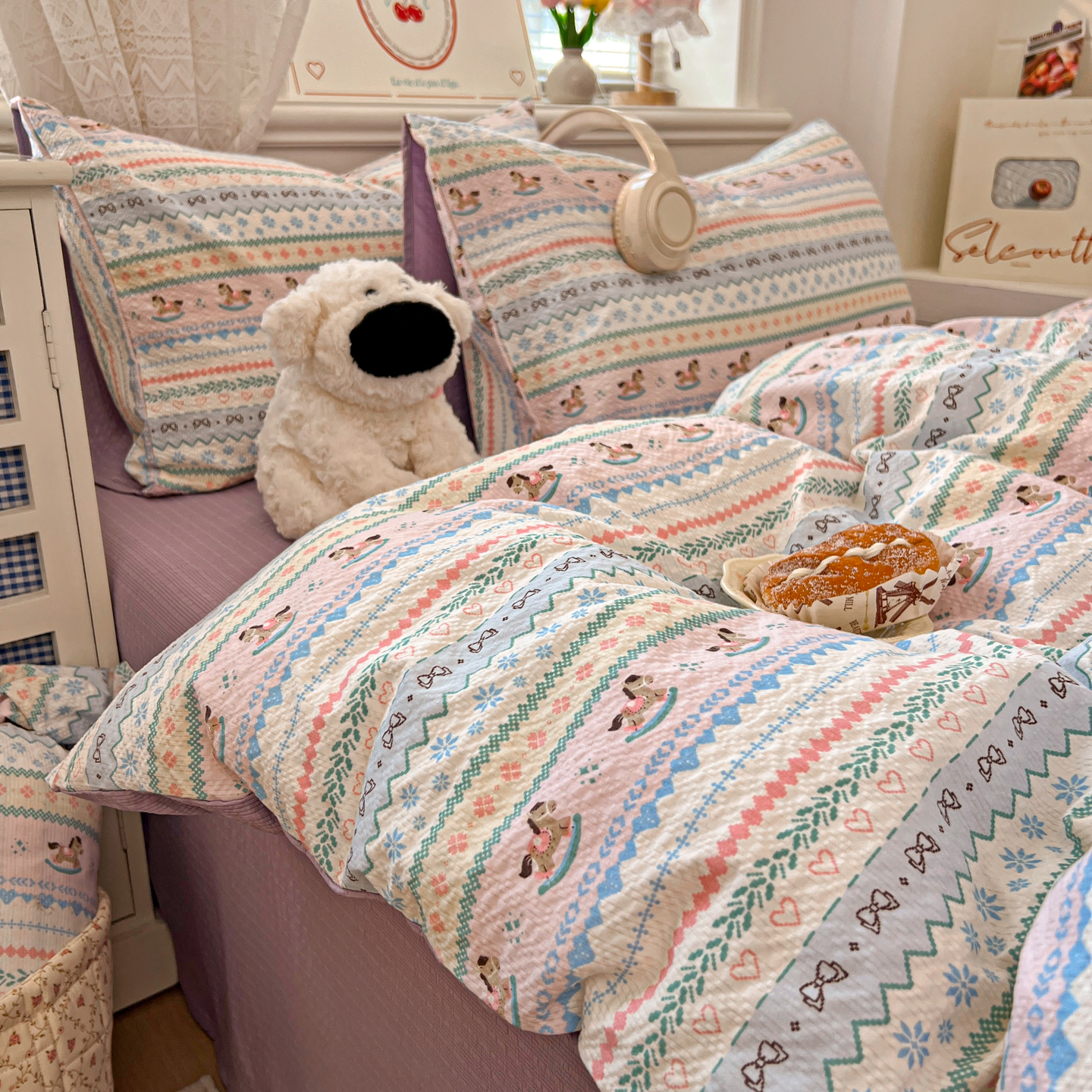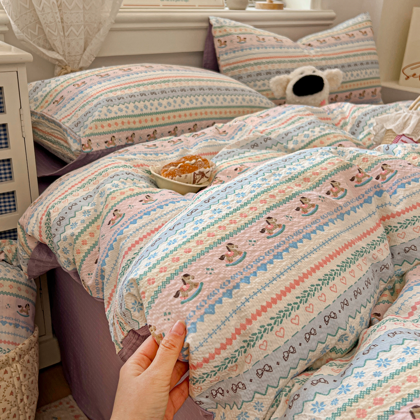 商品名称:暖伊家居 2026新款糖果小布袋泡芙纱四件套 费尔岛