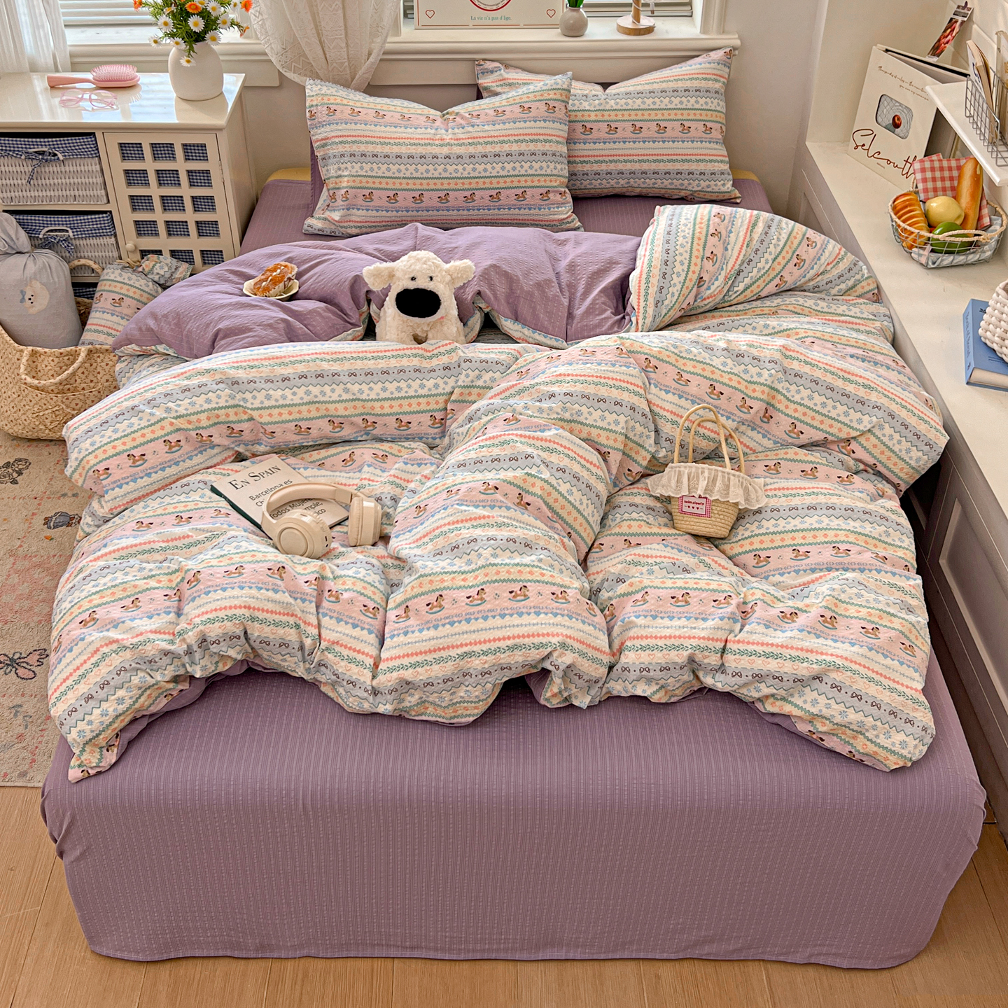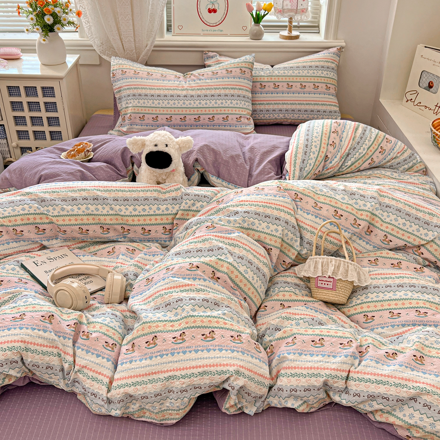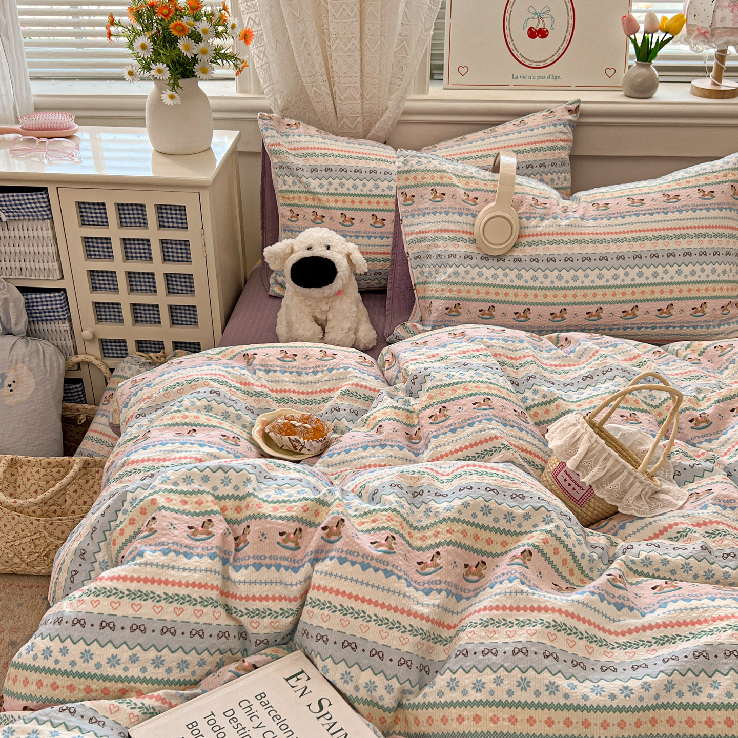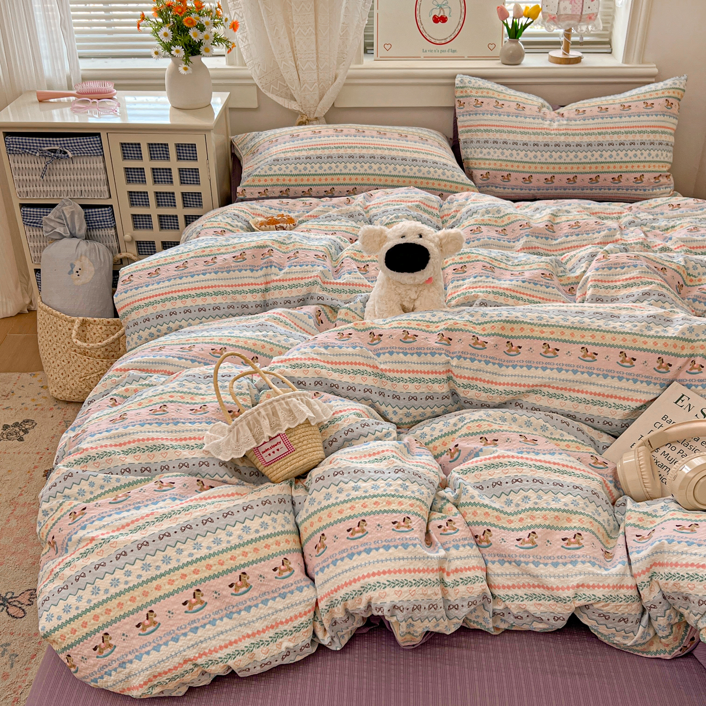 商品名称:暖伊家居 2026新款糖果小布袋泡芙纱四件套 费尔岛