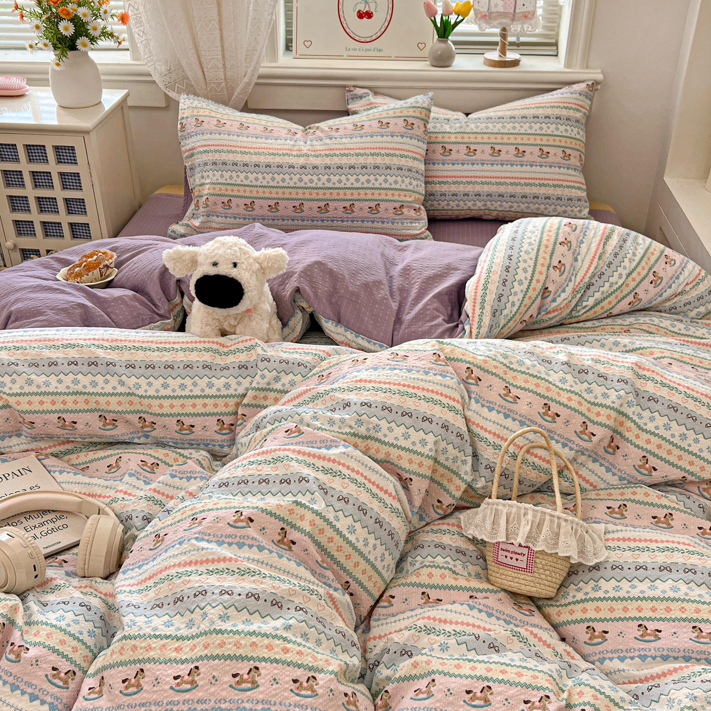 (总)暖伊家居 2026新款澳洲原单仿棉布袋四件套 硬包,腊肠狗,可可糖豆,格韵,野卉春,繁花,樱花可可,咖啡熊,芊朵,米蔷薇,清叙,樱花集,紫蝶