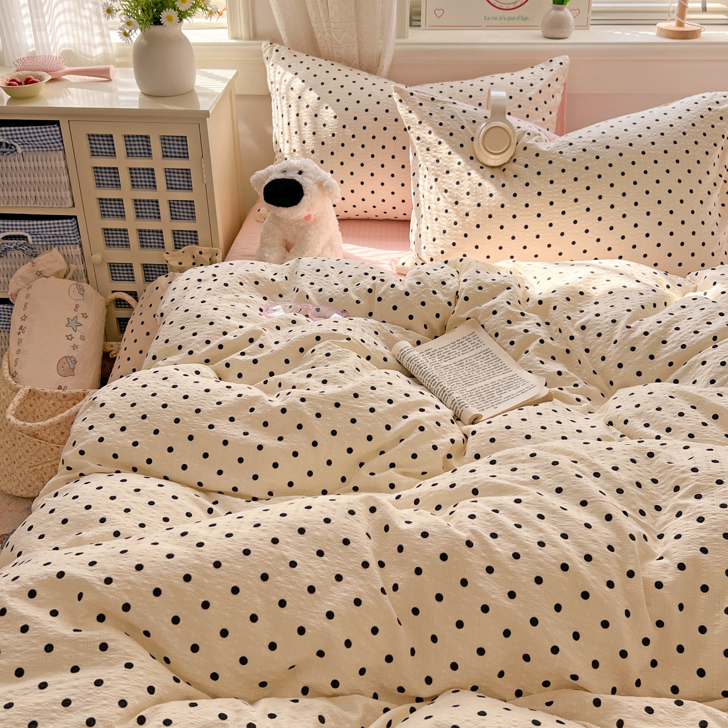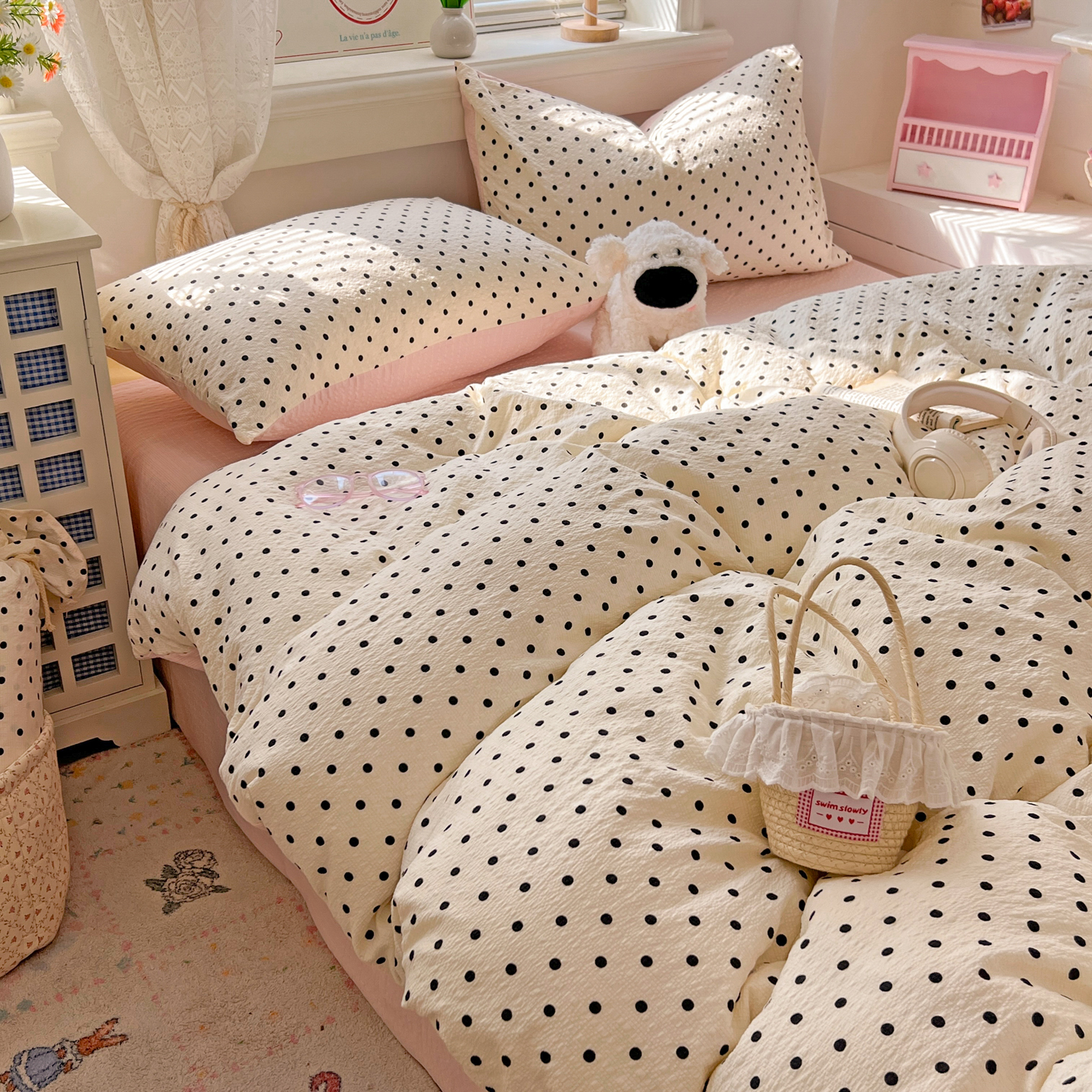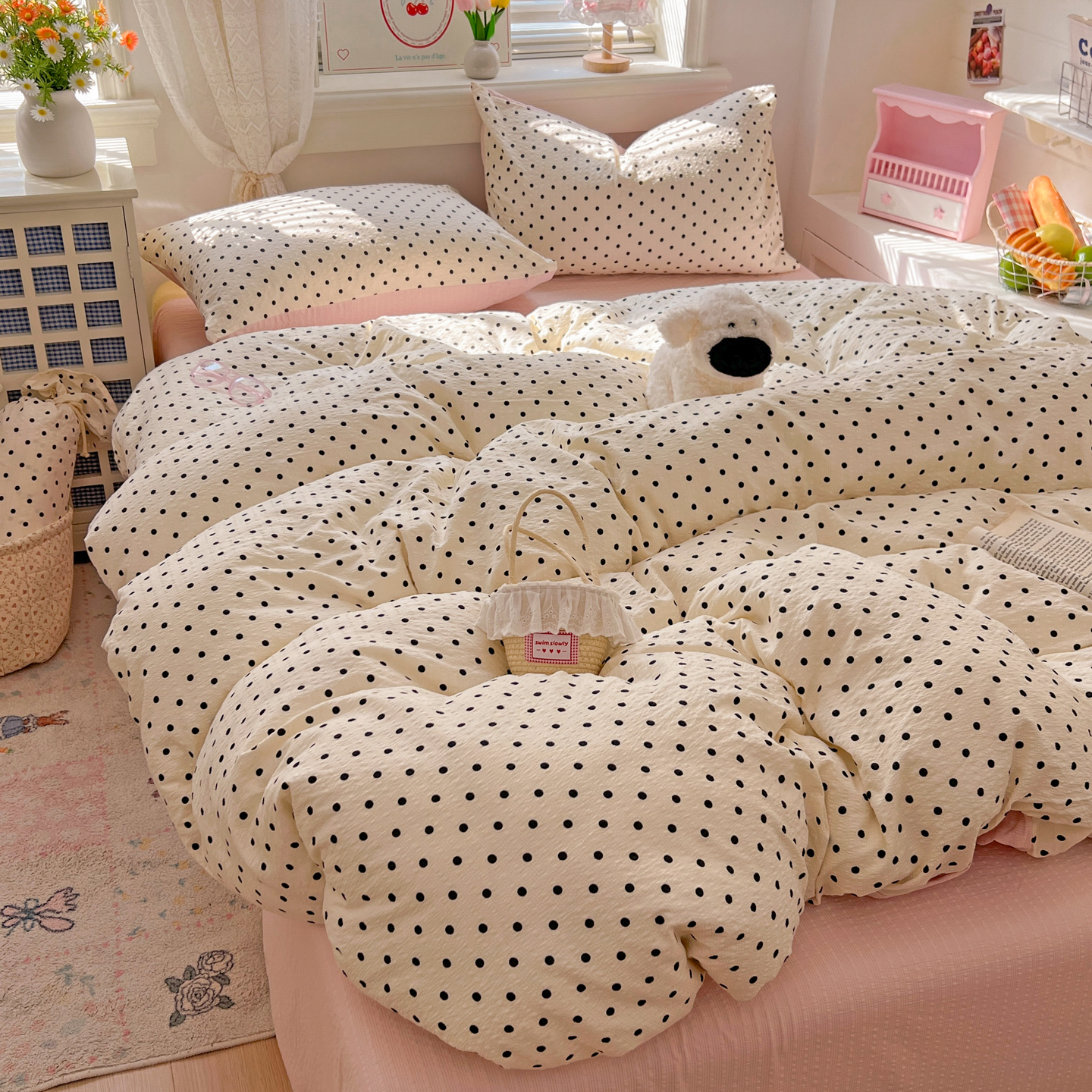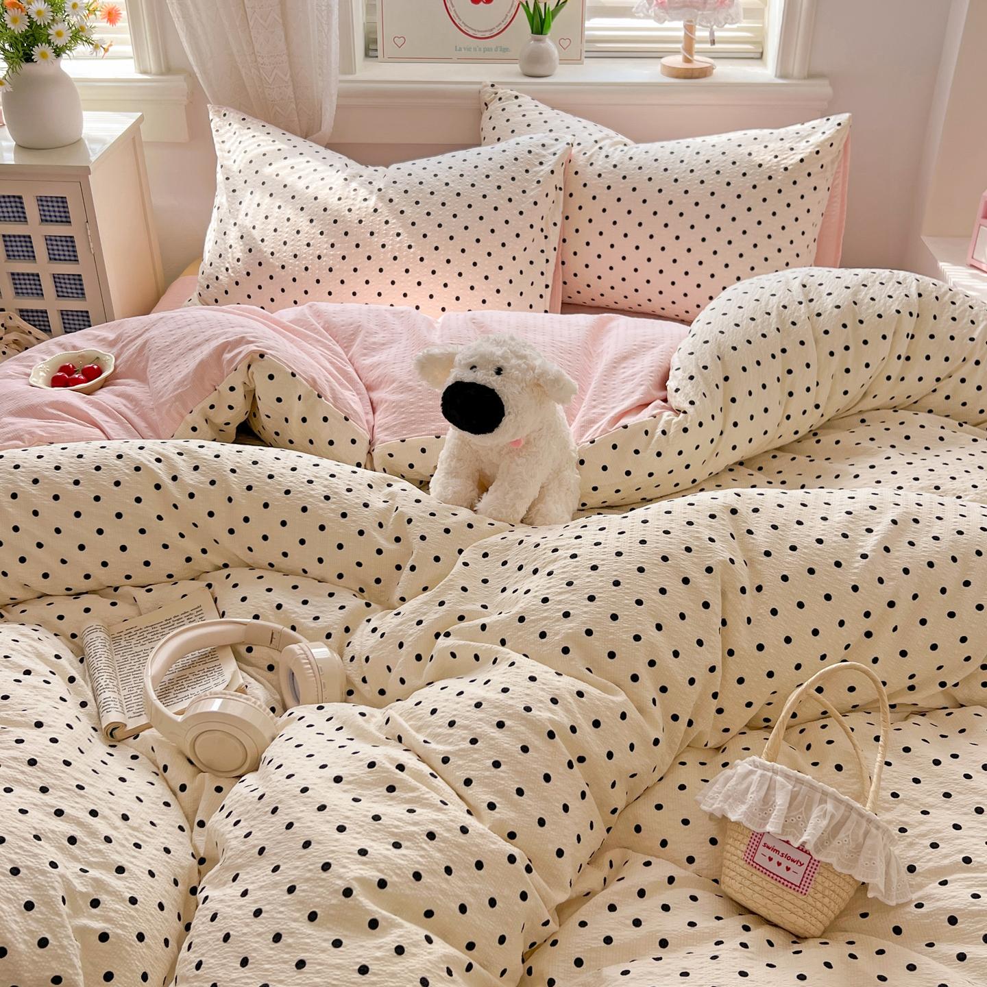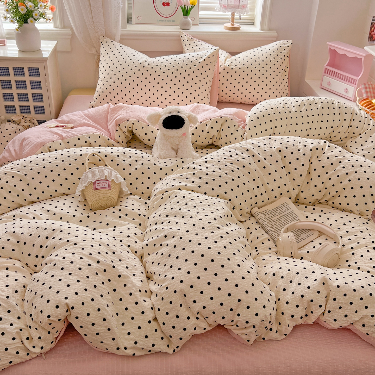 商品名称:暖伊家居 2026新款糖果小布袋泡芙纱四件套 奶油波点