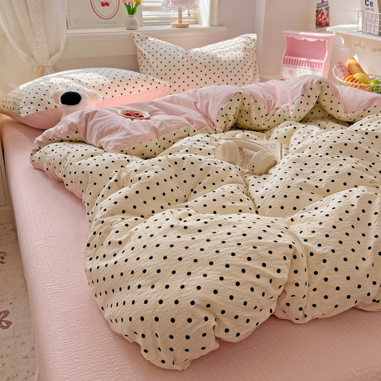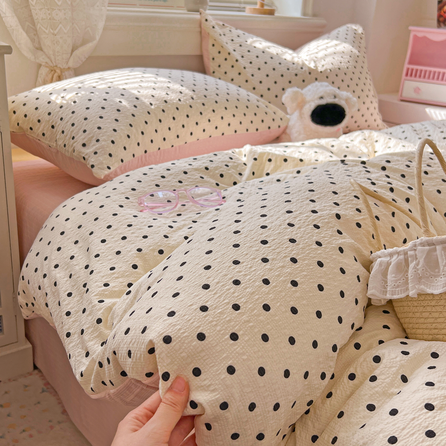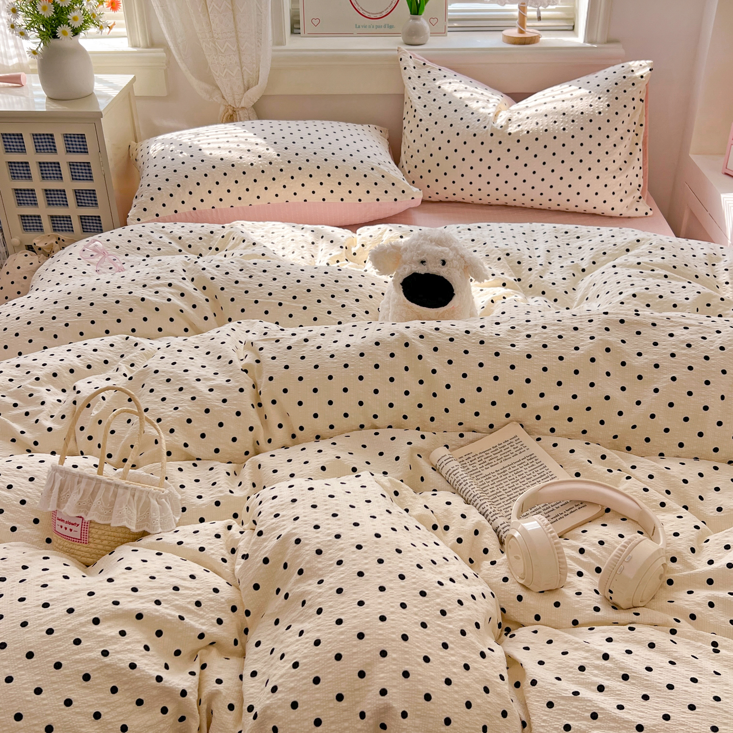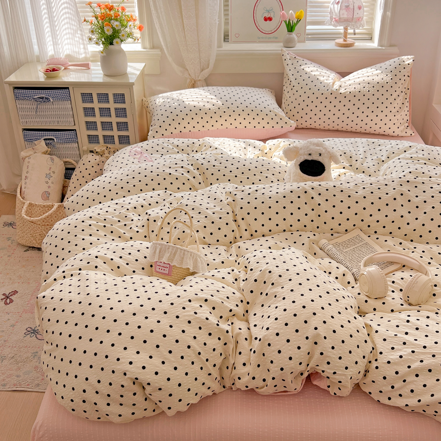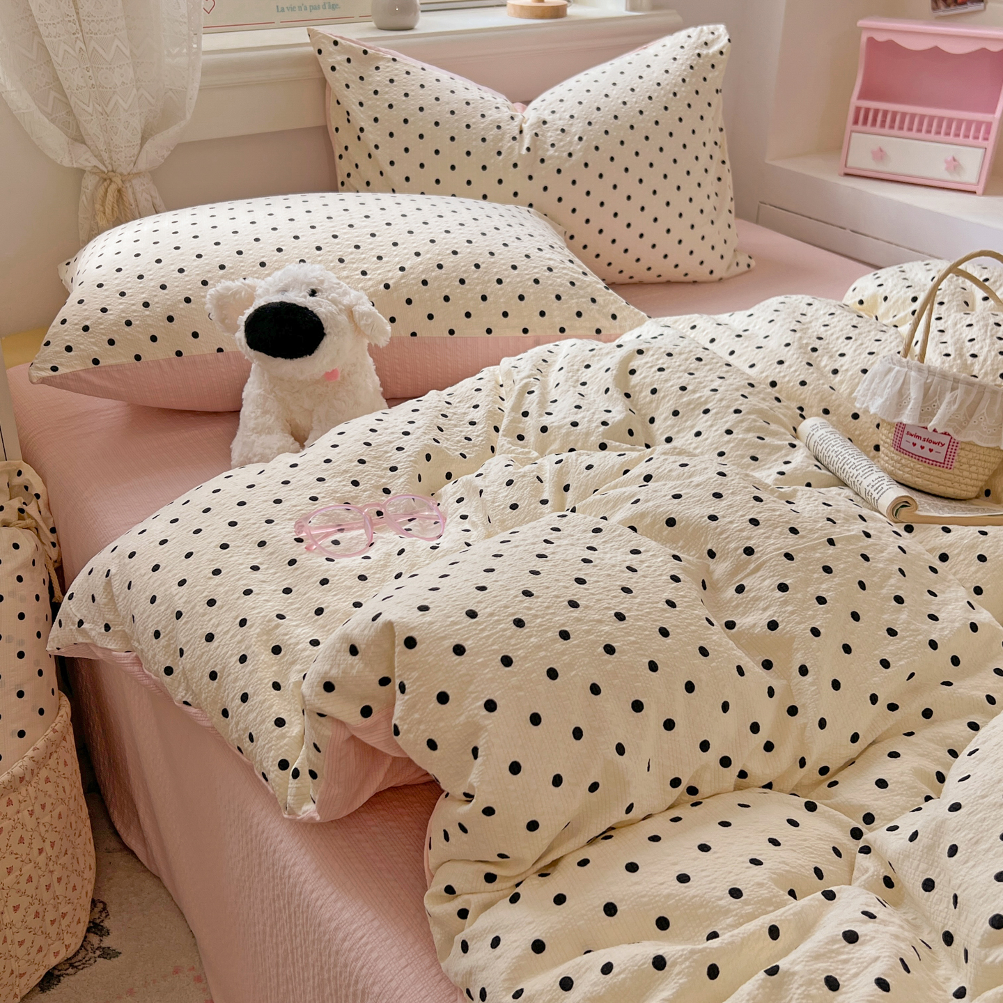 商品名称:暖伊家居 2026新款糖果小布袋泡芙纱四件套 奶油波点