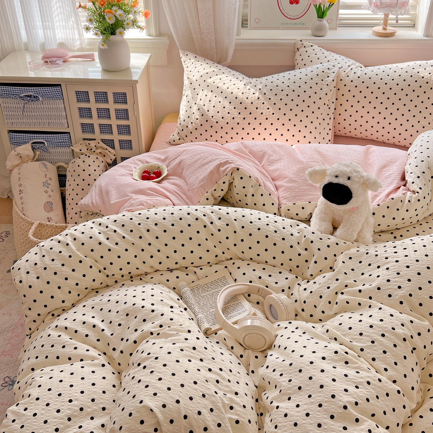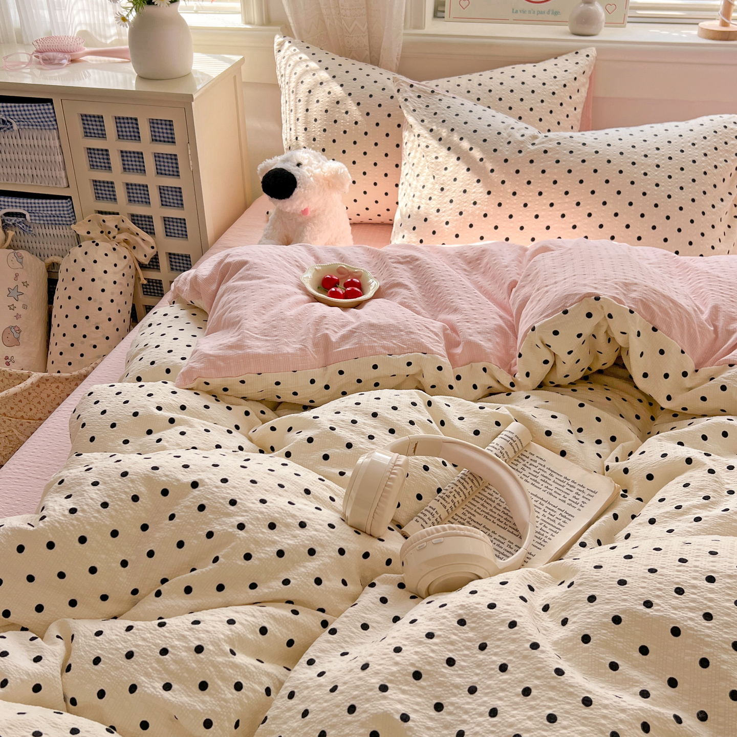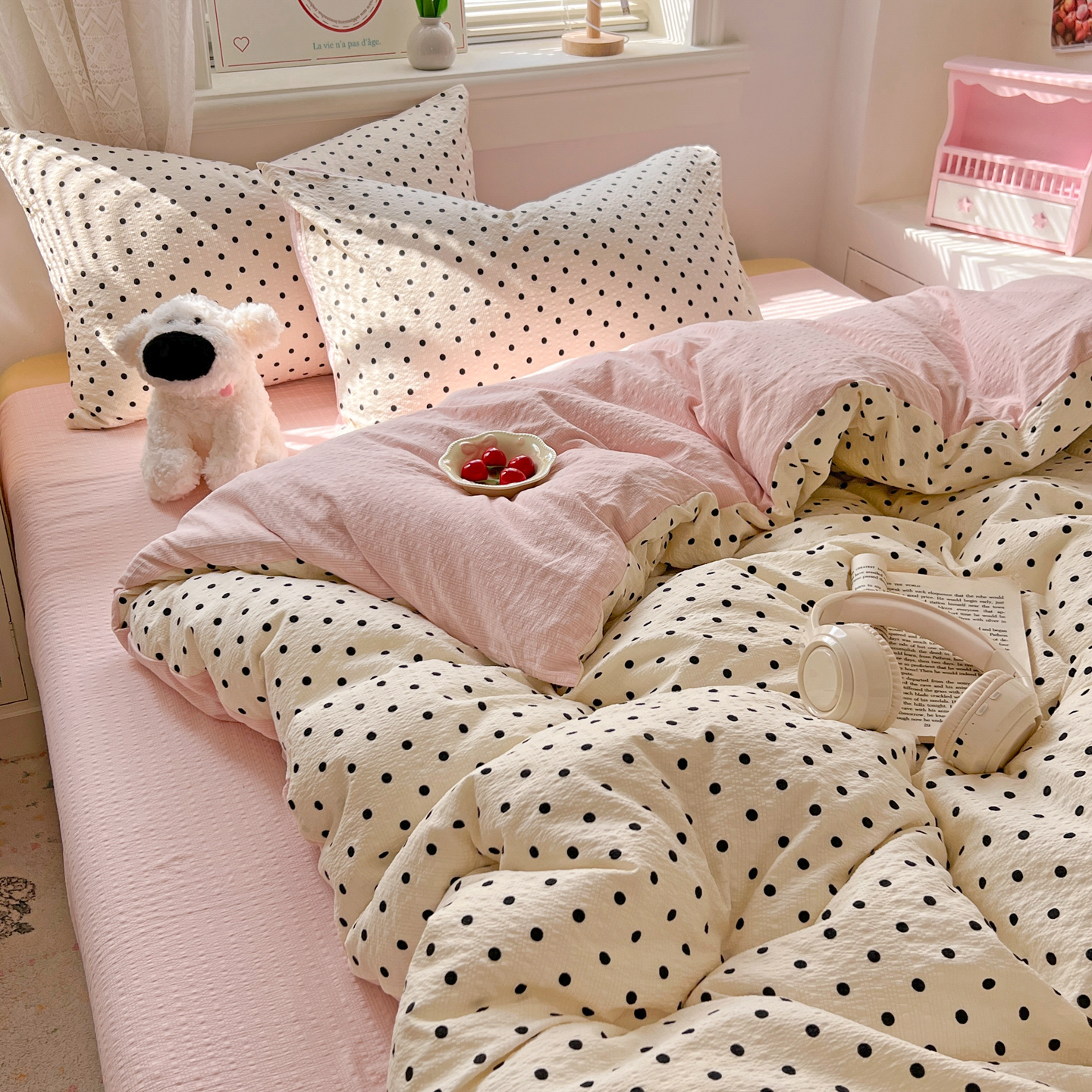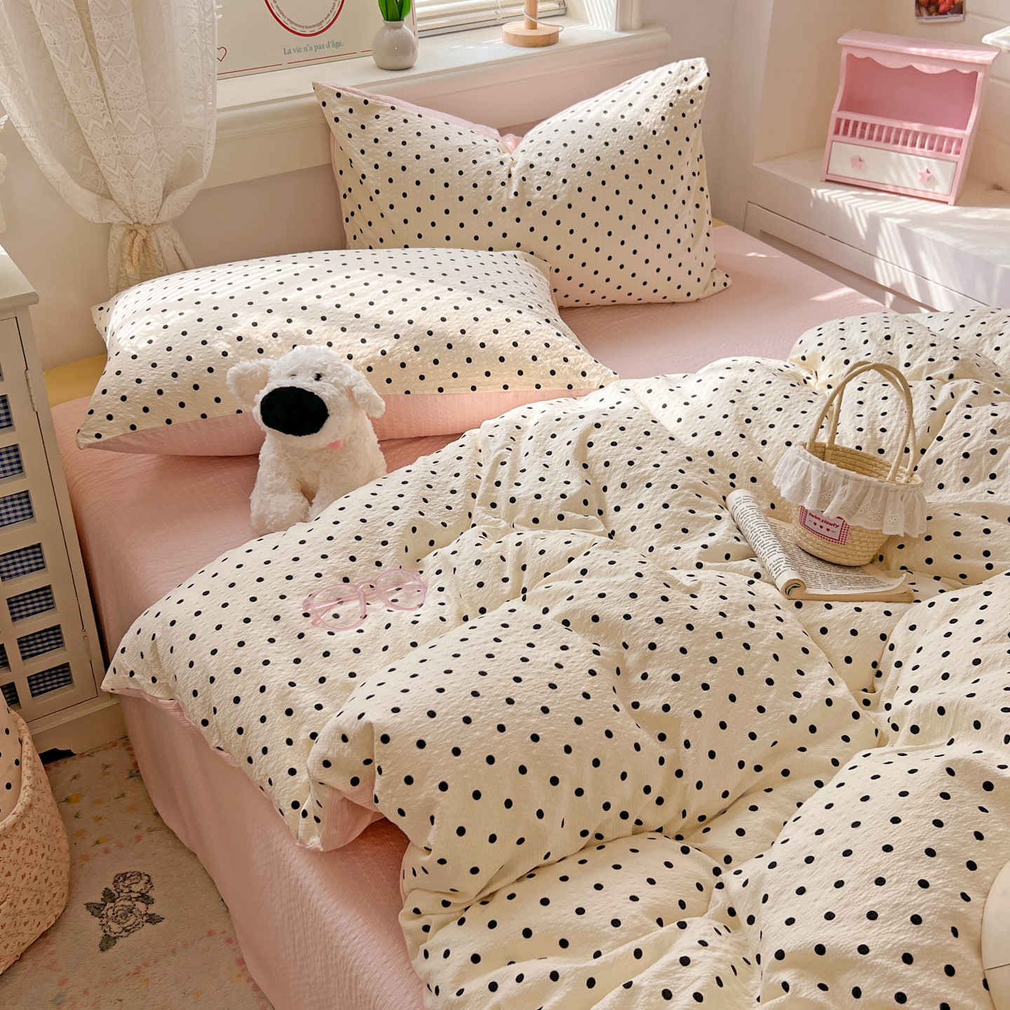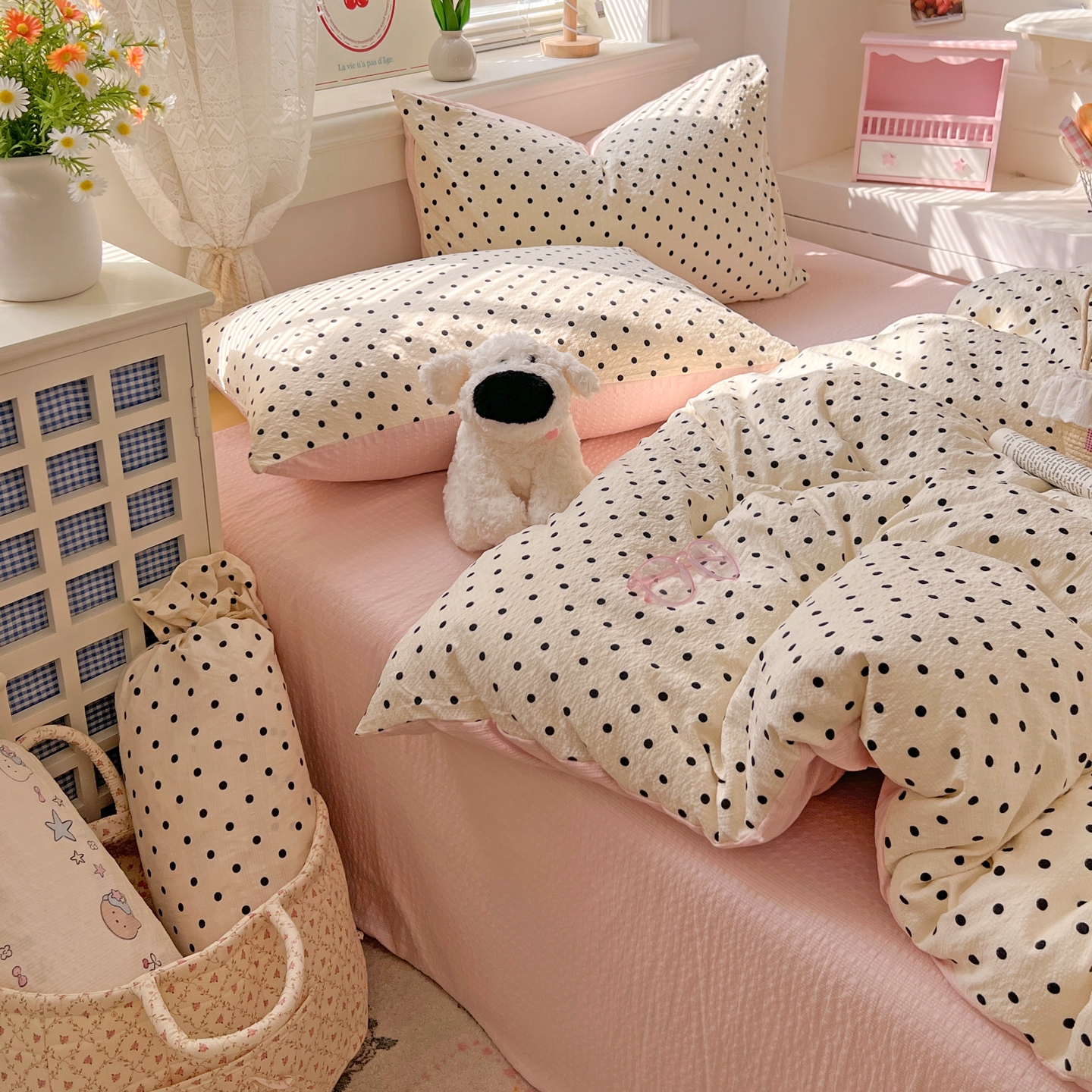 暖伊家居 2026新款糖果小布袋泡芙纱四件套 奶油波点