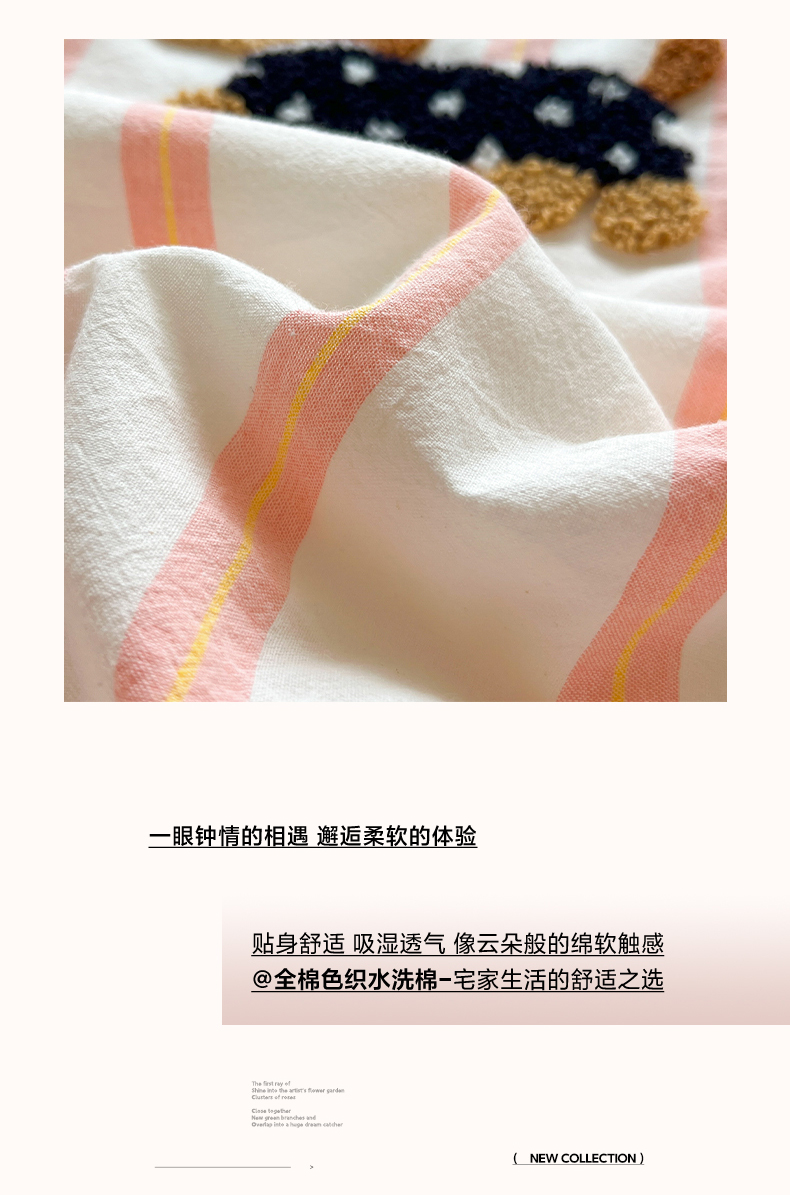 (总)一加一 2025新款全棉色织简约风艾阳绒抗菌被芯,浅兰韵律,桃之夭天,悠然时光