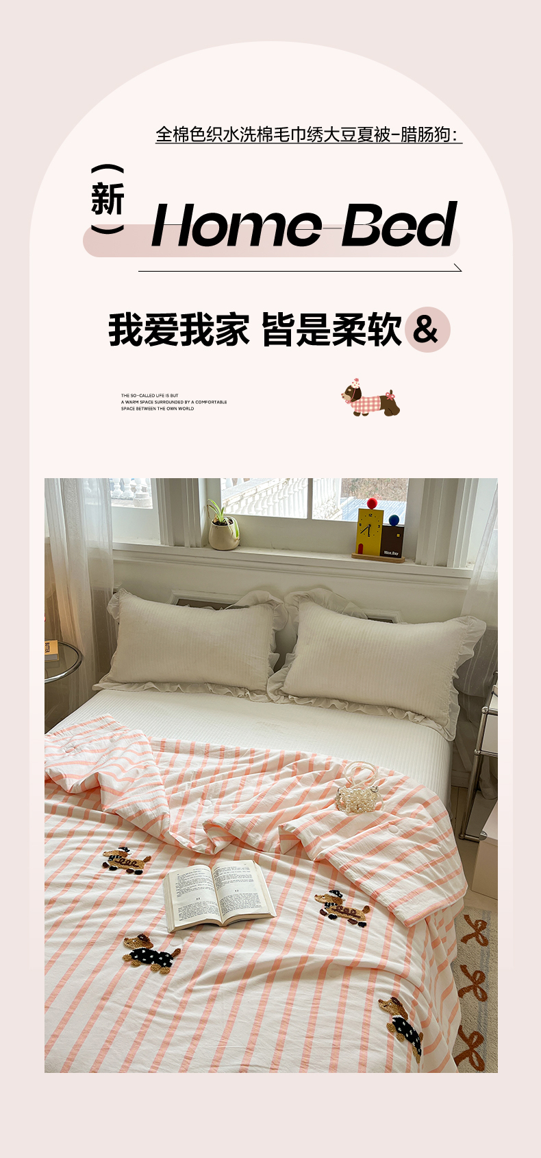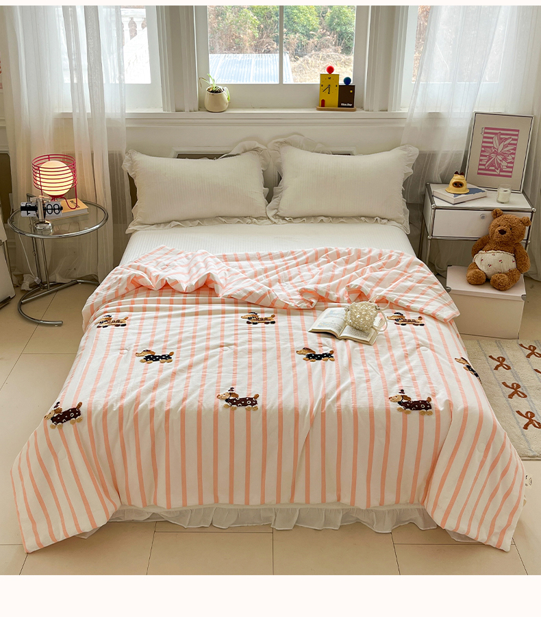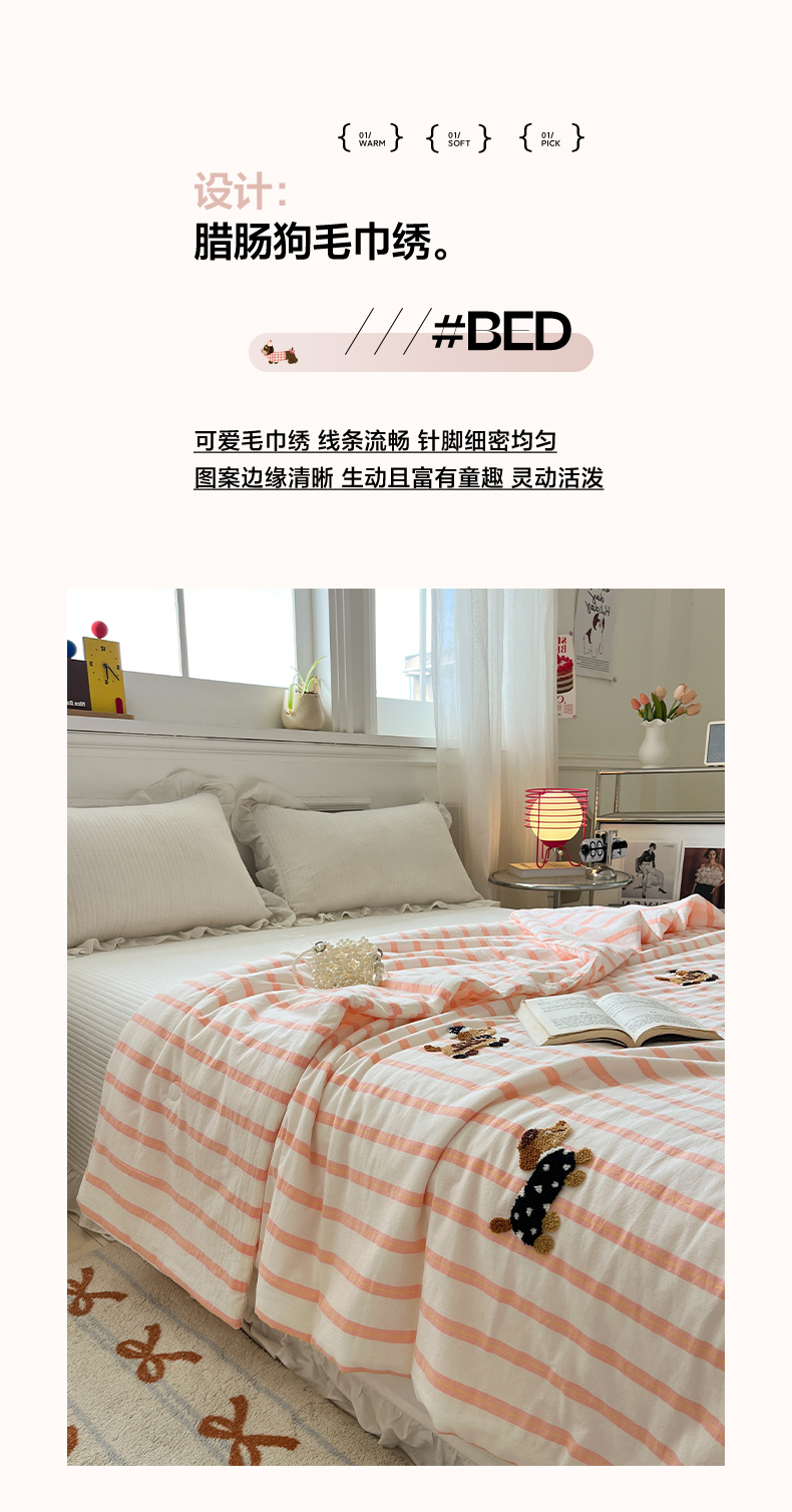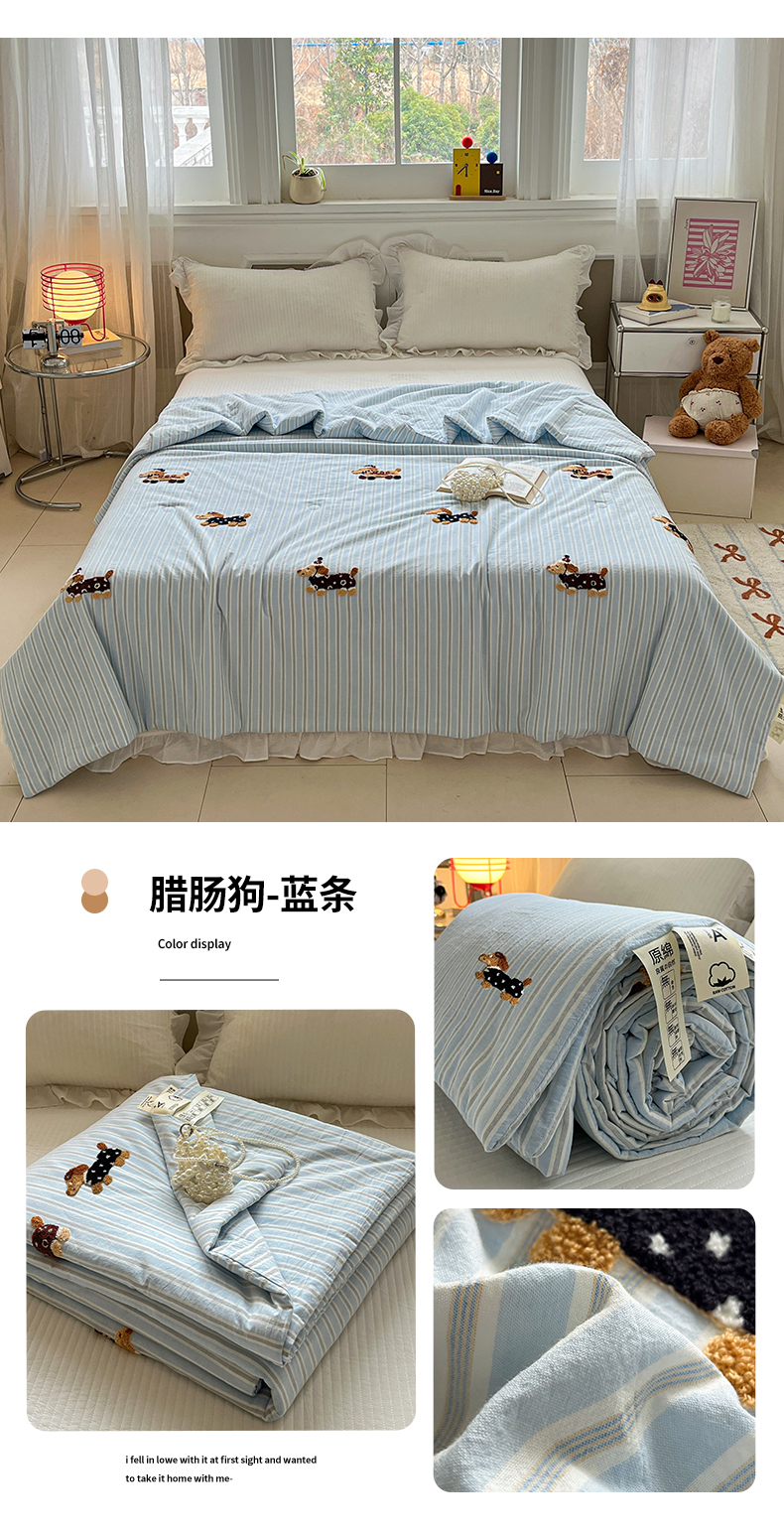商品名称:(总)一加一 2026新款全棉色织水洗棉毛巾绣大豆夏被夏凉被空调被-腊肠狗