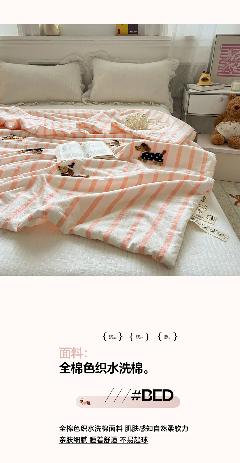 (总)一加一 2025新款全棉双层皱皱纱毛巾绣抗菌大豆被芯,快乐狗,腊肠狗,甜甜小丸子,星愿树,熊猫派对