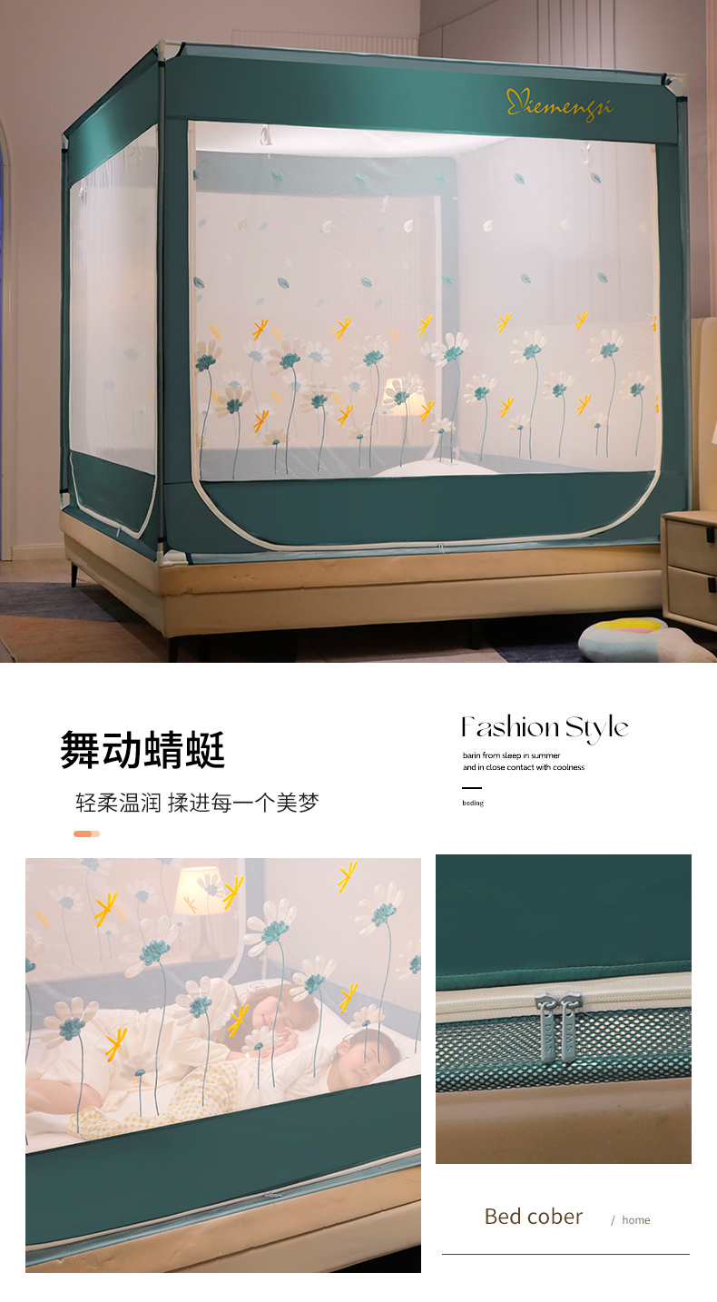 (总)飞轮海蚊帐 2023新款三开门落地遮光蚊帐-L-93,高级灰,芥末绿,奶油黄,香槟