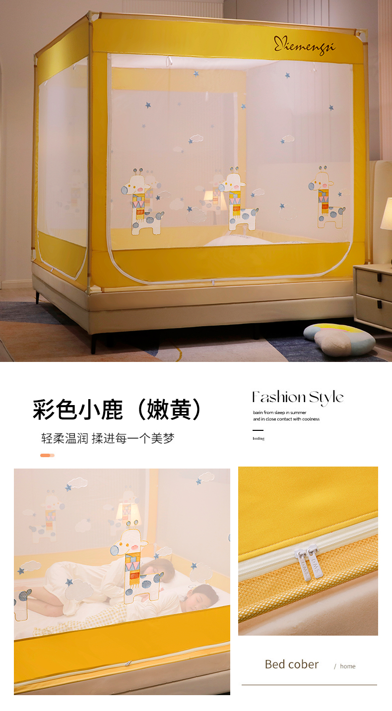 (总)飞轮海蚊帐 2025新款三开门遮光蚊帐LX-1,绿叶仙踪,奶油黄,香槟点点,元气桃,字母小熊