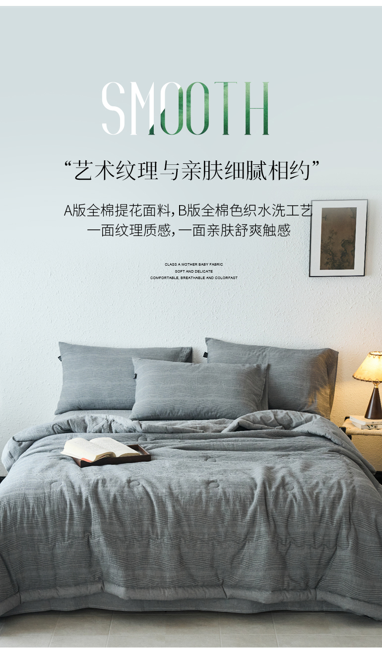 • 91家纺网 家纺一手货源 找家纺 恋人优选 2026新款A类全棉色织水洗棉提花夏被空调被 大波浪灰