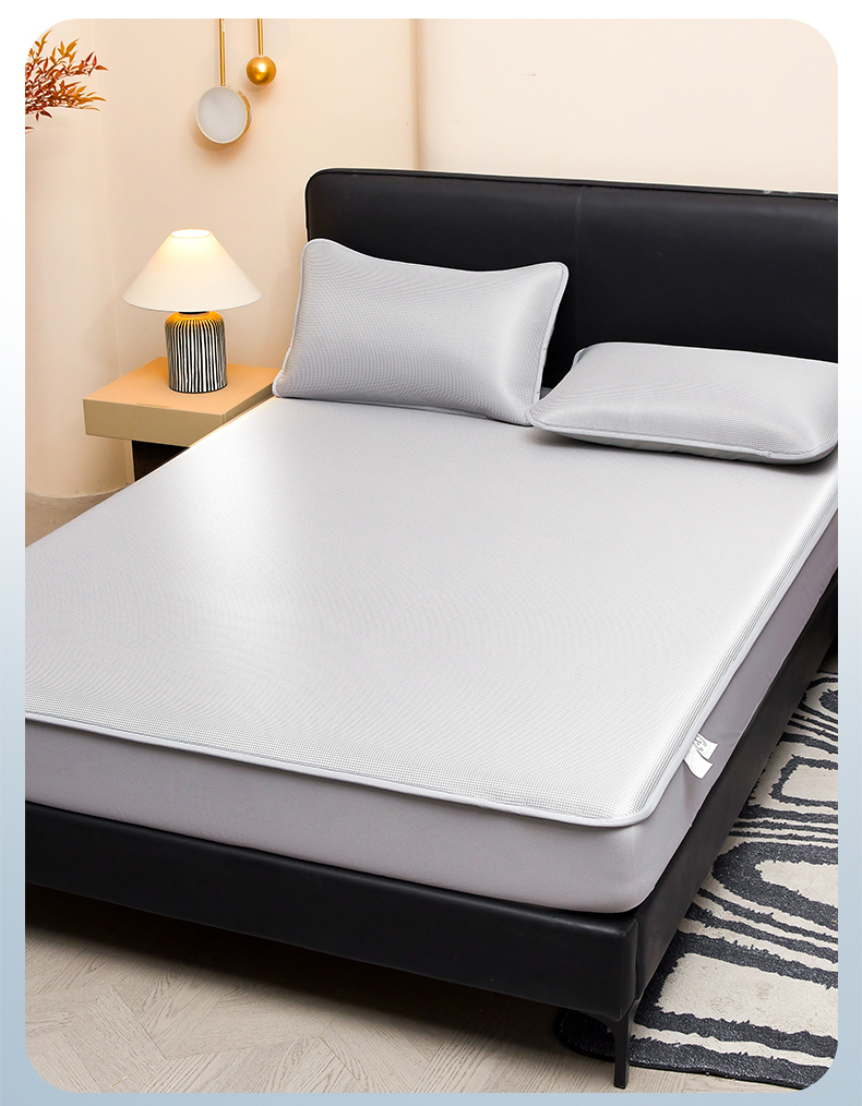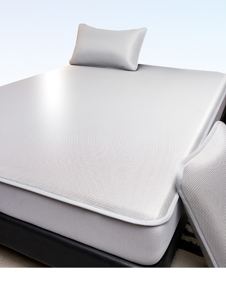 (总)雯豆家纺 2026春夏新款碳光冰丝席子三件套加厚三明治冰丝软席平铺席凉席席子,千鸟格-绑带款-海星蓝,千鸟格-绑带款-千禧粉,千鸟格-绑带款-松石绿,千鸟格-绑带款-香槟金,千鸟格-绑带款-银帆灰,组合图仅供展示不可下单
