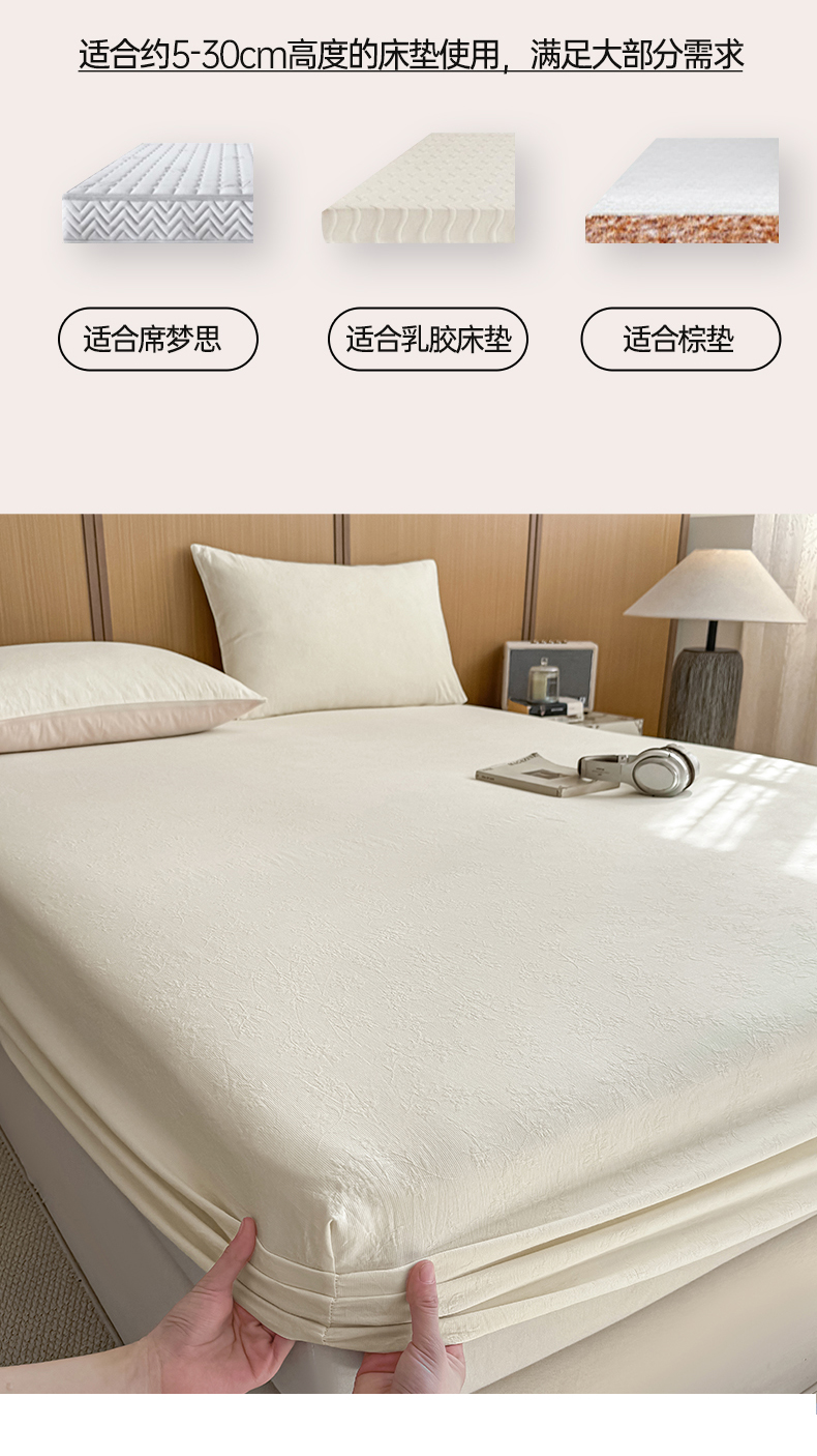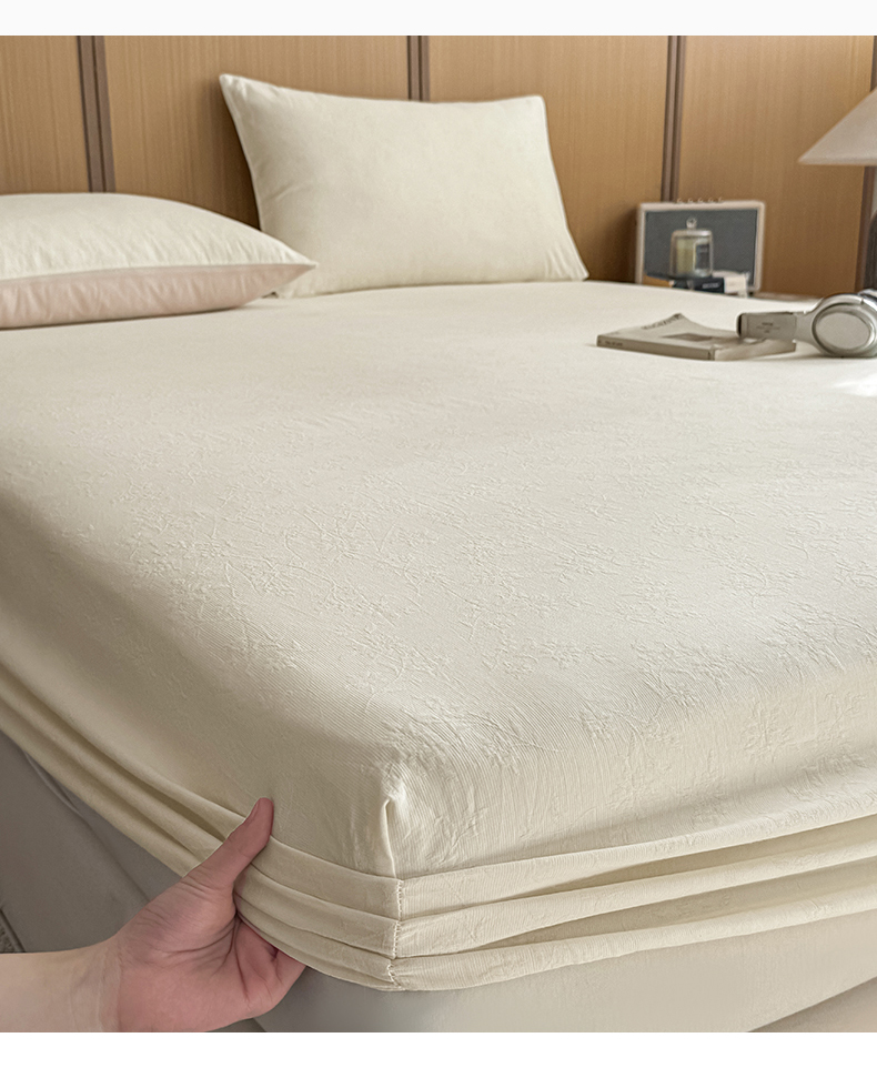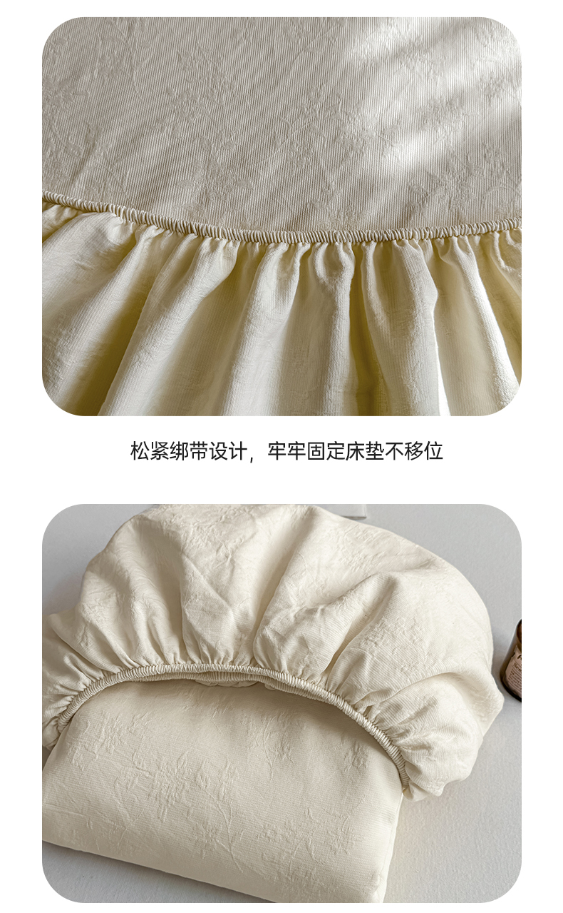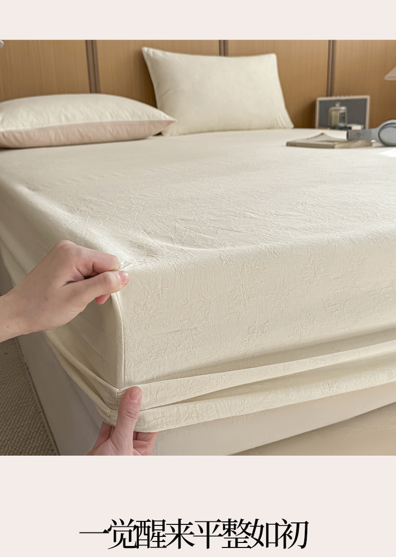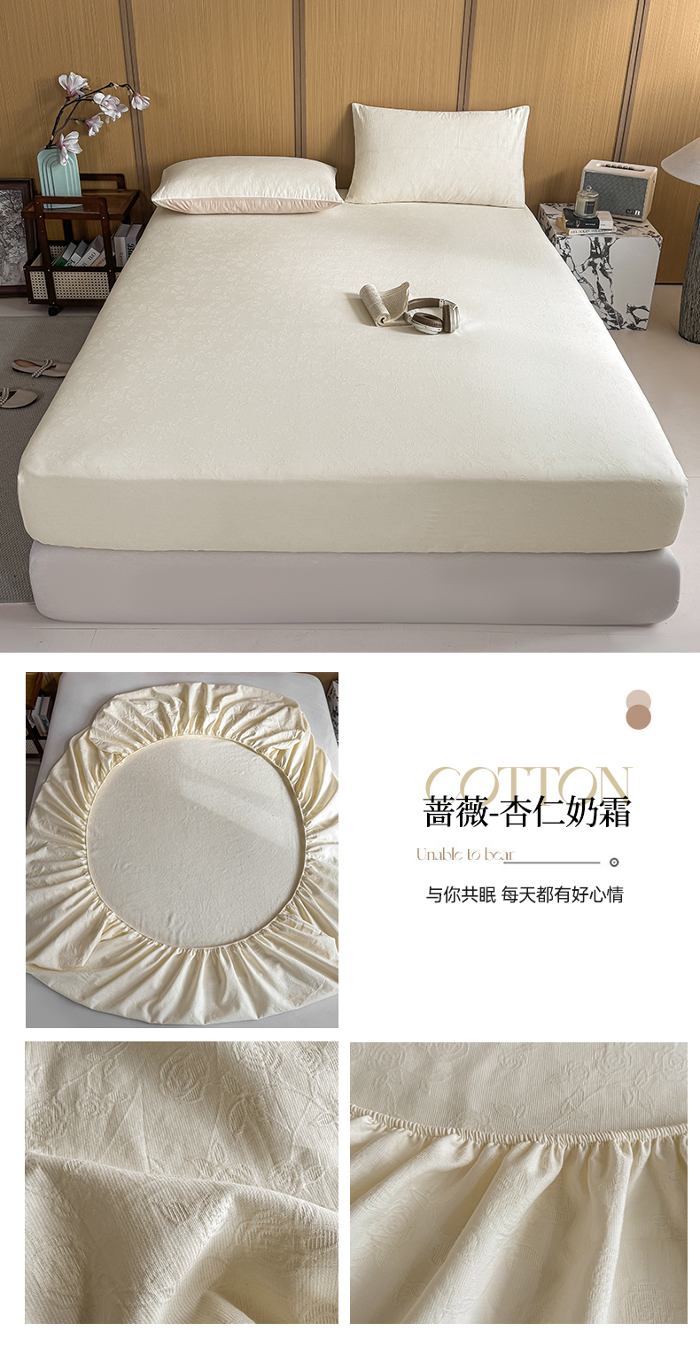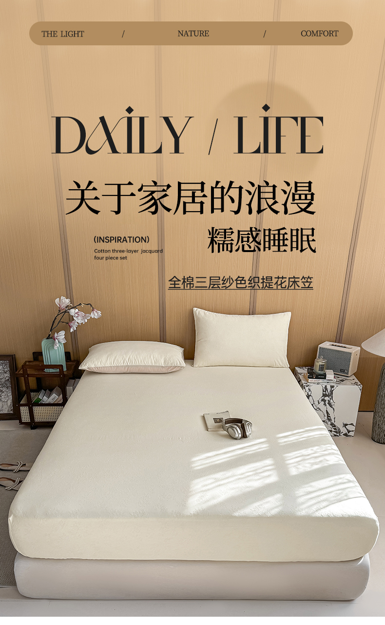 • 91家纺网 家纺一手货源 找家纺 灰鲸 2026新款全棉纯棉三层纱色织提花床笠单品床笠床笠单件 花影-杏仁奶霜