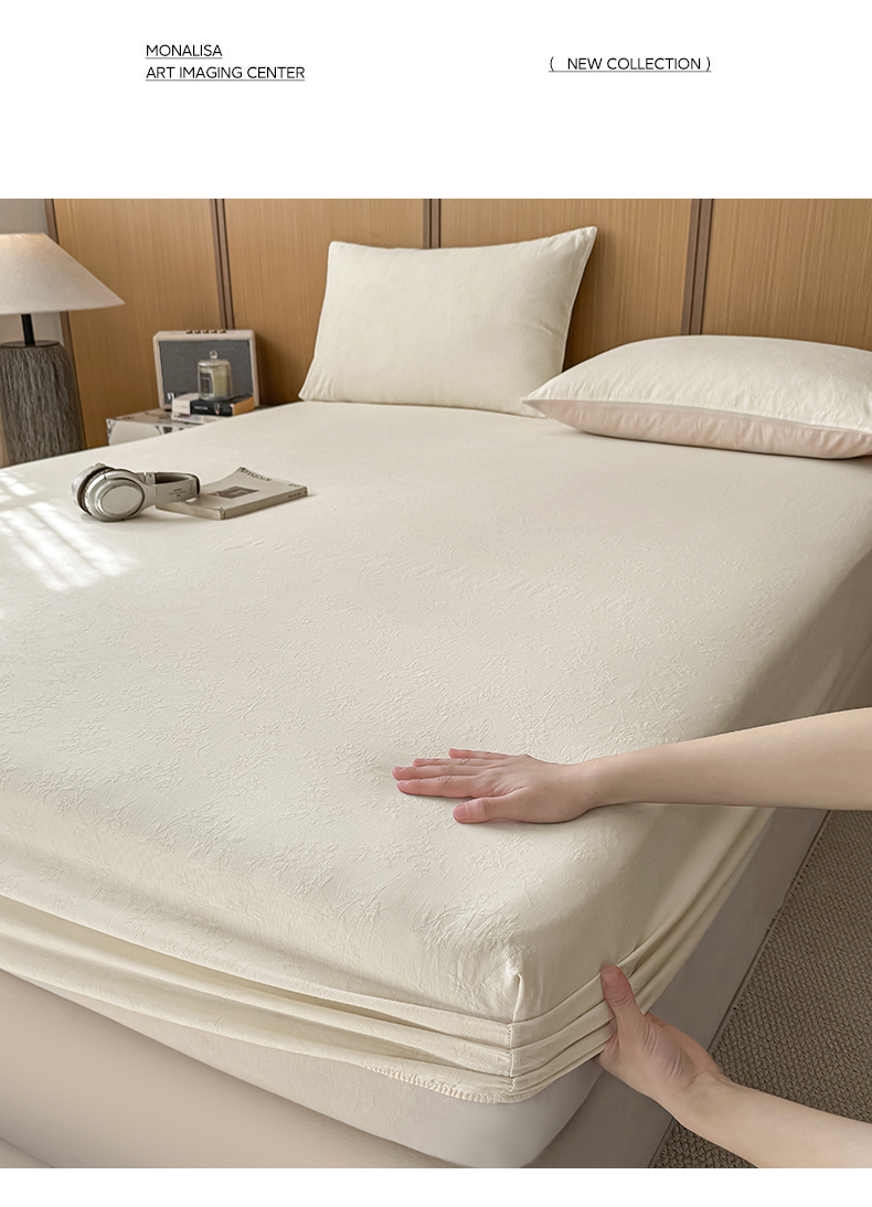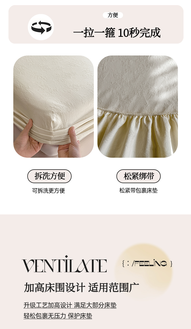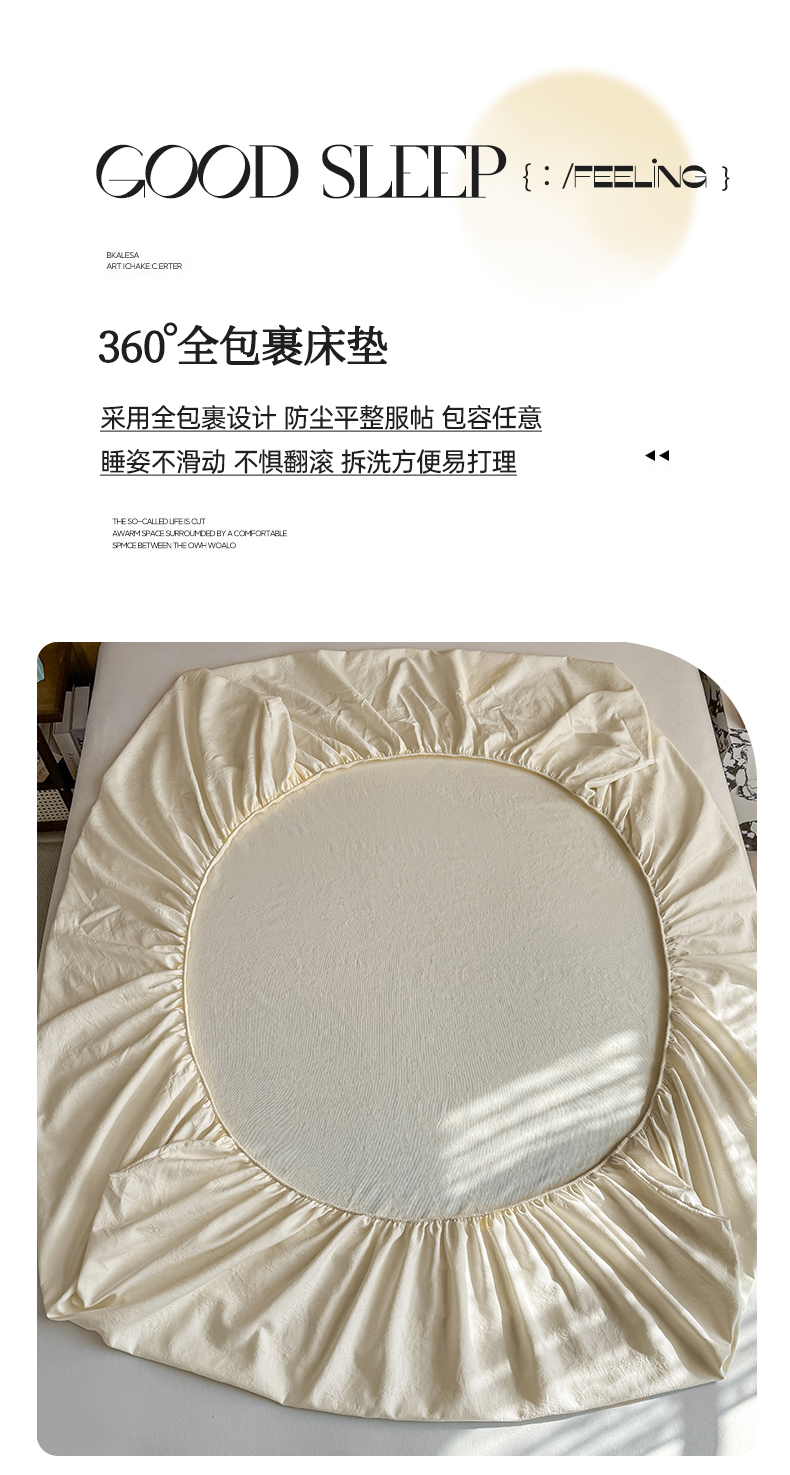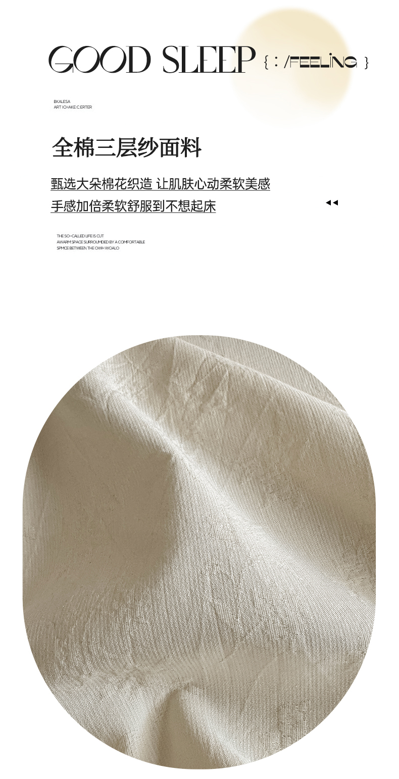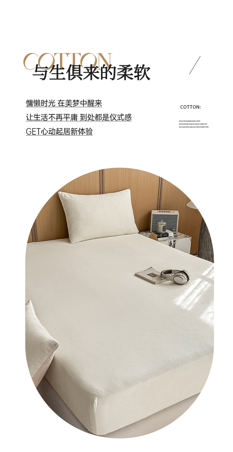 • 91家纺网 家纺一手货源 找家纺 灰鲸 2026新款全棉纯棉三层纱色织提花床笠单品床笠床笠单件 花影-杏仁奶霜