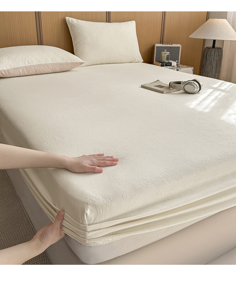 灰鲸 2026新款全棉纯棉三层纱色织提花床笠单品床笠床笠单件 花影-杏仁奶霜
