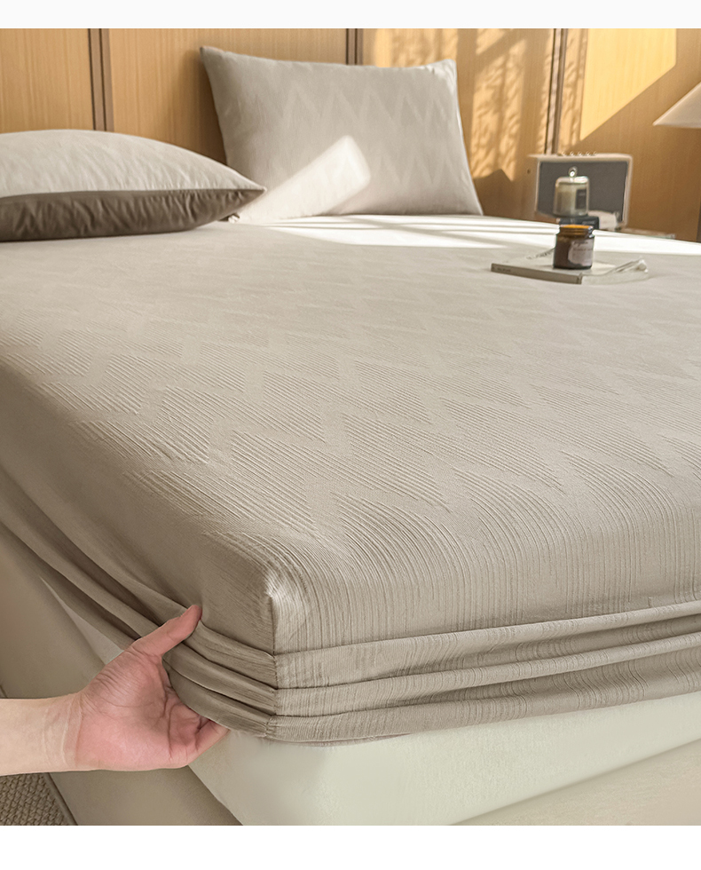 • 91家纺网 家纺一手货源 找家纺 灰鲸 2026新款全棉纯棉三层纱色织提花床笠单品床笠床笠单件 影韵-可可奶咖
