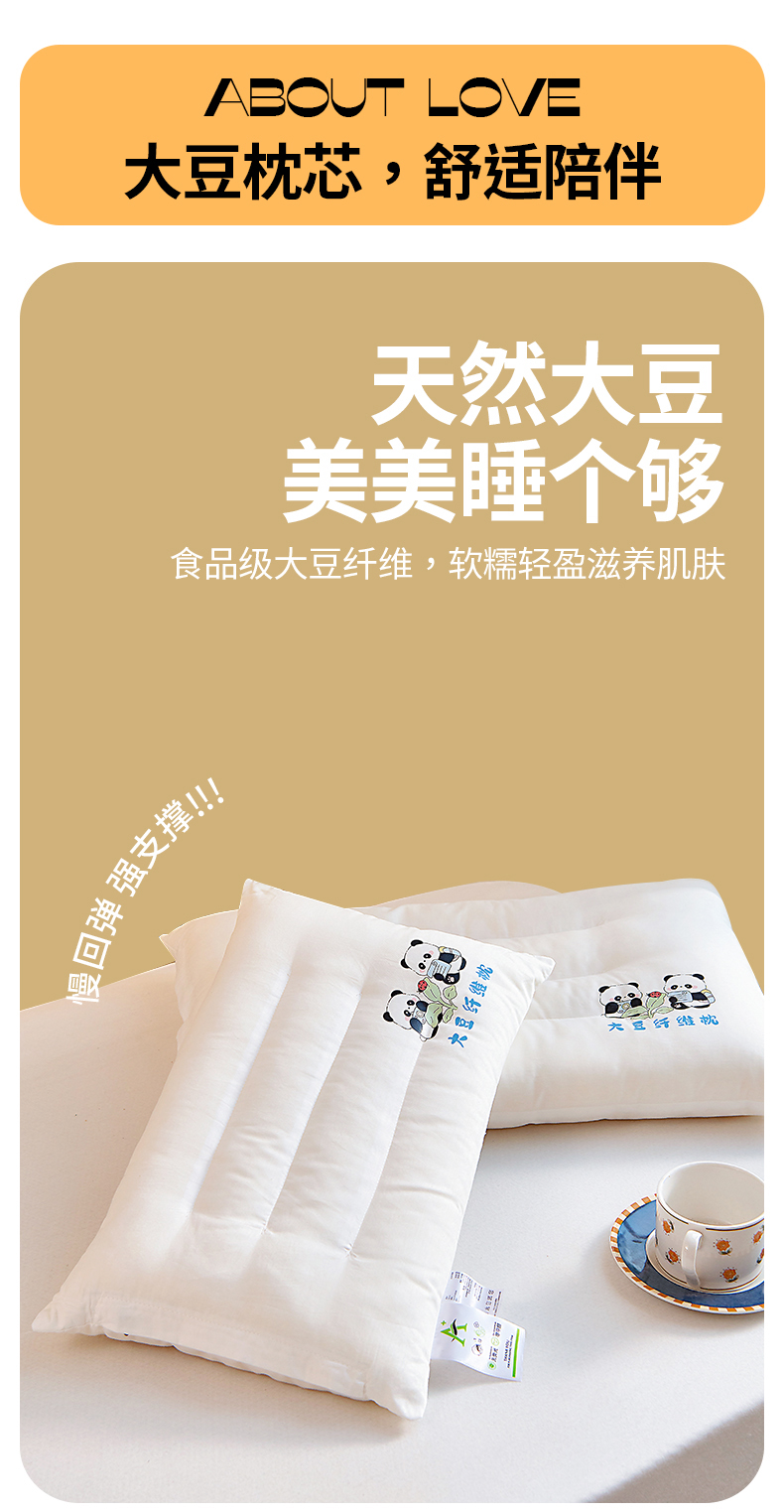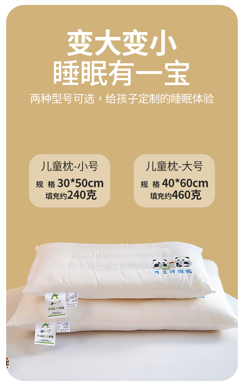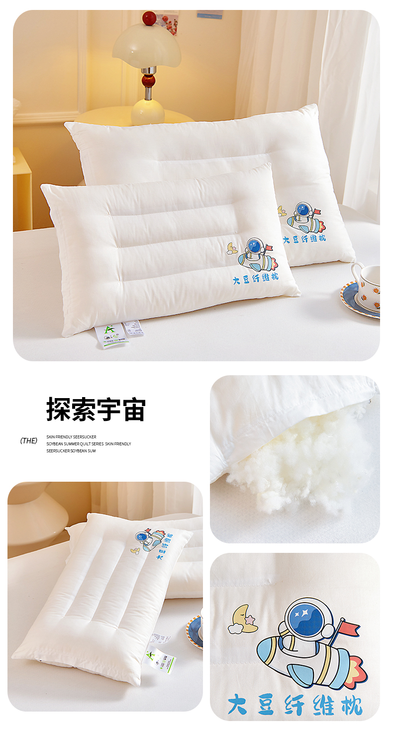 商品名称:(总)吉咪兔家纺 2026新款儿童A类全棉大豆纤维枕芯单人学生宿舍枕头幼儿园卡通软枕护颈椎